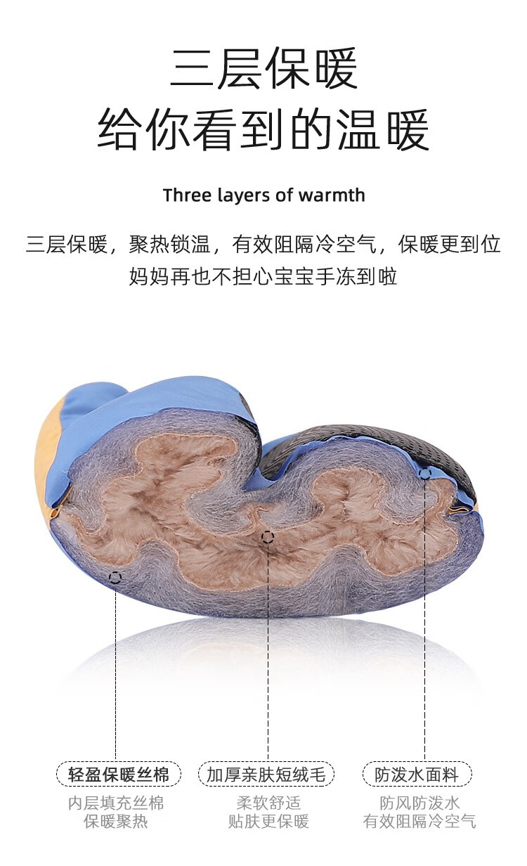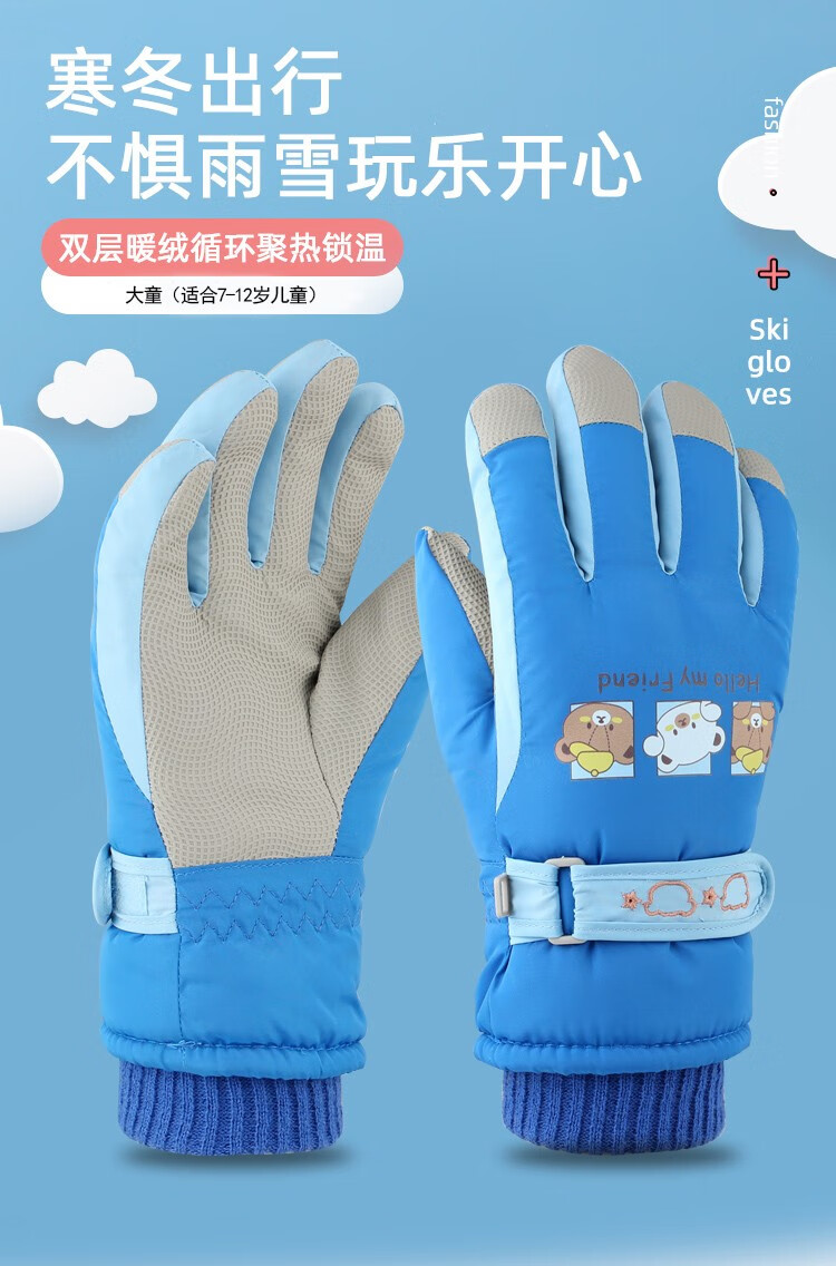 火炬人儿童手套 滑雪手套骑行手套7岁到12岁保暖卡通冬季手套 美乐蒂粉色C3225 7-12岁