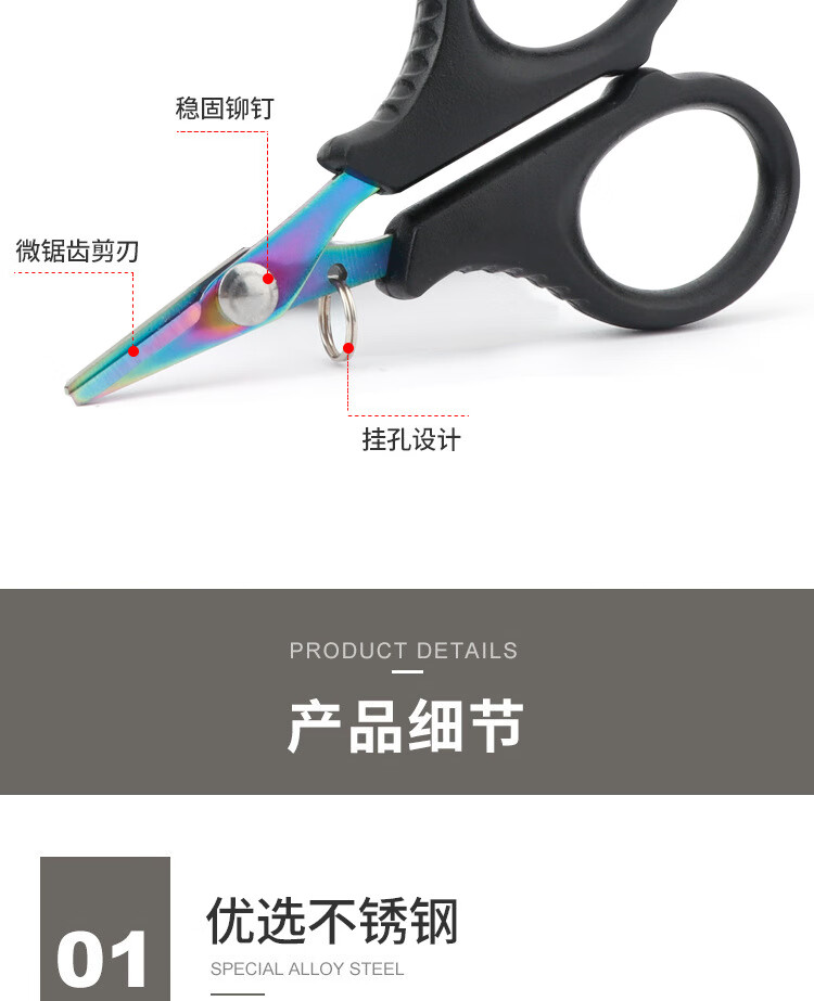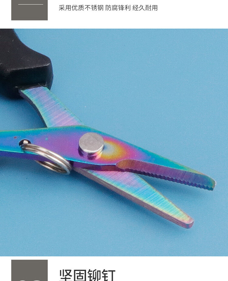 【优选直发】鱼线剪不锈钢多功能大力马pe鱼线剪路亚剪小剪刀带齿 PH208 鱼线剪刀彩钛【挂袋装】