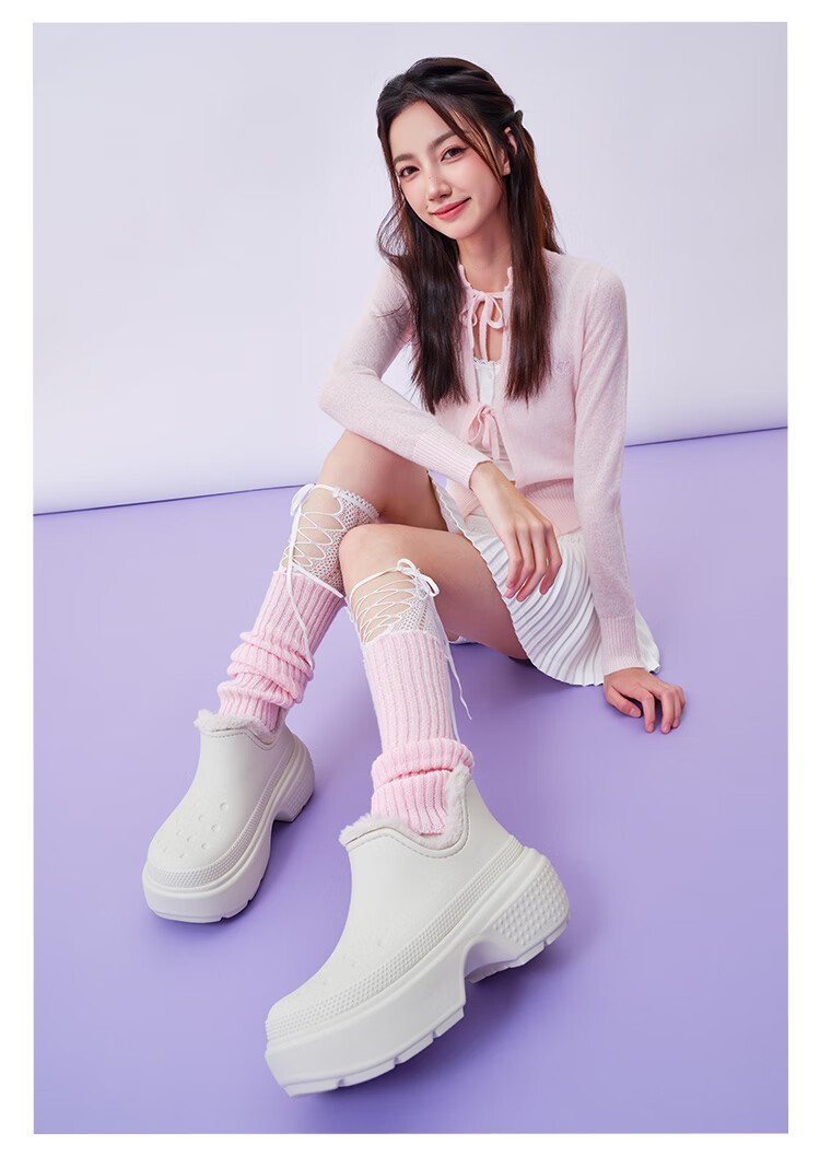 EVERAU女士冬季茸茸毛鞋领厚底便鞋休闲舒适棉鞋面包鞋懒人鞋丨UEA2001 暮粉色 38