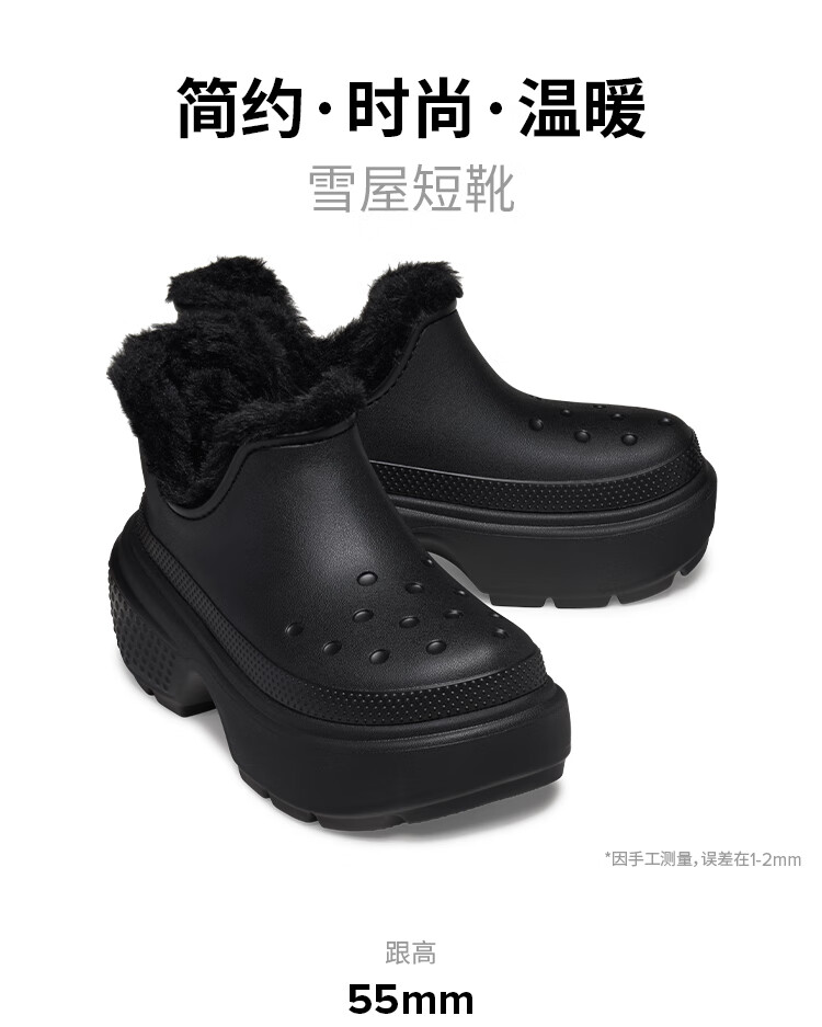 EVERAU男女同款经典迷你超短筒雪地靴舒适平底情侣靴休闲东北靴丨EA3125 黑色 35
