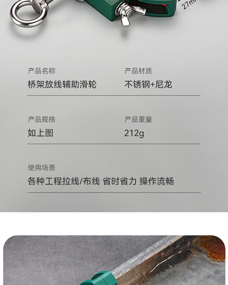 牛享专用桥架拉线滑轮穿线辅助顶棚吊顶车库综合布线弱电工具穿线神器 桥架放线辅助滑轮【绿色】