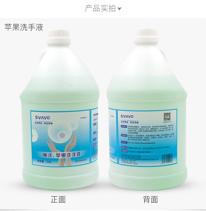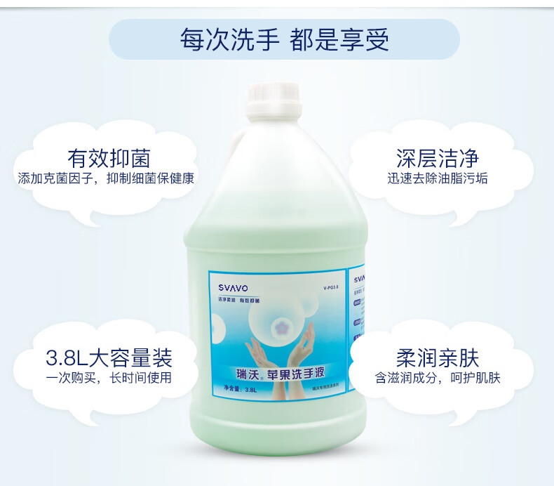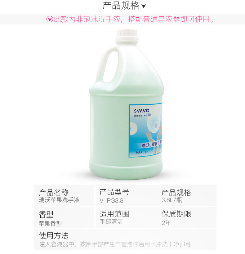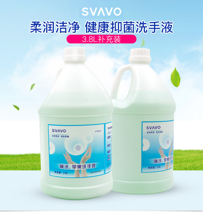 瑞沃(SVAVO)泡沫洗手 润肤 儿童成人健康呵护家用 3.8l/桶 苹果味洗手剂 (泡沫)洗手液【4桶/箱】