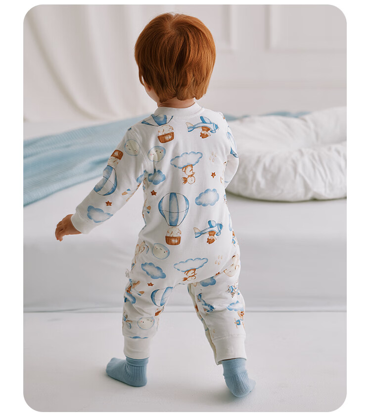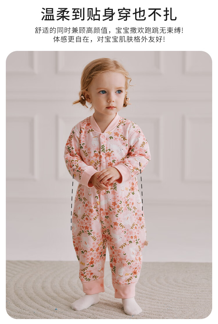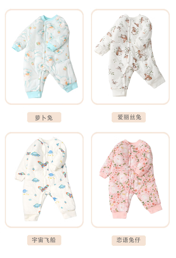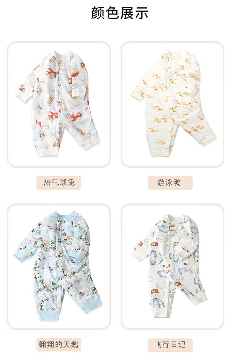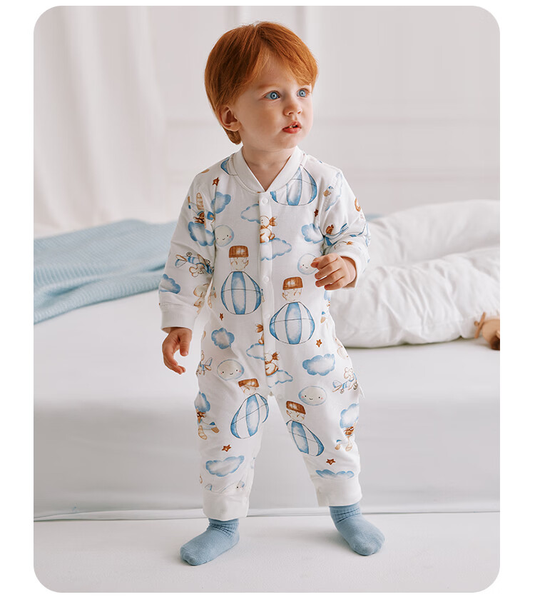 小猪大卫 PECODAVID新生儿秋冬夹棉连体衣男女宝宝卡通印花中开保暖爬服 飞行日记【40克】 80cm