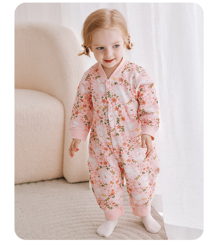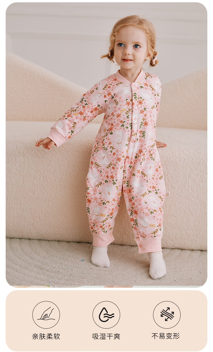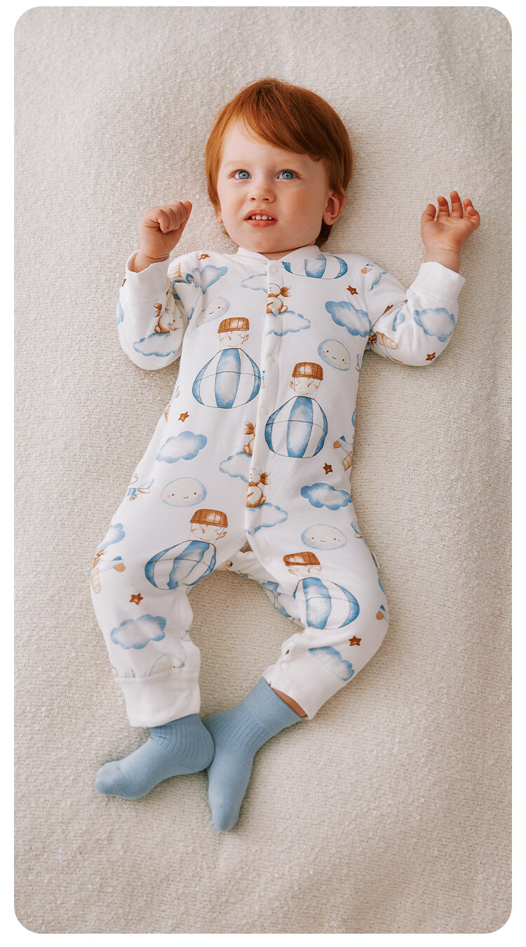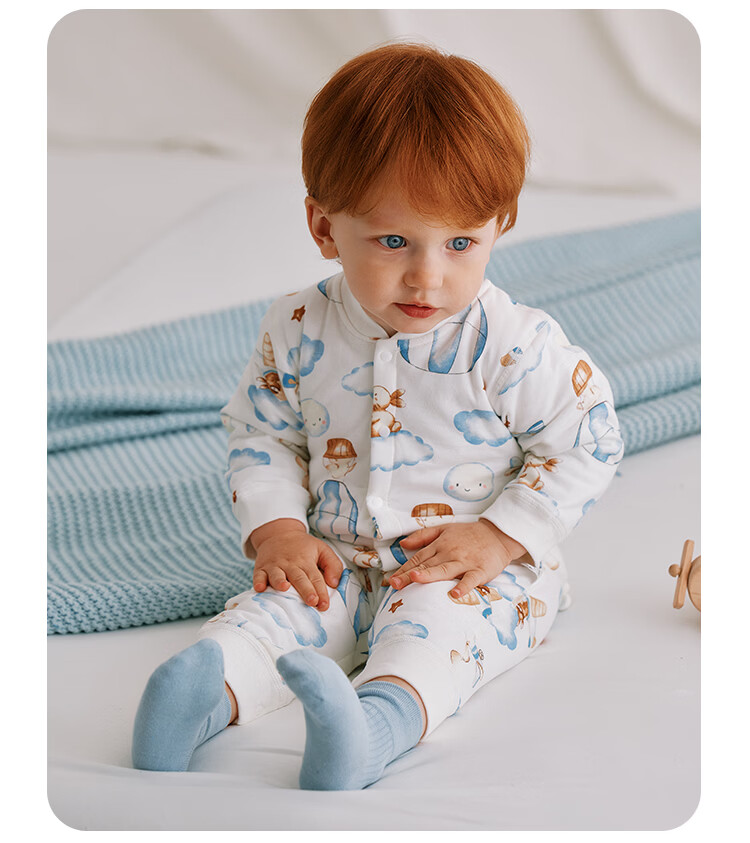 小猪大卫 PECODAVID新生儿秋冬夹棉连体衣男女宝宝卡通印花中开保暖爬服 飞行日记【40克】 80cm