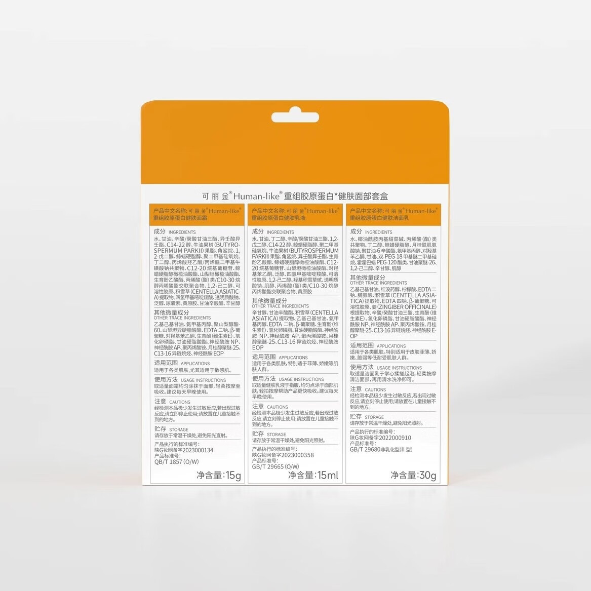 可丽金(COLLGENE)Human-like重组胶原蛋白健肤面部套盒 (15g/支+15ml/支+30g/支)/套