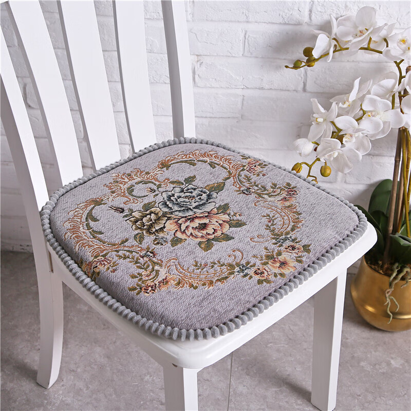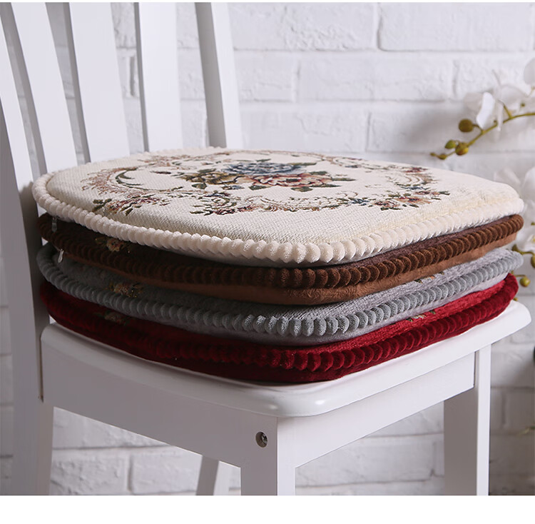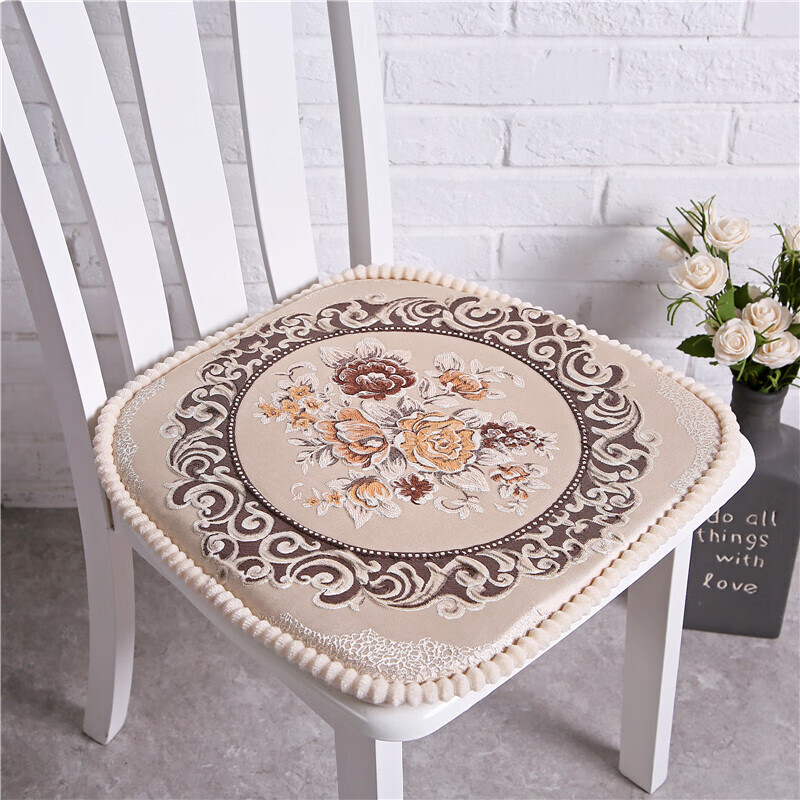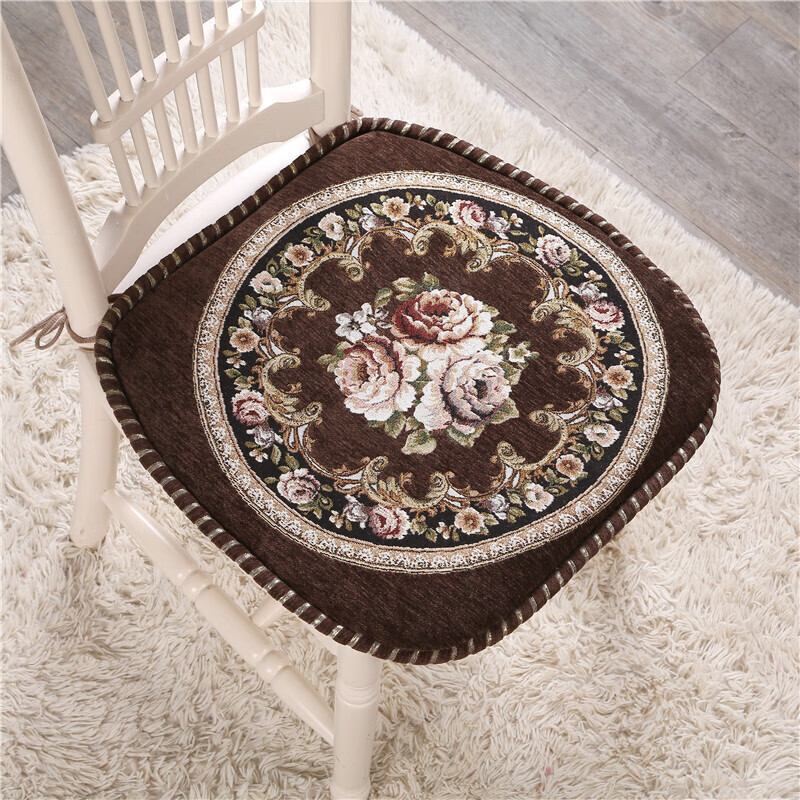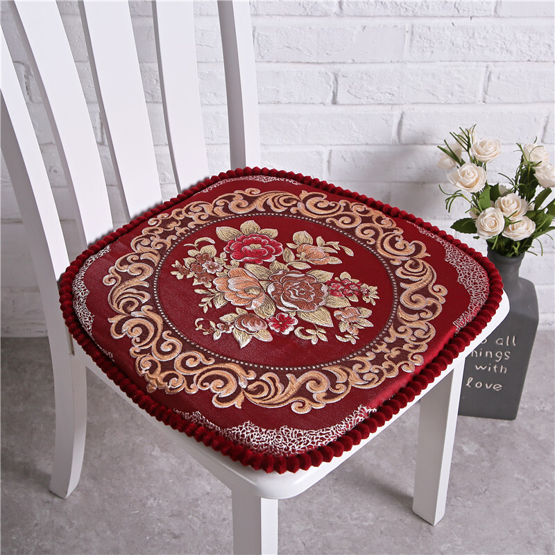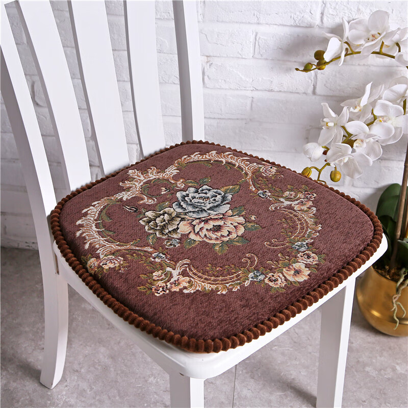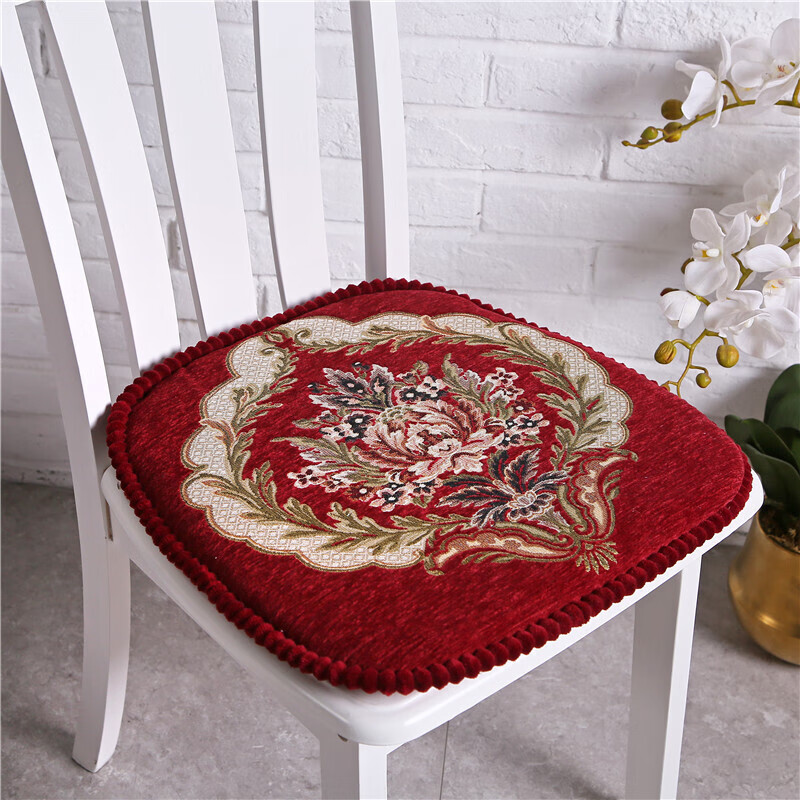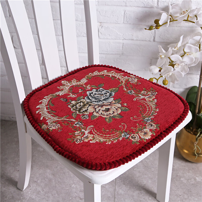 罗兰家纺 餐椅垫坐垫椅子凳子垫子可拆洗绑带椅垫 餐桌椅加厚实木餐椅座垫 花开富贵酒红 45*43cm标准号