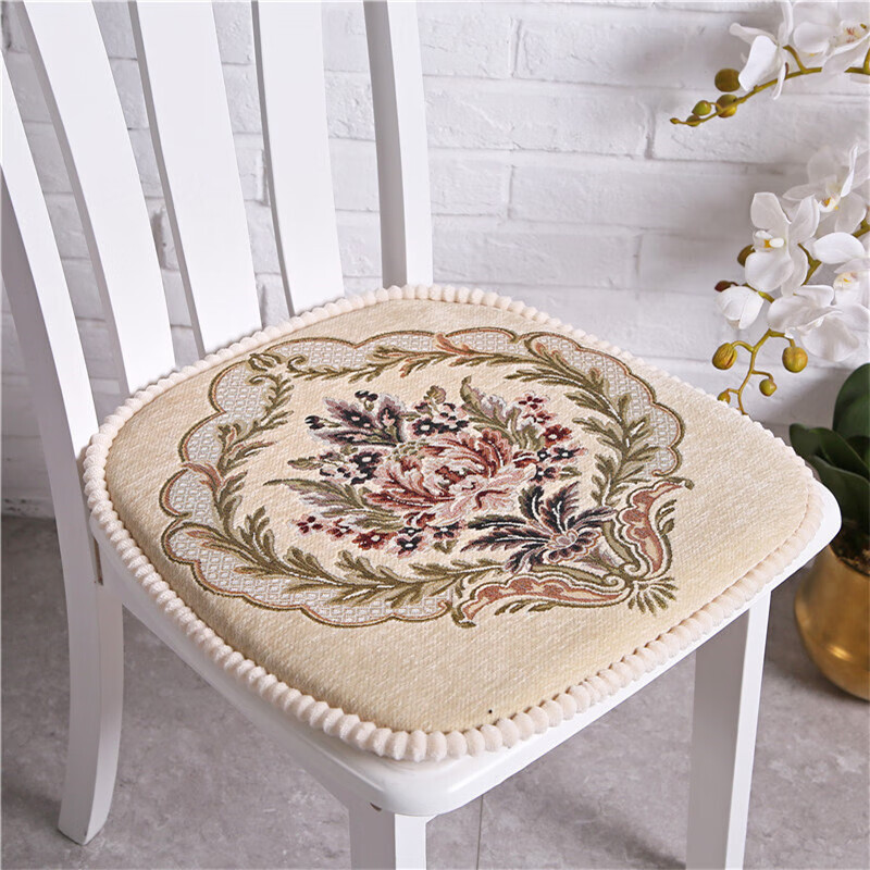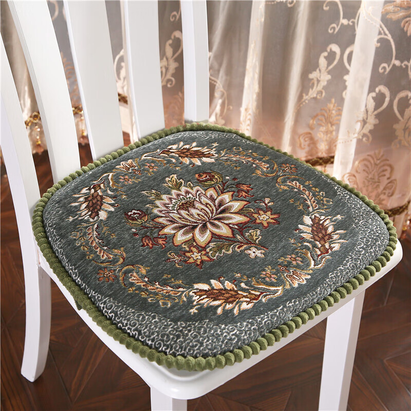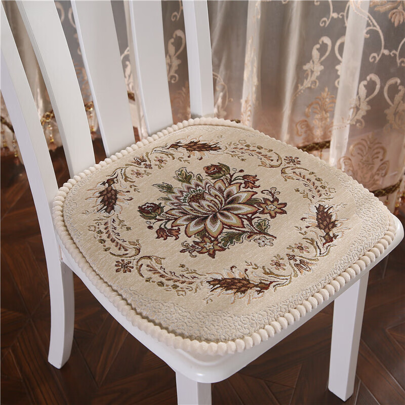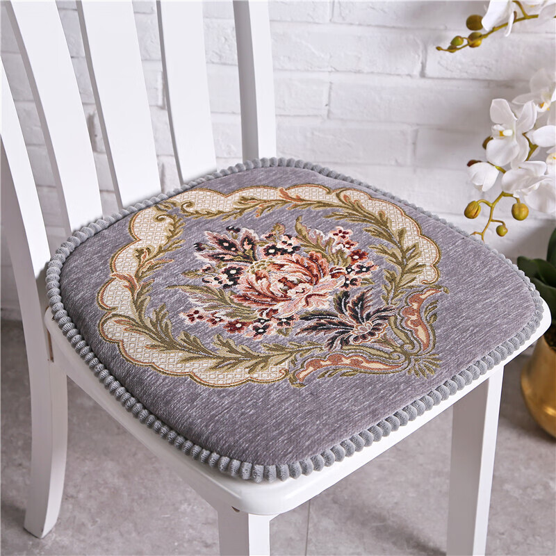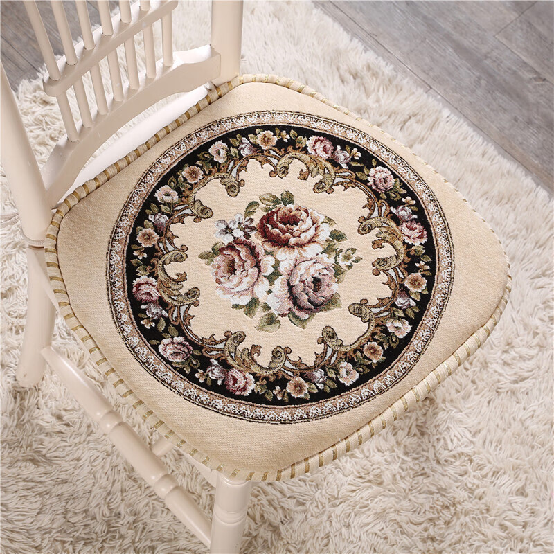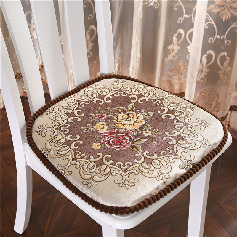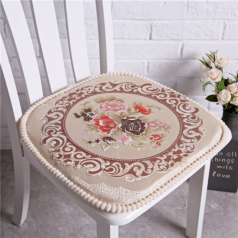 罗兰家纺 餐椅垫坐垫椅子凳子垫子可拆洗绑带椅垫 餐桌椅加厚实木餐椅座垫 花开富贵酒红 45*43cm标准号