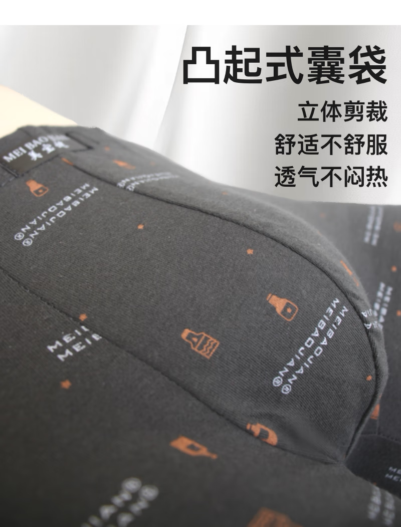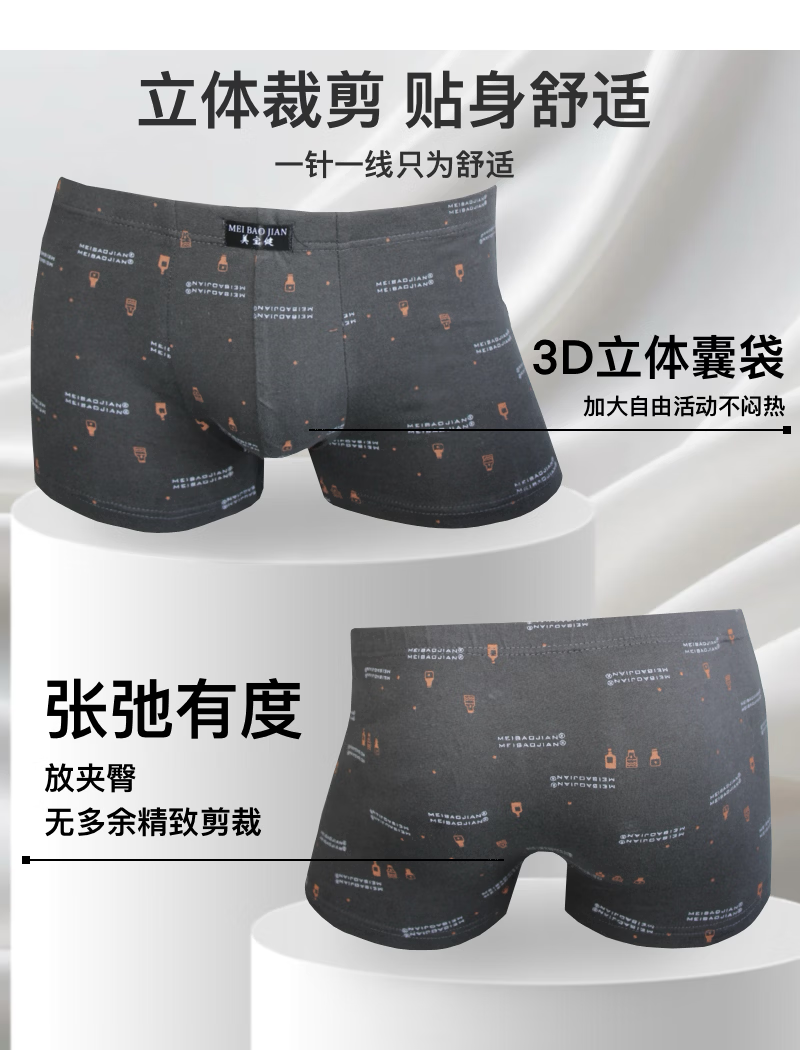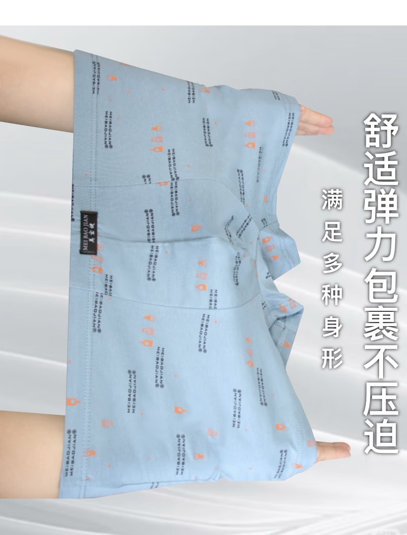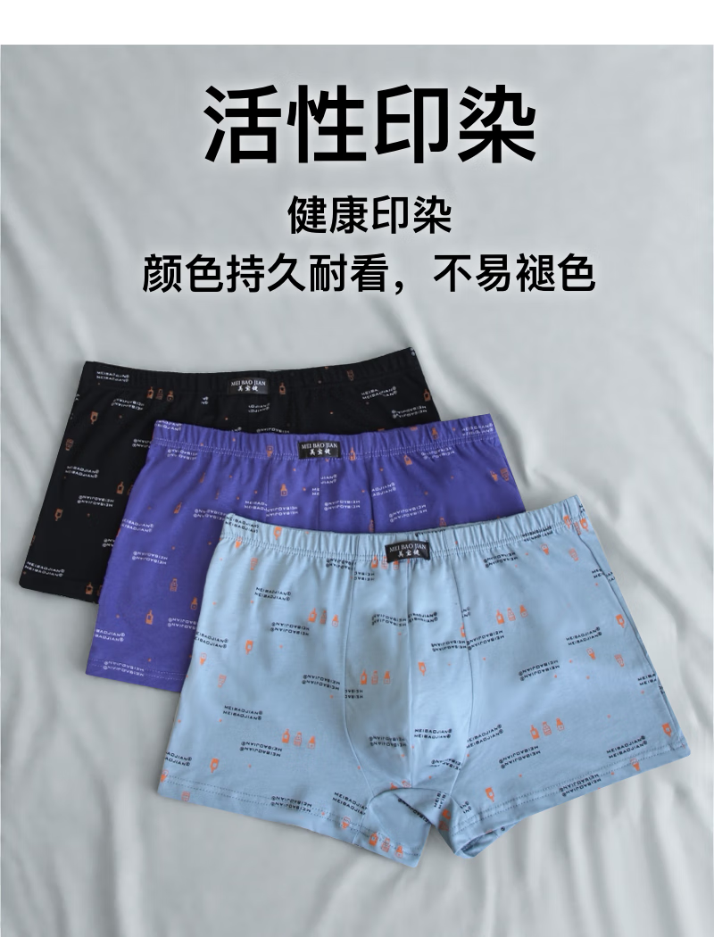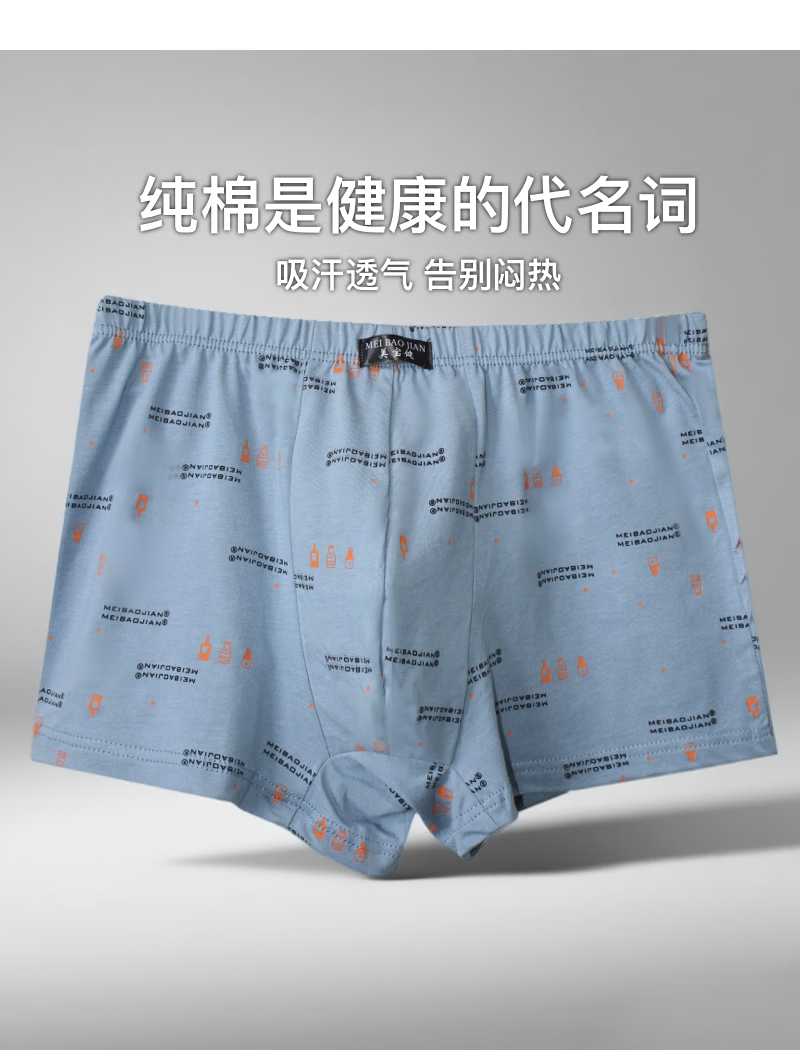 美宝健【100%纯棉】青少年男士纯棉平角裤透气吸汗抗菌中腰印花四角学生 【一条装】100%纯棉-双层档-随机色 1条 6XL 【180-220斤】 100%纯棉