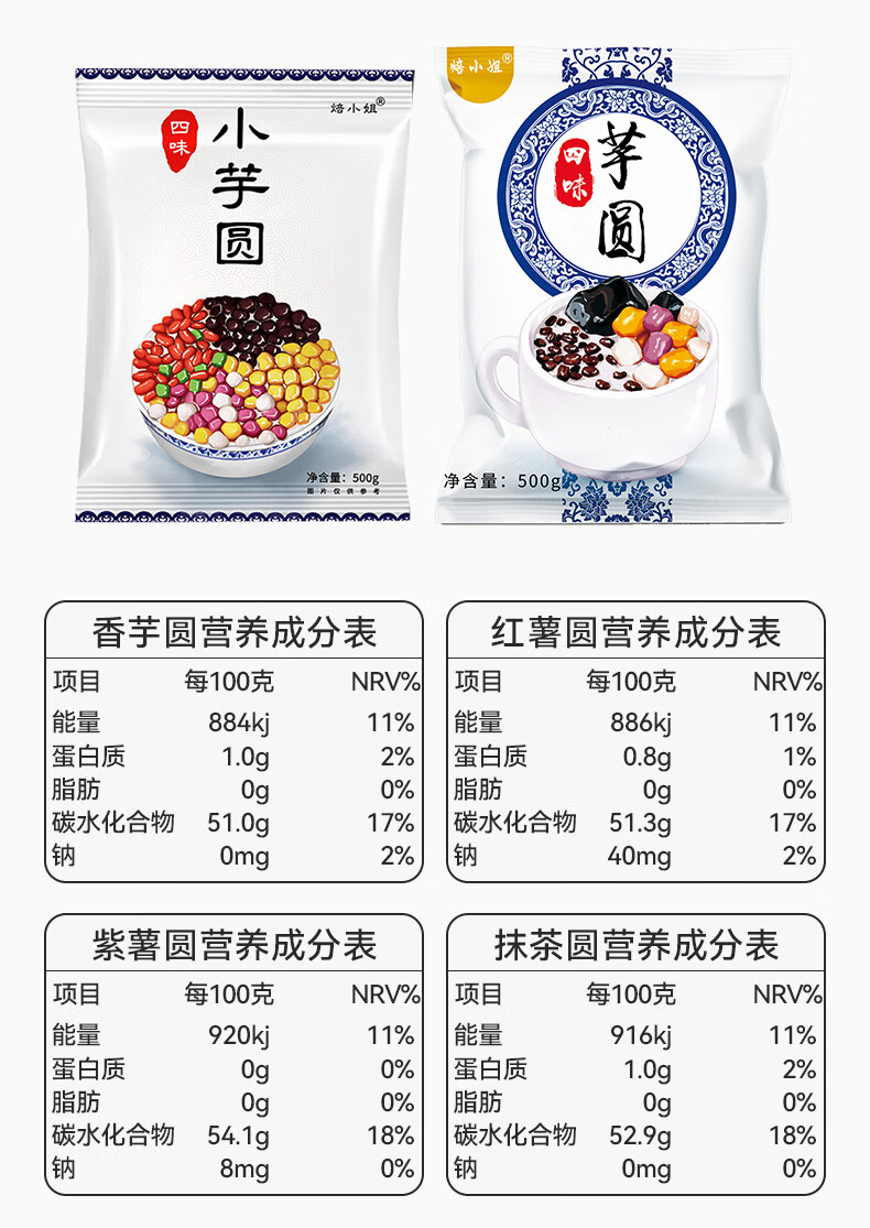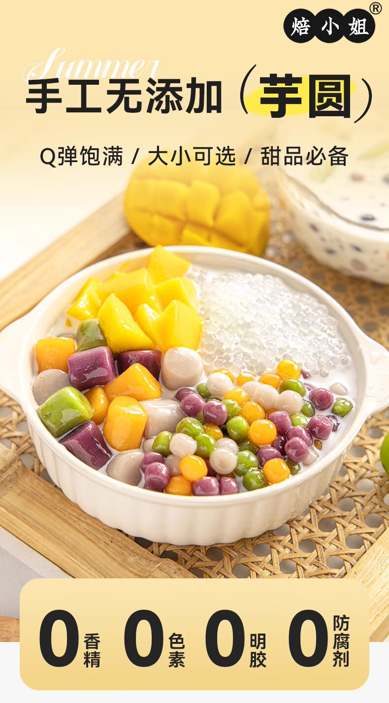 焙小姐无添加芋圆手工大小丸子奶茶店珍珠专用原材料西米露鲜芋仙三色0 【2斤】四味大芋圆+四味小芋圆