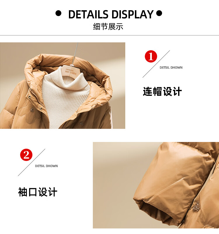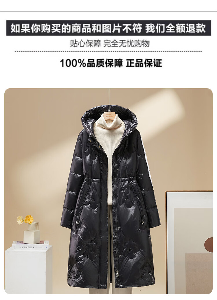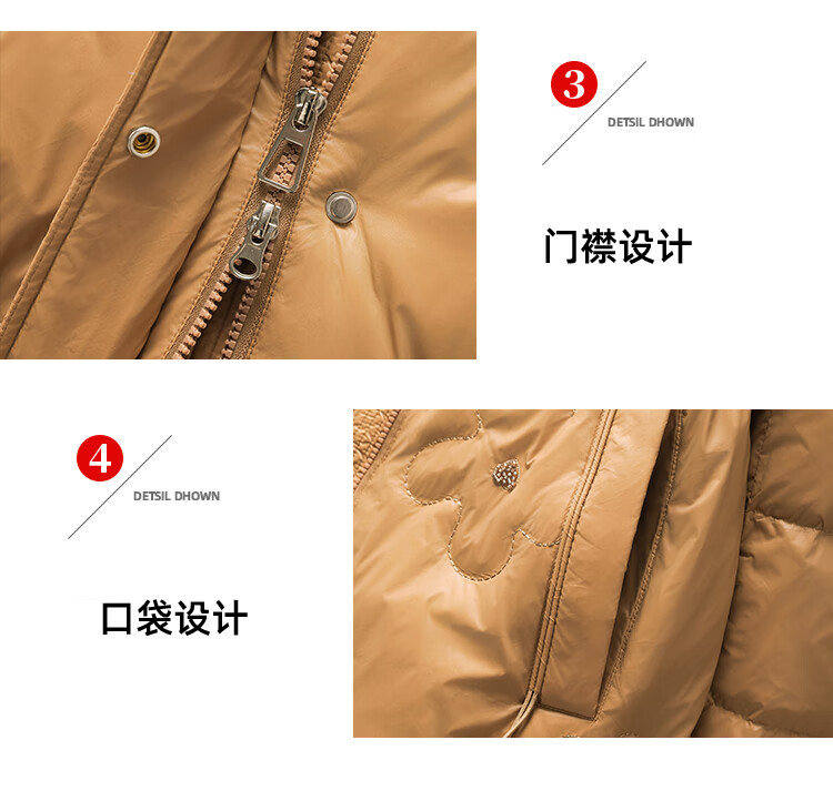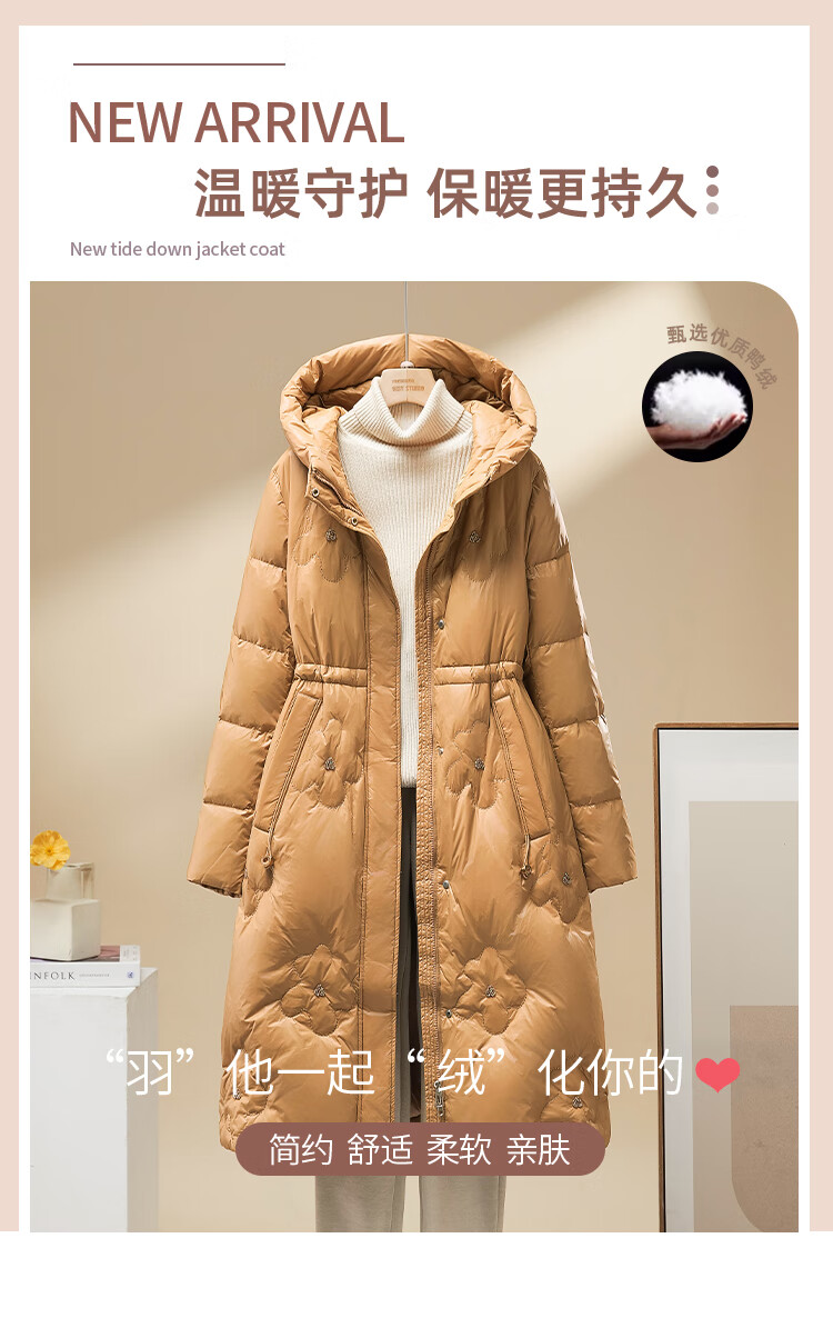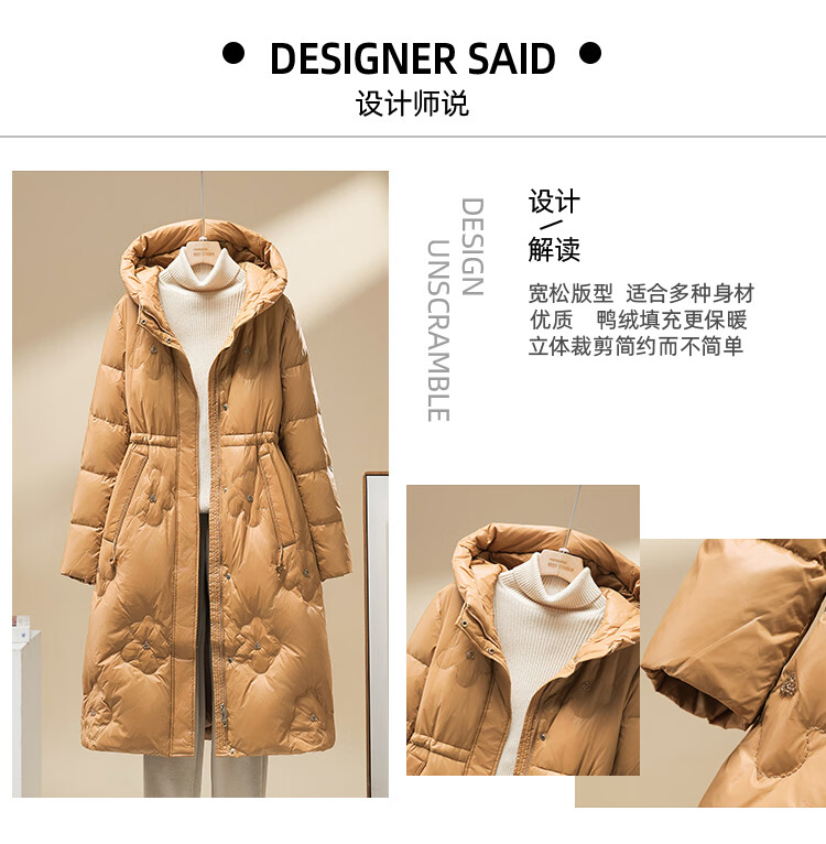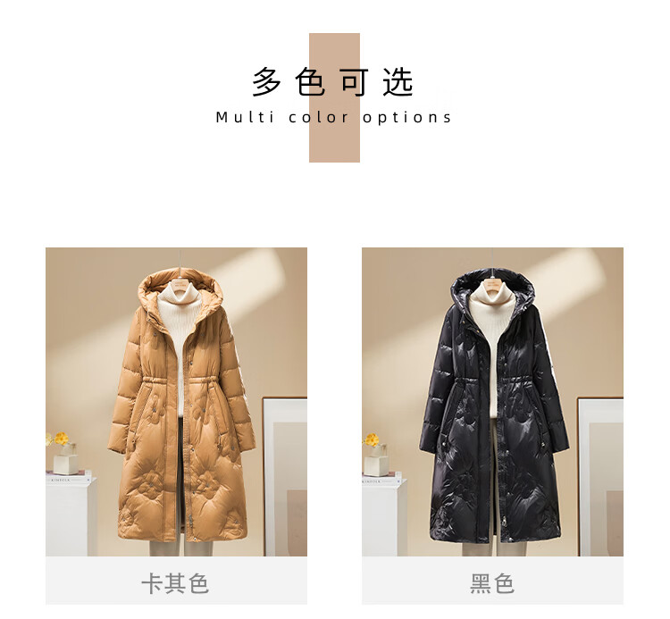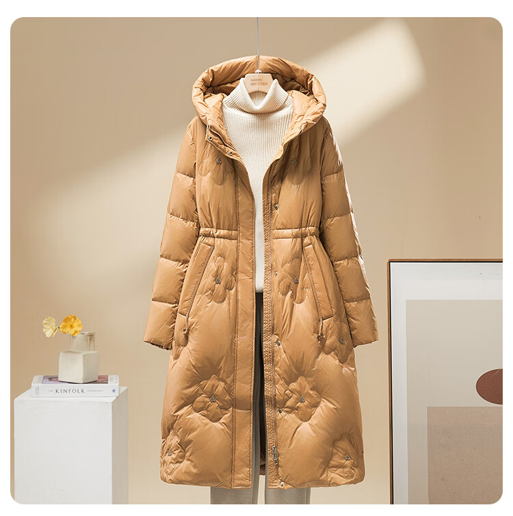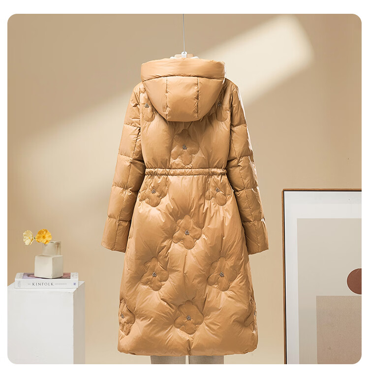 雪中飞羽绒服女过膝长款25冬新款收腰显瘦90绒休闲连帽外套30798 卡其色 XL (175/96A)