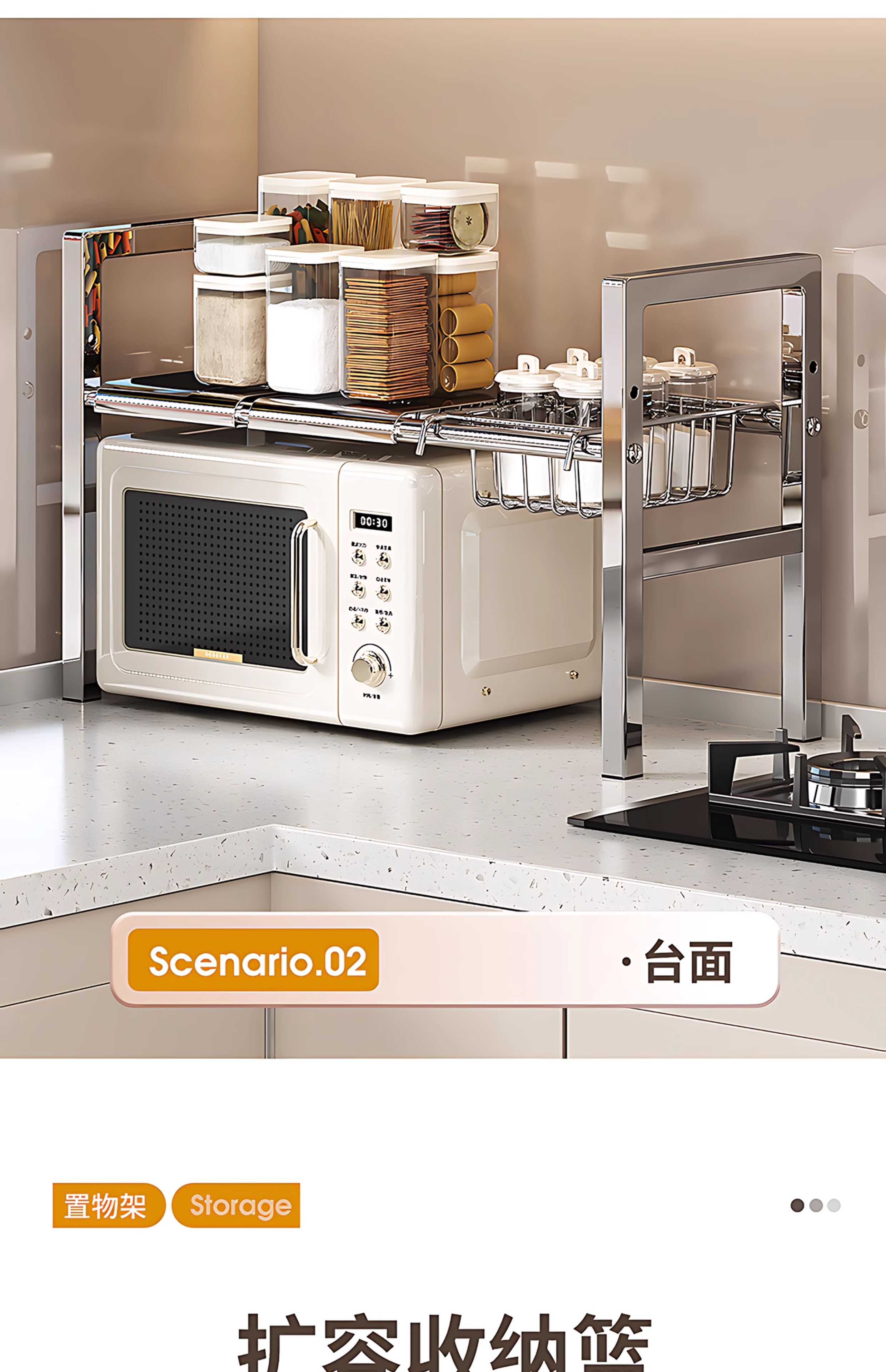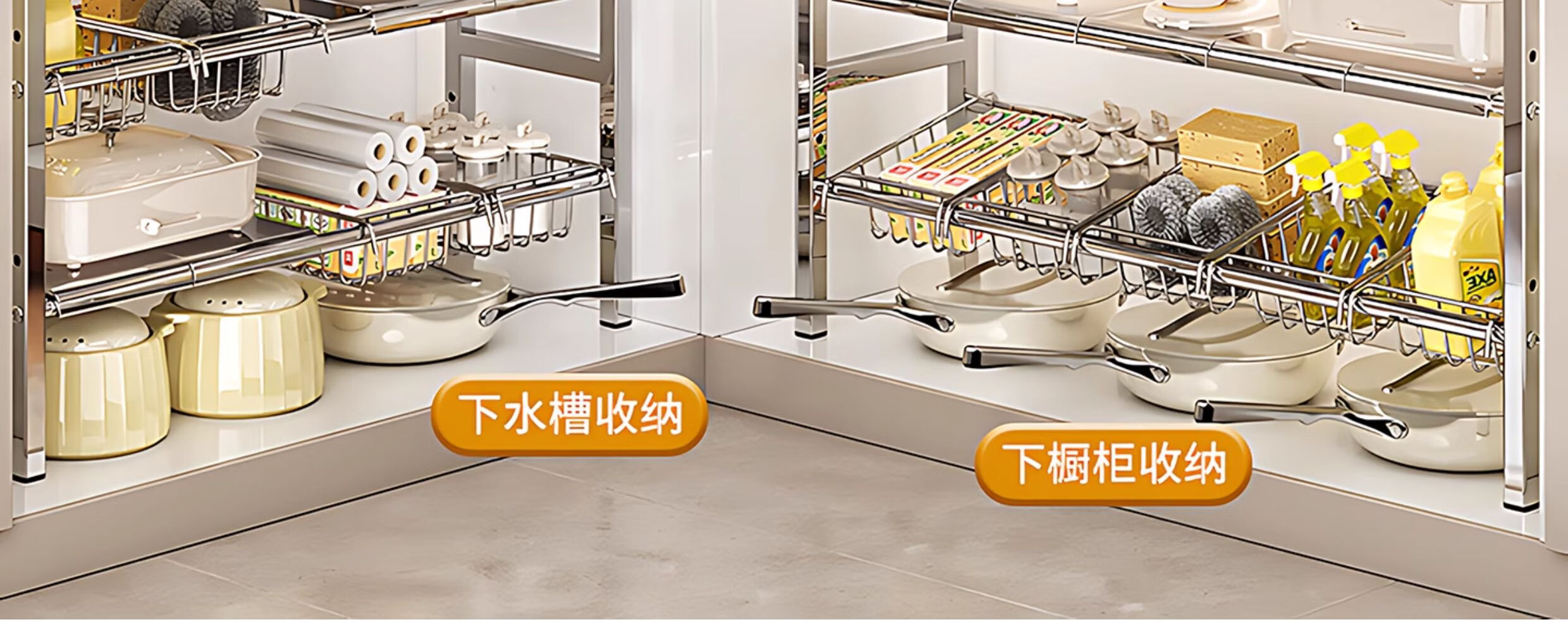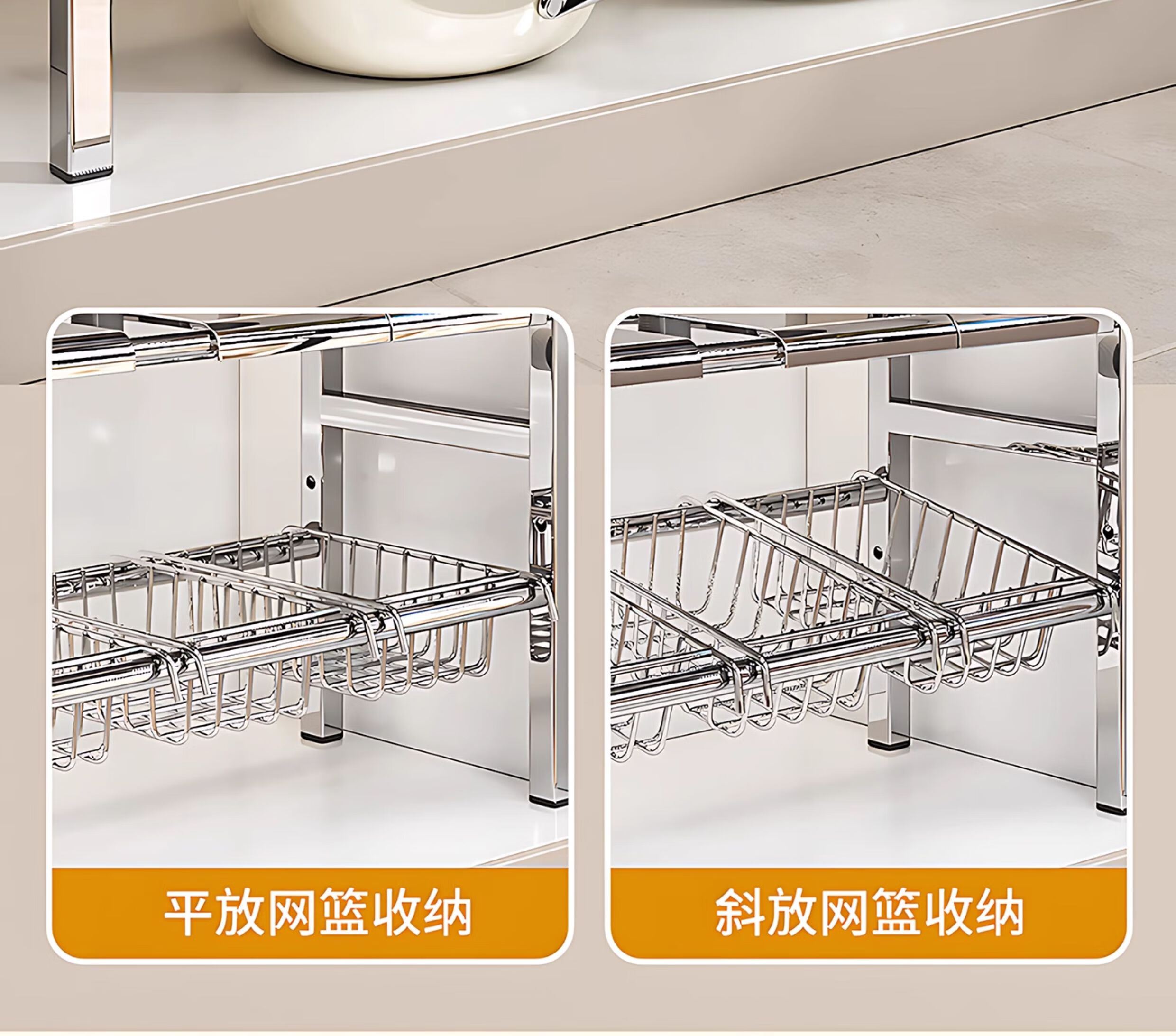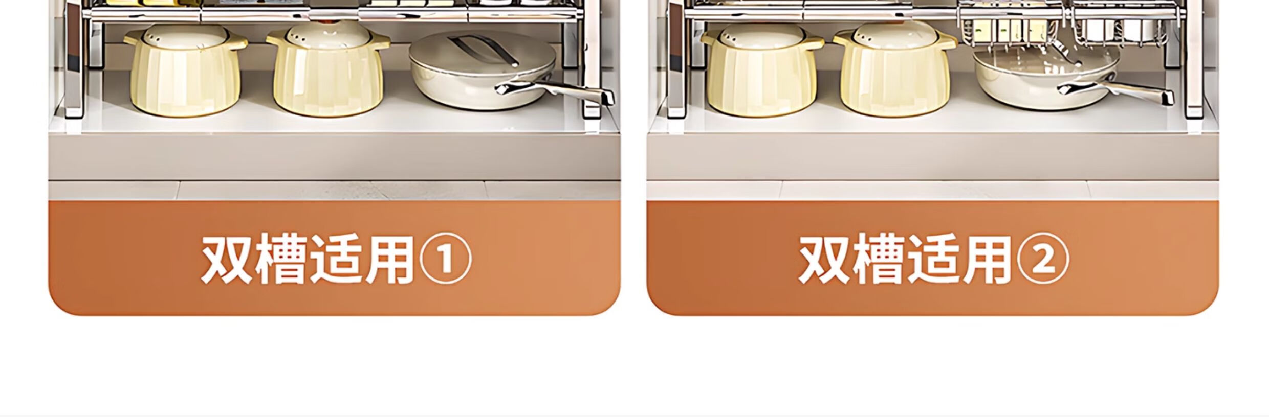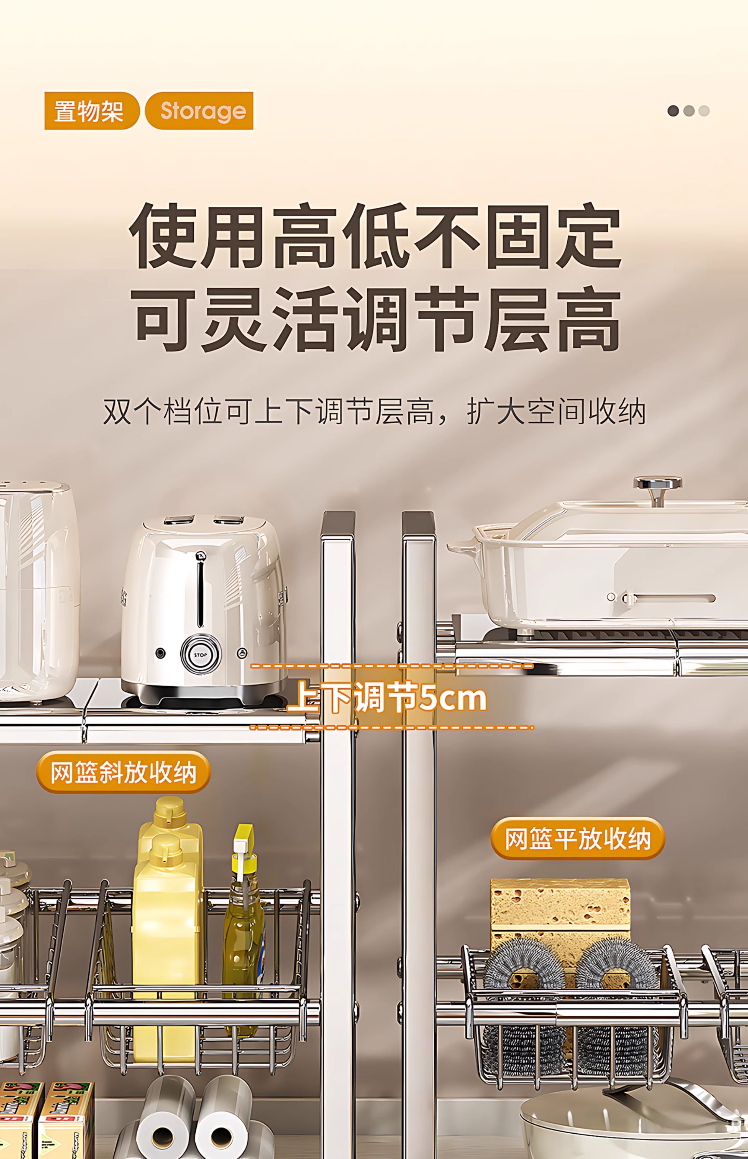 炊大皇厨房伸缩置物架水槽下不锈钢架分层橱柜碗碟储物台面锅架收纳架子 A1【不锈钢本色】单层三板