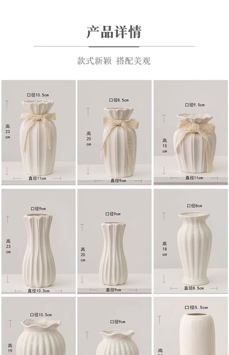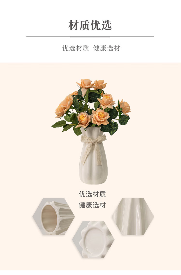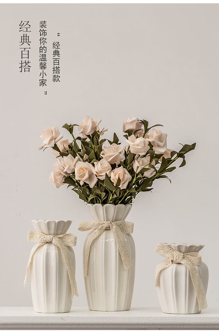 OYKTN欧式玫瑰插花花瓶白色简约陶瓷花器客厅餐桌干花鲜花水培装饰摆件 XQ-花泽【中号】没有花