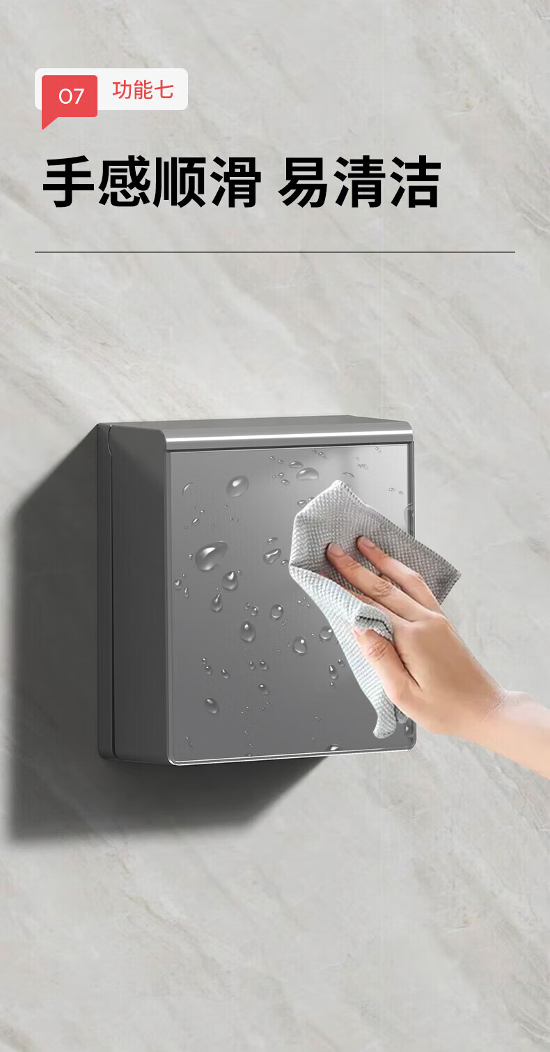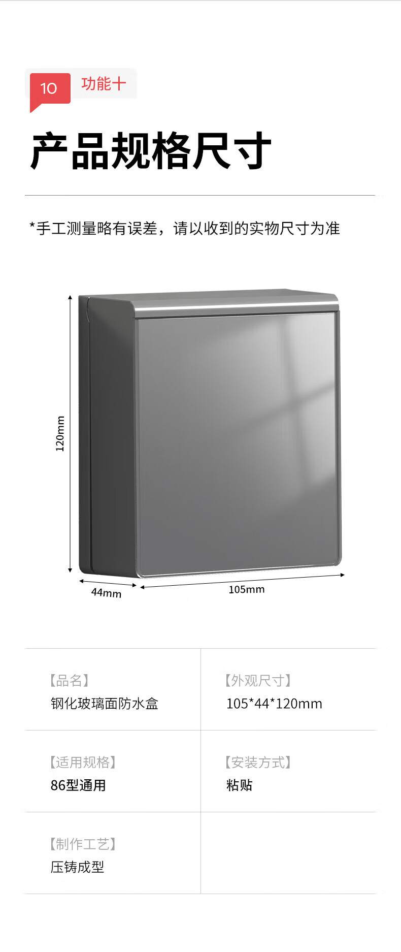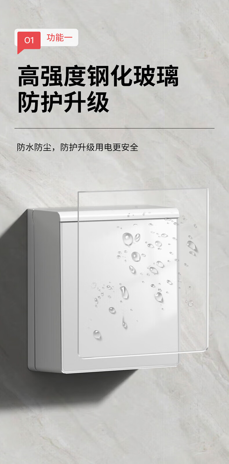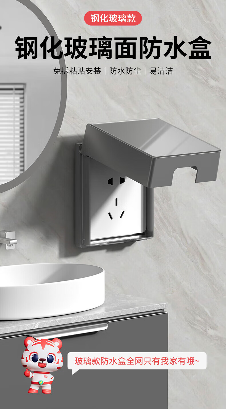 国际电工大理石纹理钢化玻璃防水盒自粘免打孔超薄双联开关插座仿尘保护盒 超薄一位防水盒(白色镜面)