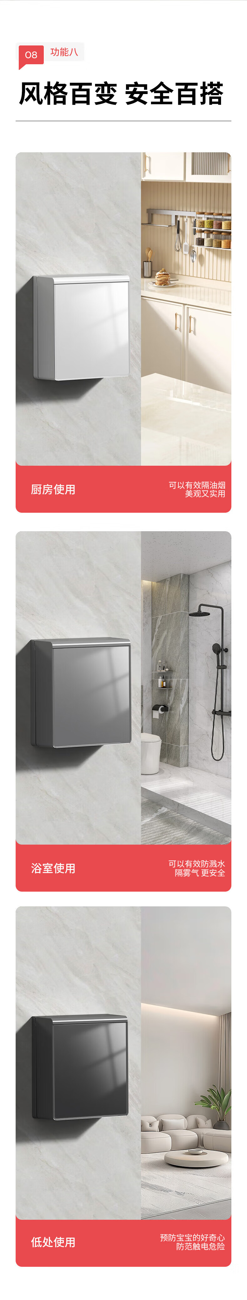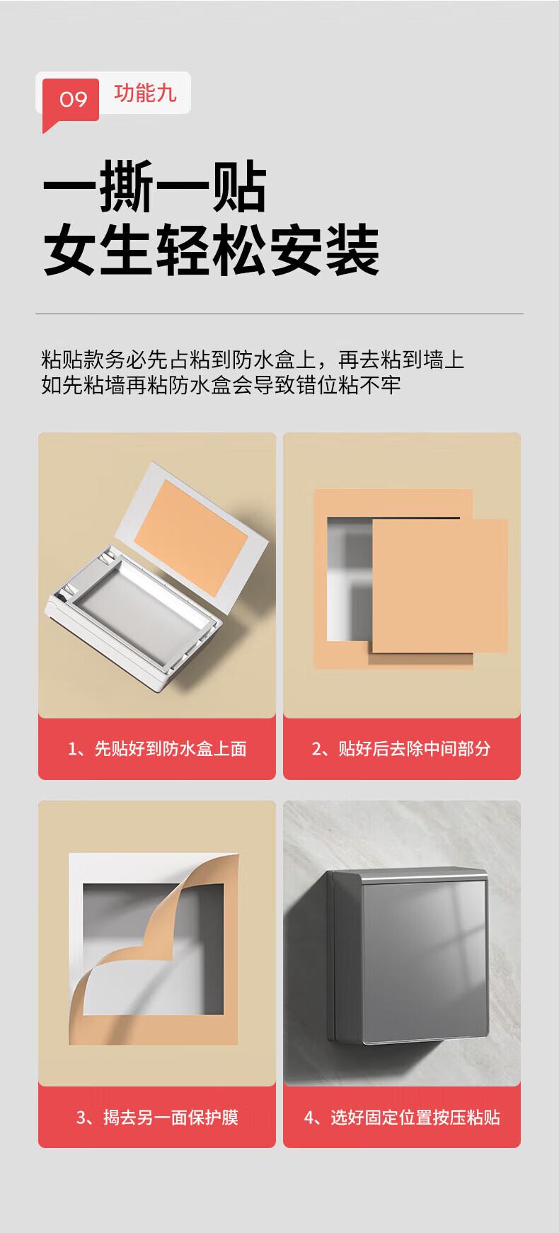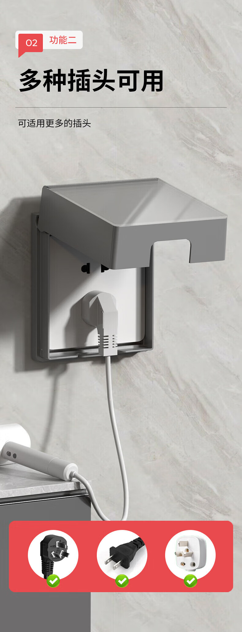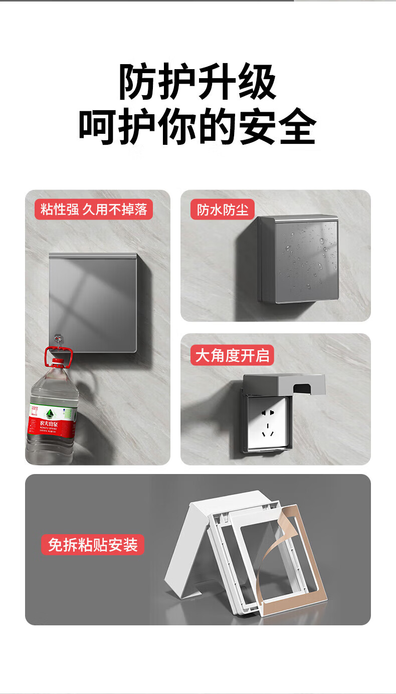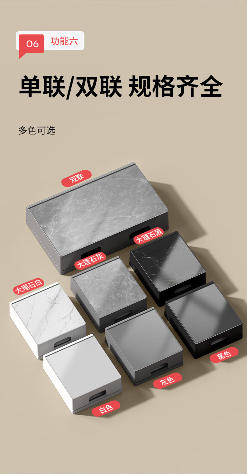 国际电工大理石纹理钢化玻璃防水盒自粘免打孔超薄双联开关插座仿尘保护盒 超薄一位防水盒(白色镜面)