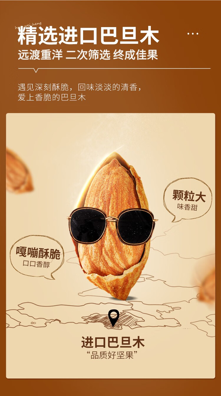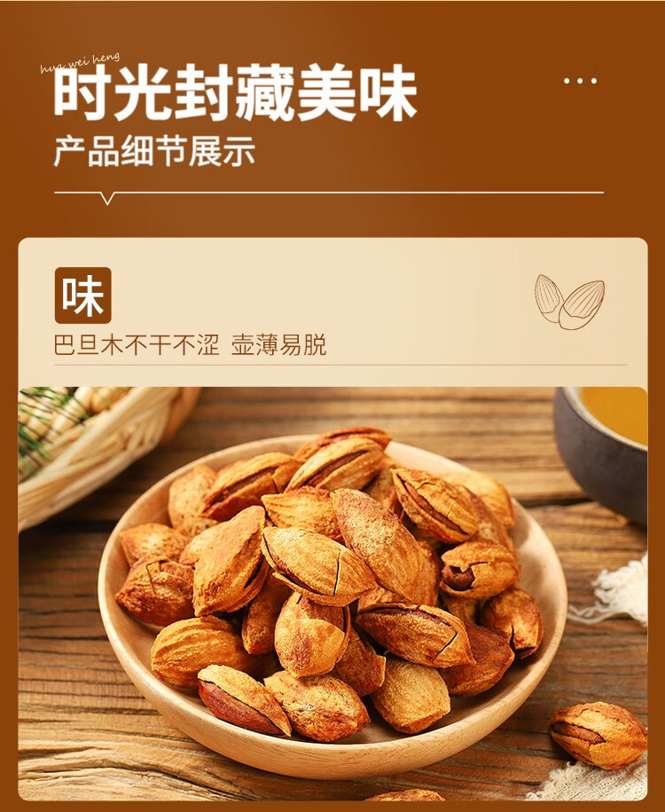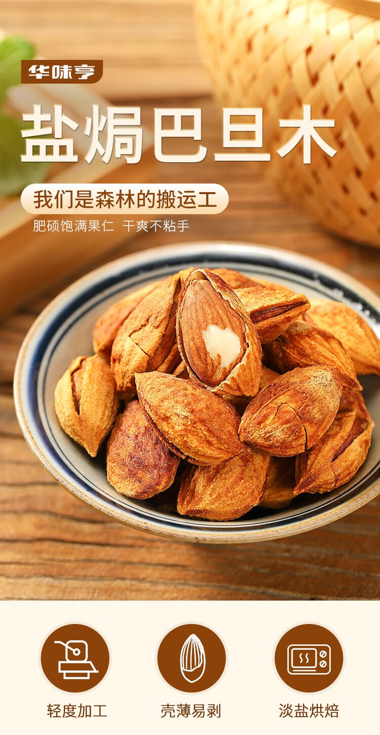 华味亨 盐焗巴旦木500g 袋装薄壳每日坚果炒货开口扁桃仁办公室零食 500g盐焗巴旦木*1袋