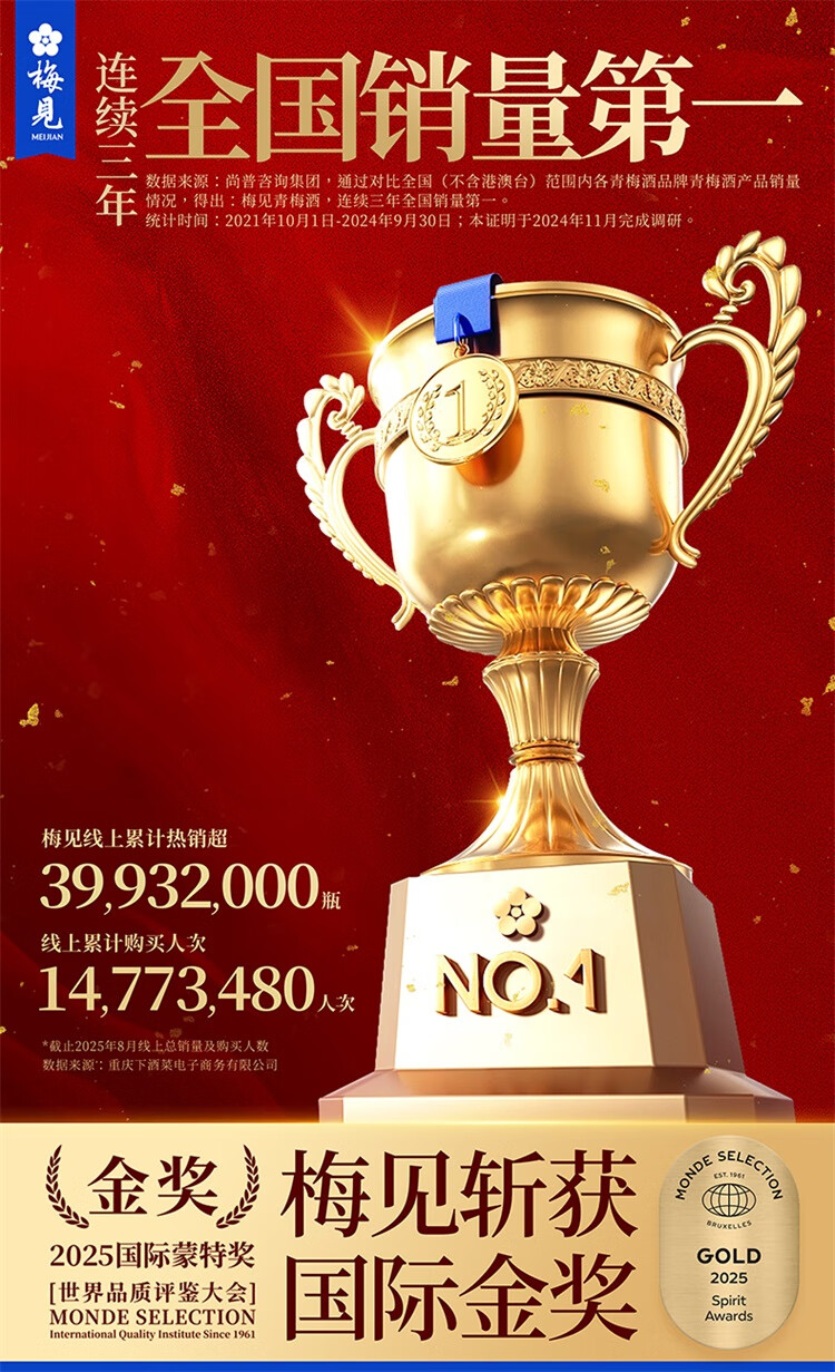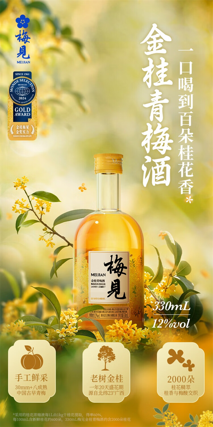 梅见青梅酒果酒梅子酒330ml低度微醺伴手礼女士低度甜酒 原味1+清爽2+时光2