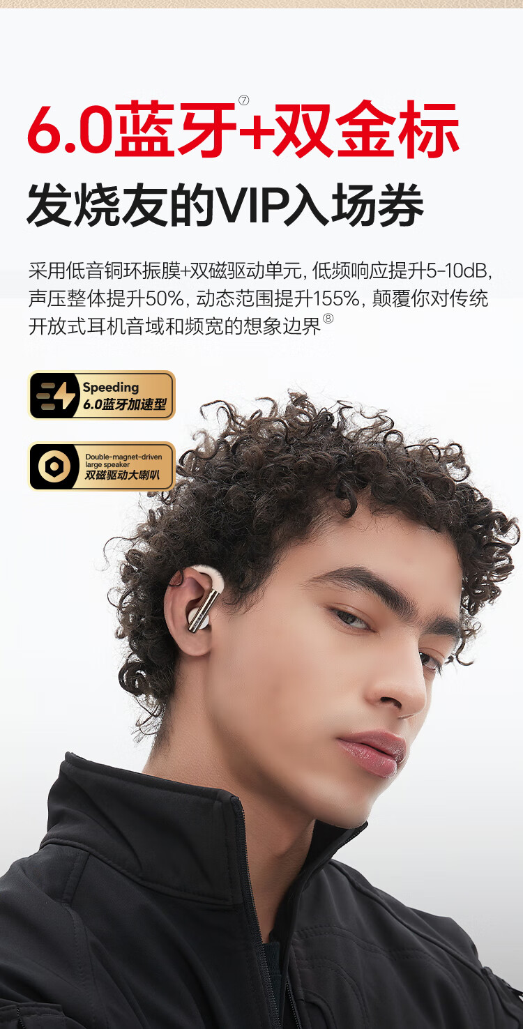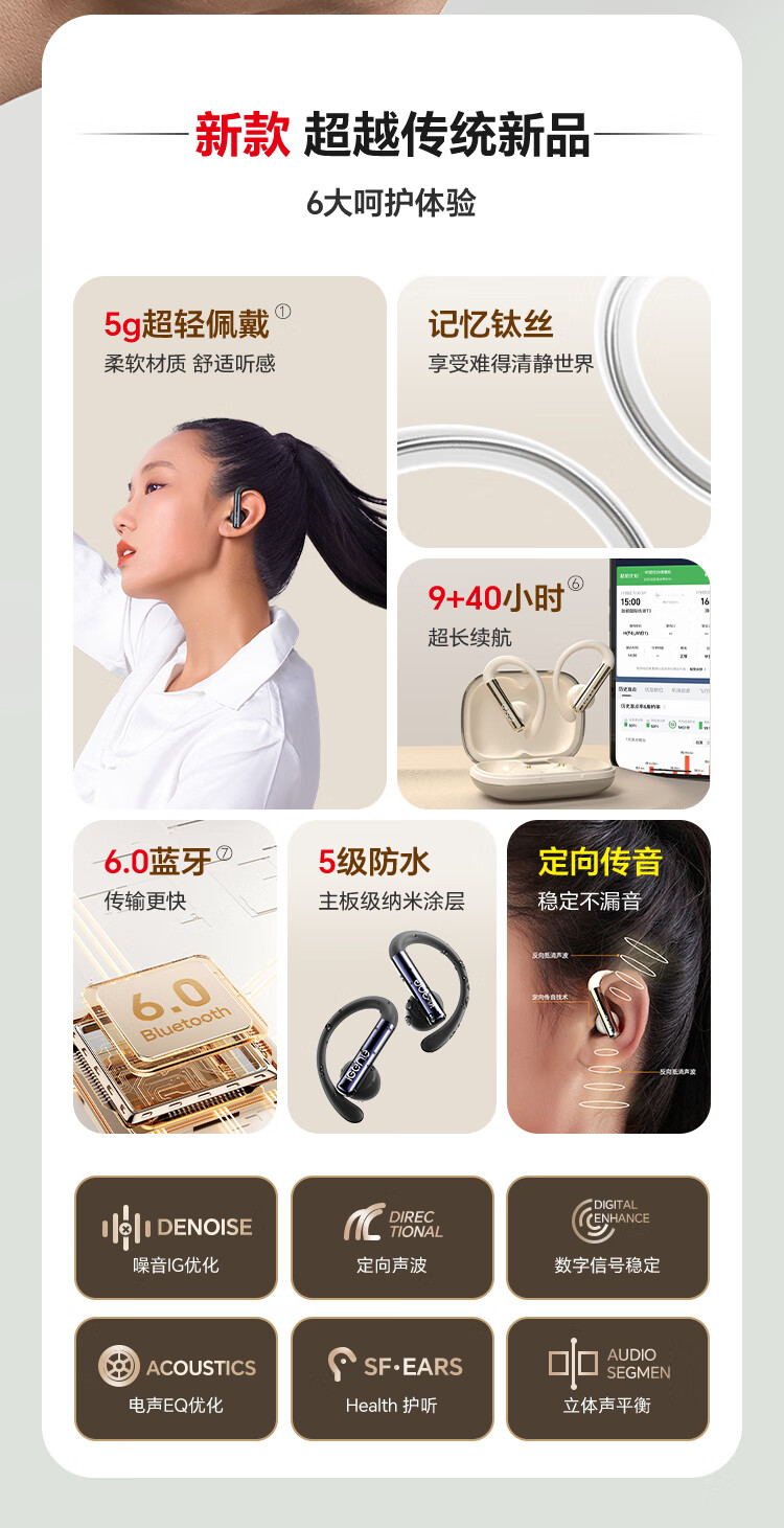 击音【AI翻译+长续航+5g超轻】6.0蓝牙耳机挂耳式骨传导概念无线开放不入耳运动跑步适用苹果华为小米