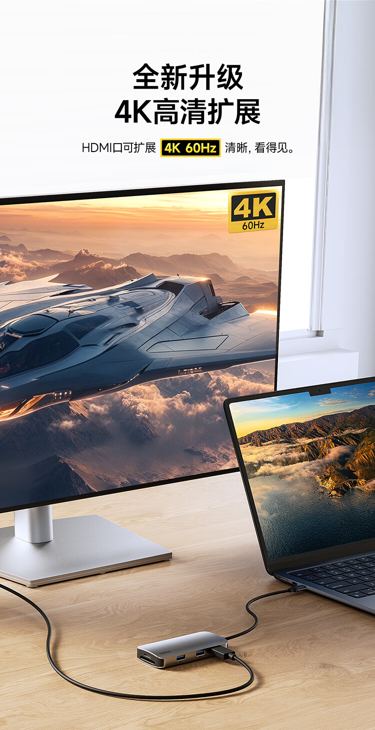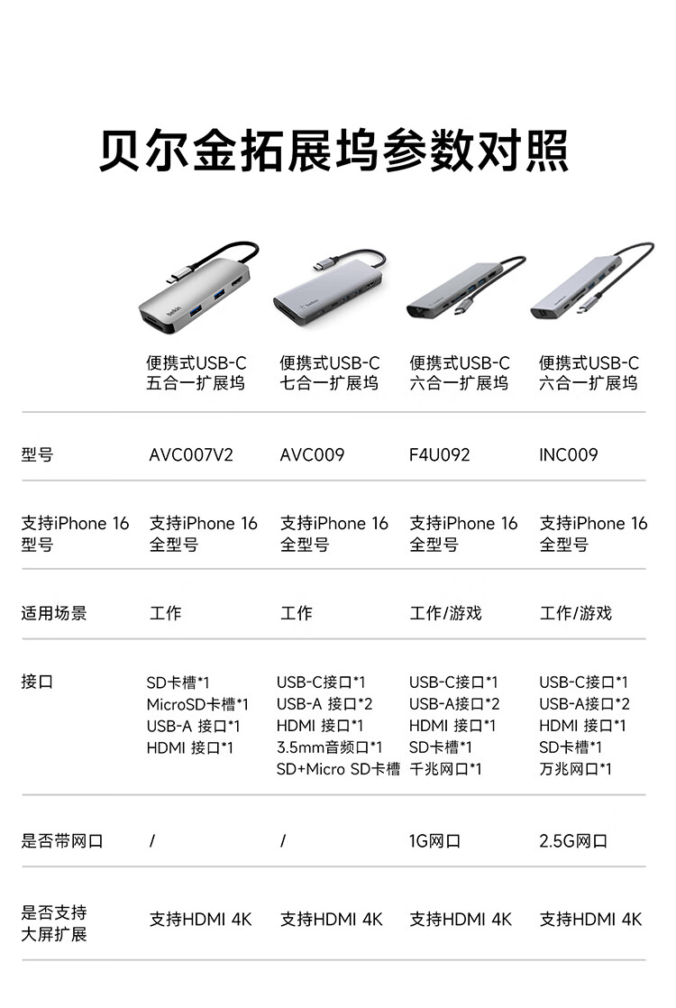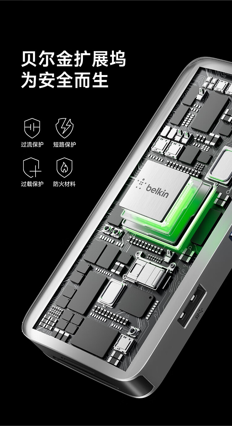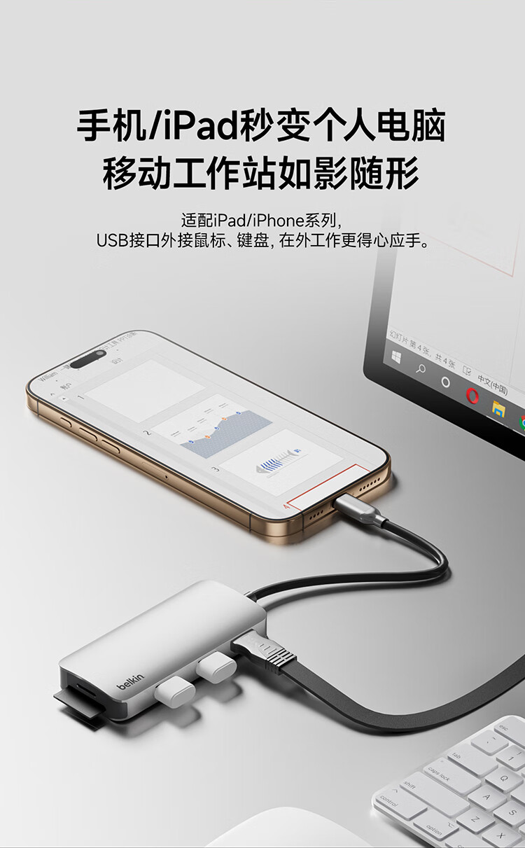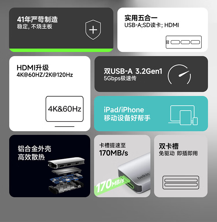 贝尔金(BELKIN)Type-C拓展坞 MacBook扩展坞5合1 电脑USB扩展TF/SD读卡器 iPad投屏HDMI 兼容雷电口 AVC007-V2