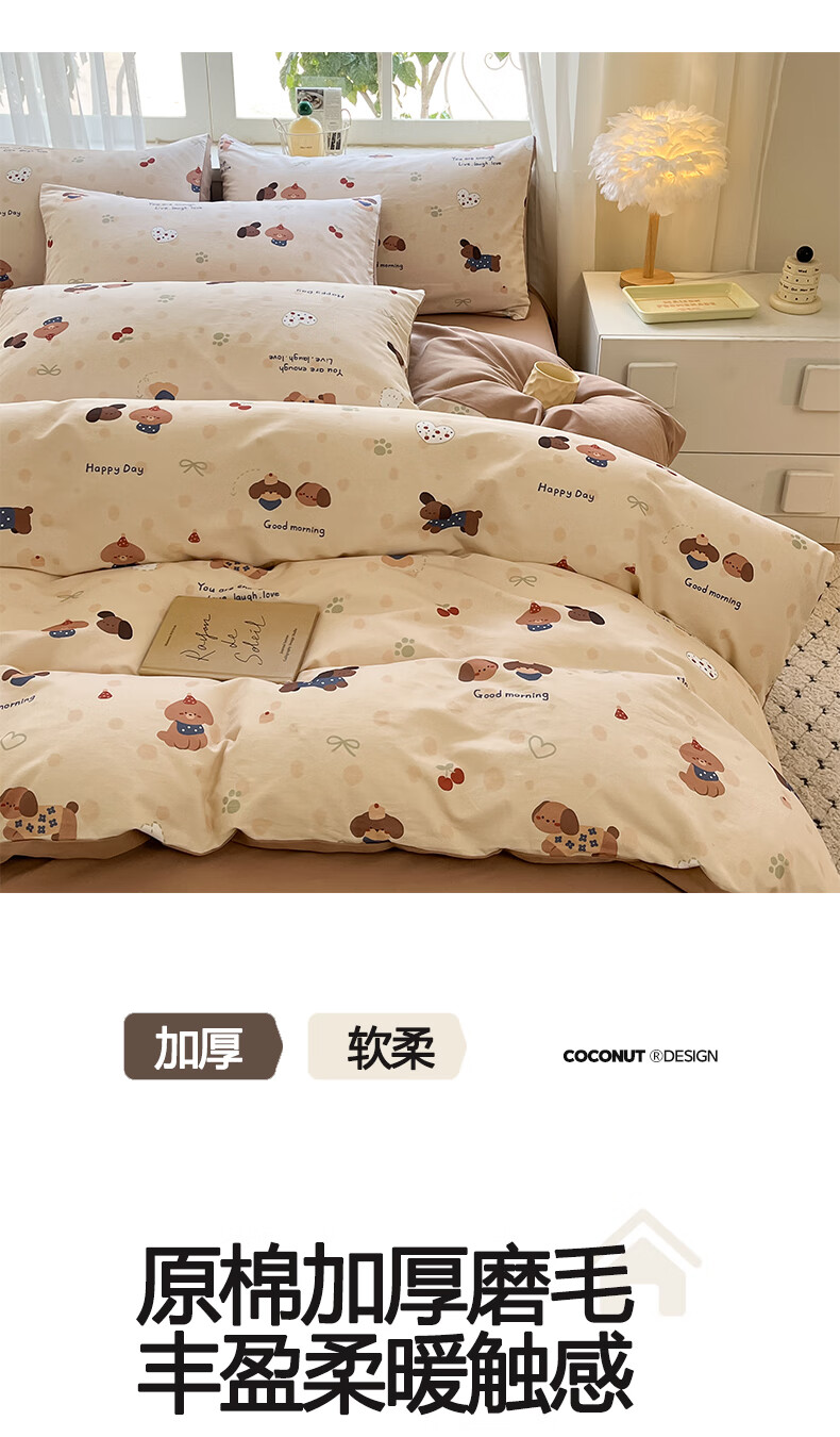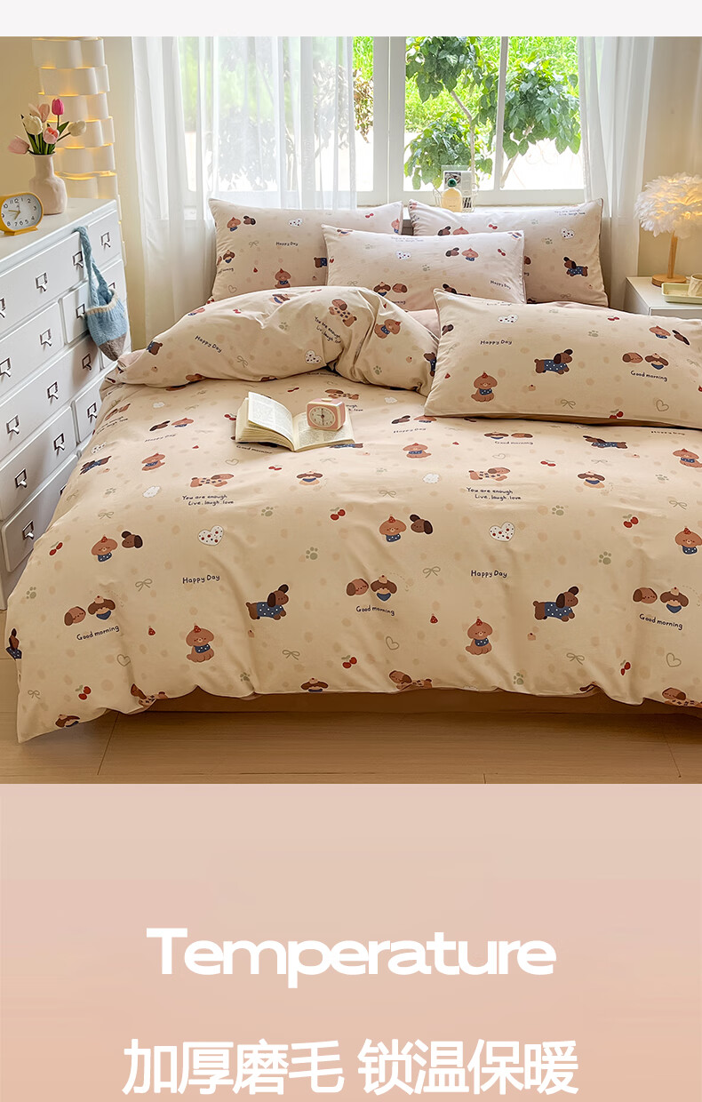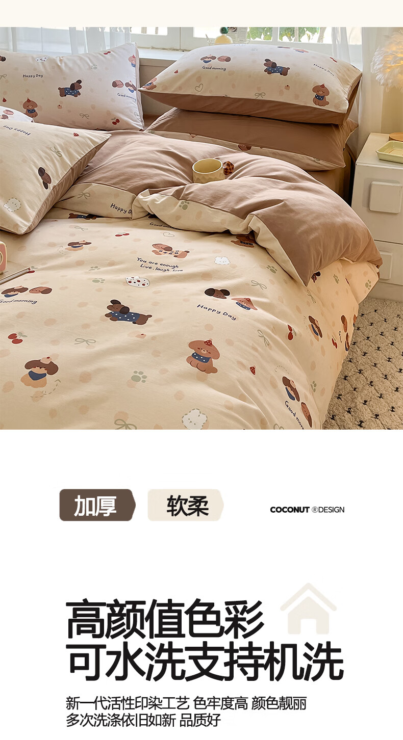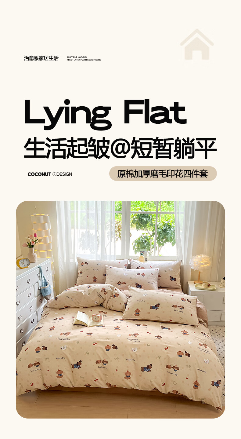 猫人(MiiOW)秋冬加厚磨毛床上四件套 卡通床单被套罩床笠单双人床品 花漾 1.8 床笠款 四件套(被套200*230cm)