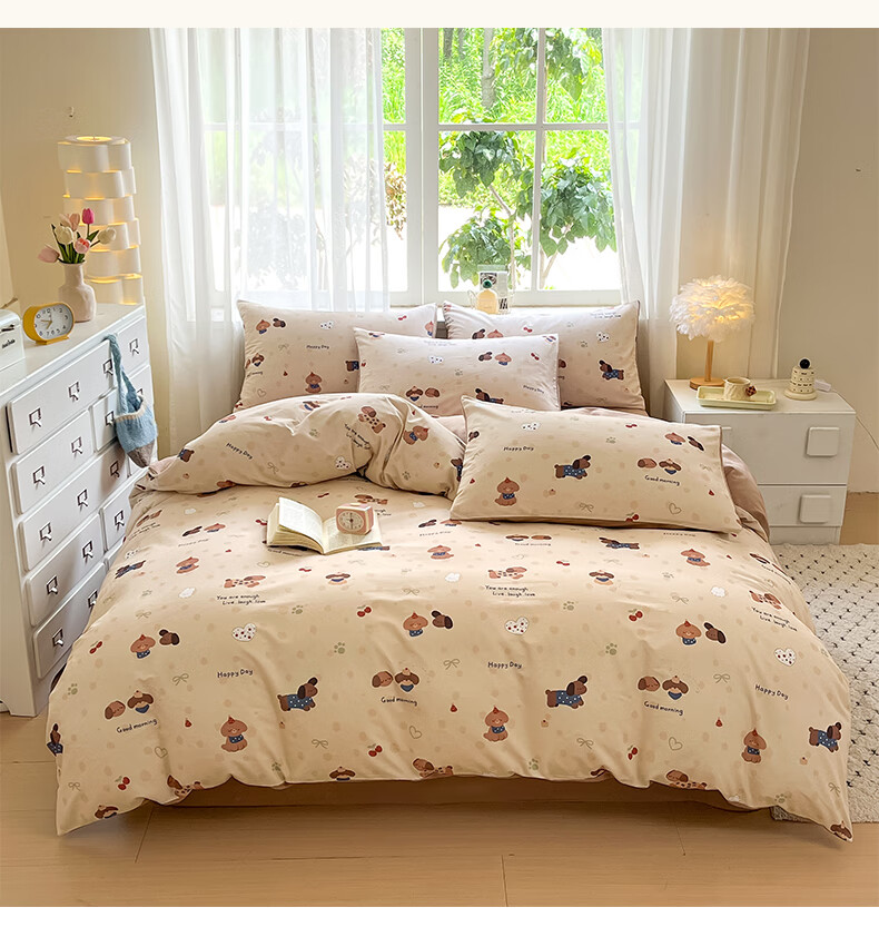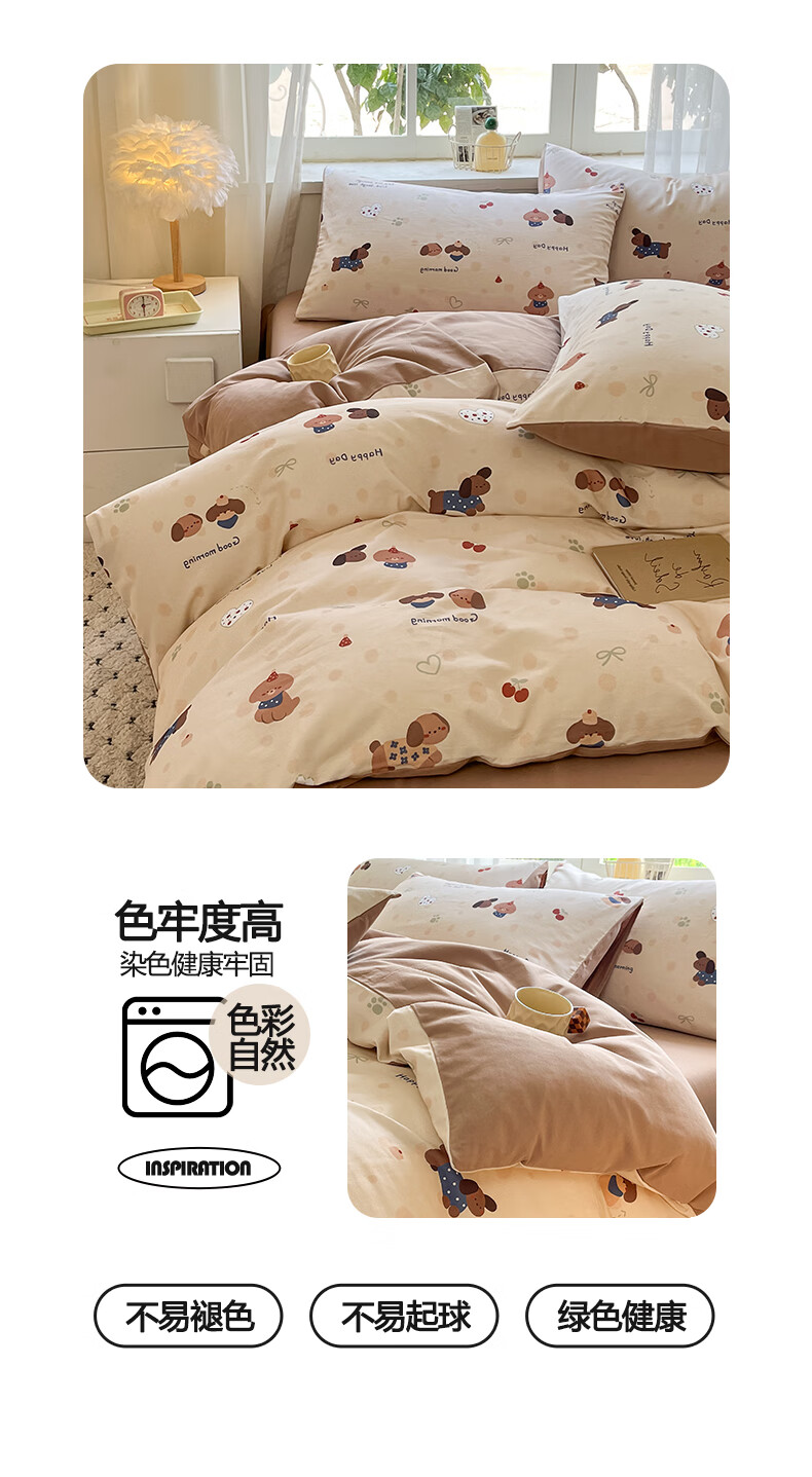 浪莎(LangSha)a类加厚磨毛100%全棉四件套卡通风床单被套枕套大学生宿舍三件套 暗香-粉【100%全棉】 单被套 120cm*150cm
