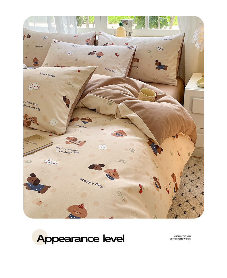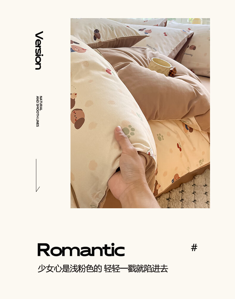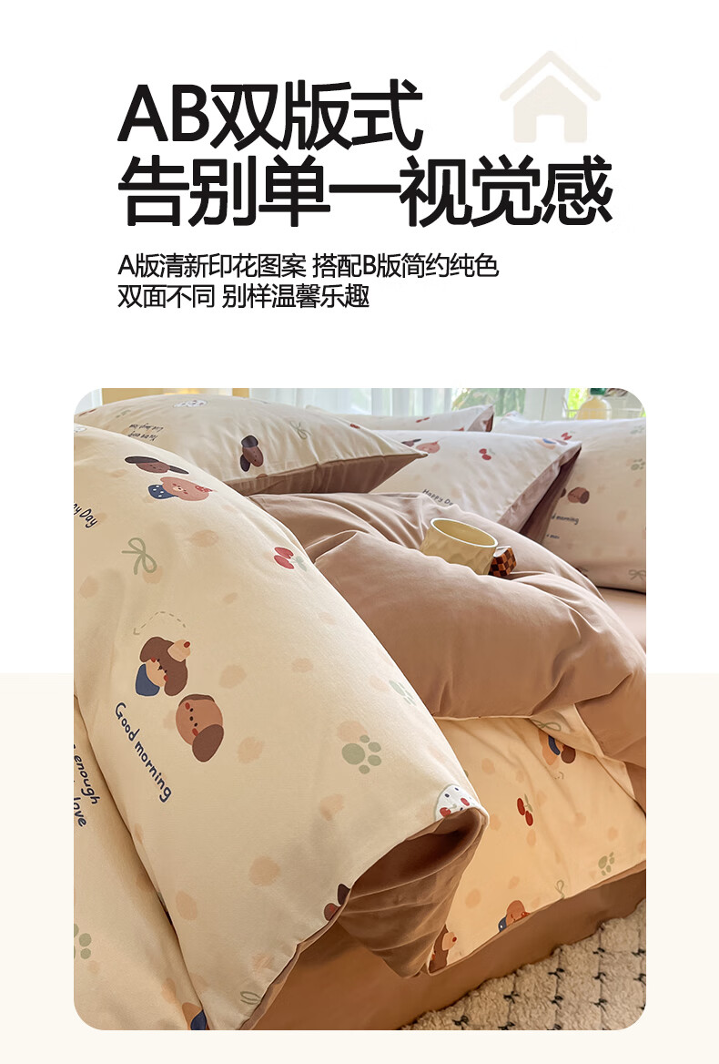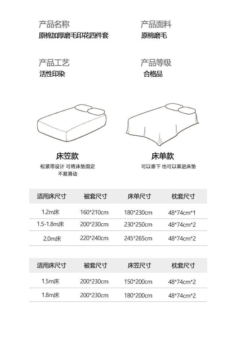 猫人(MiiOW)全棉磨毛牛奶绒床上四件套家用纯棉加厚保暖床单被套罩三件套床品 仲夏【A版纯棉磨毛/B版牛奶绒】 2.0m 床单款 四件套-220*240cm被套