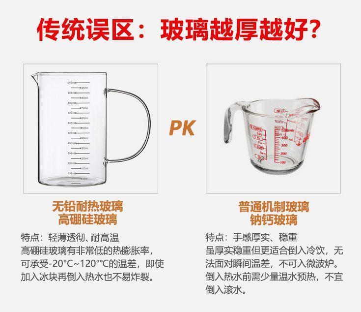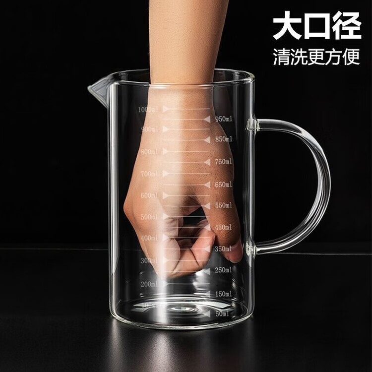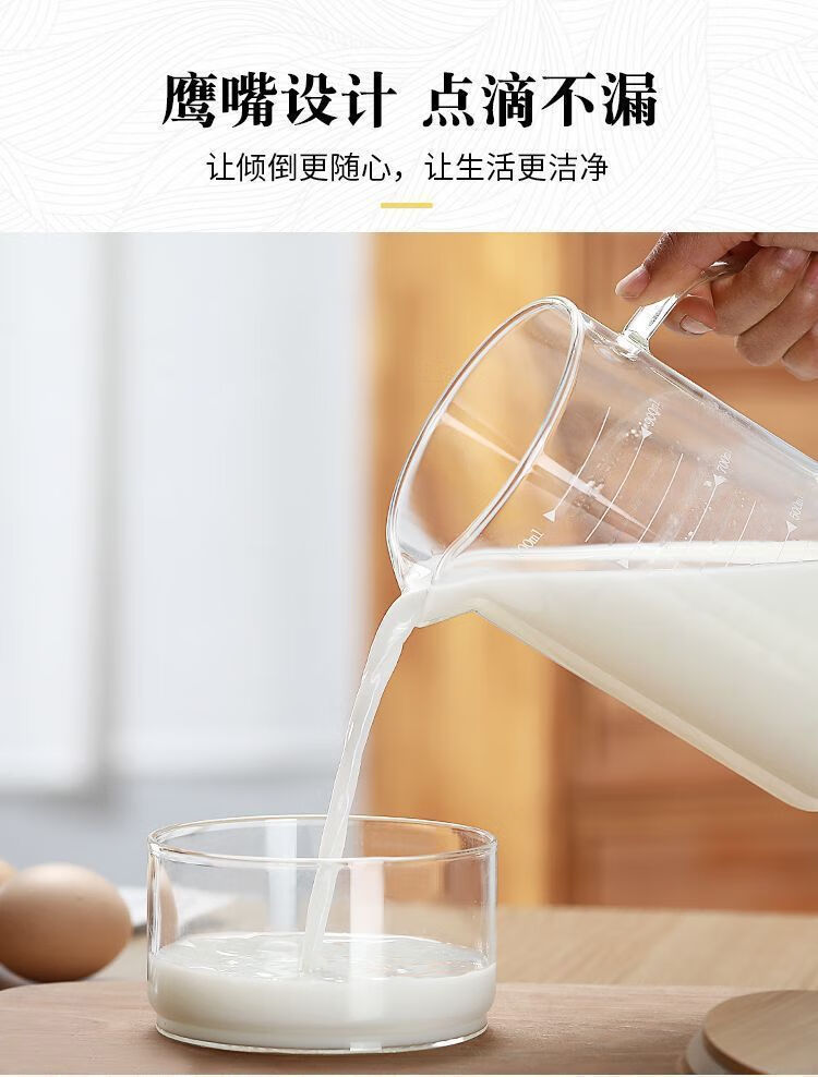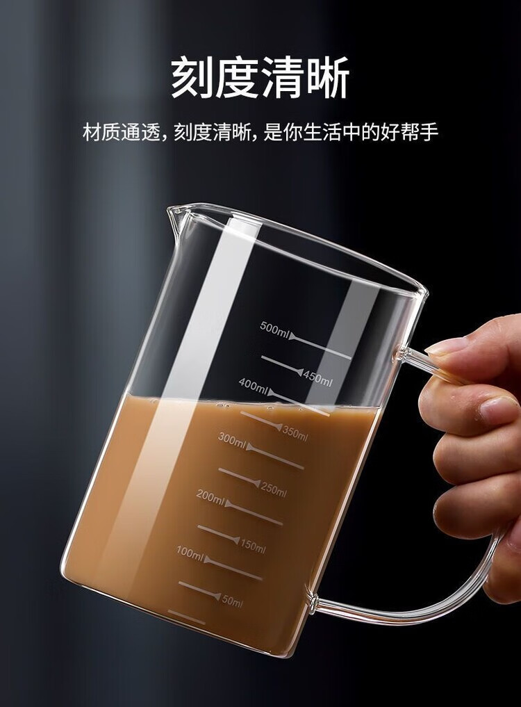 简漾玻璃量杯带刻度杯子微波炉家用厨房烘焙计量杯带盖带把加厚耐高温 中号-500ML