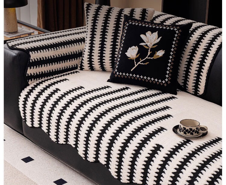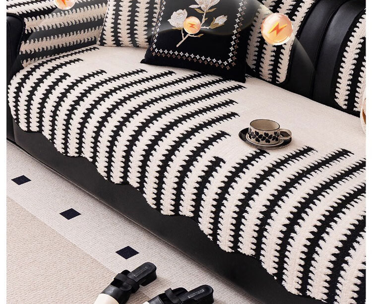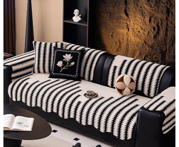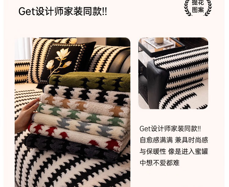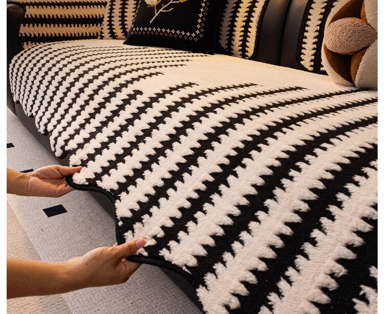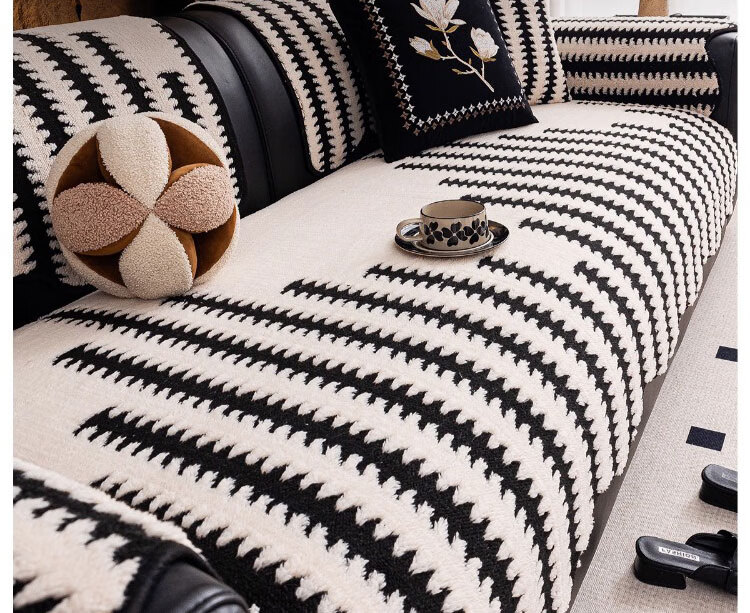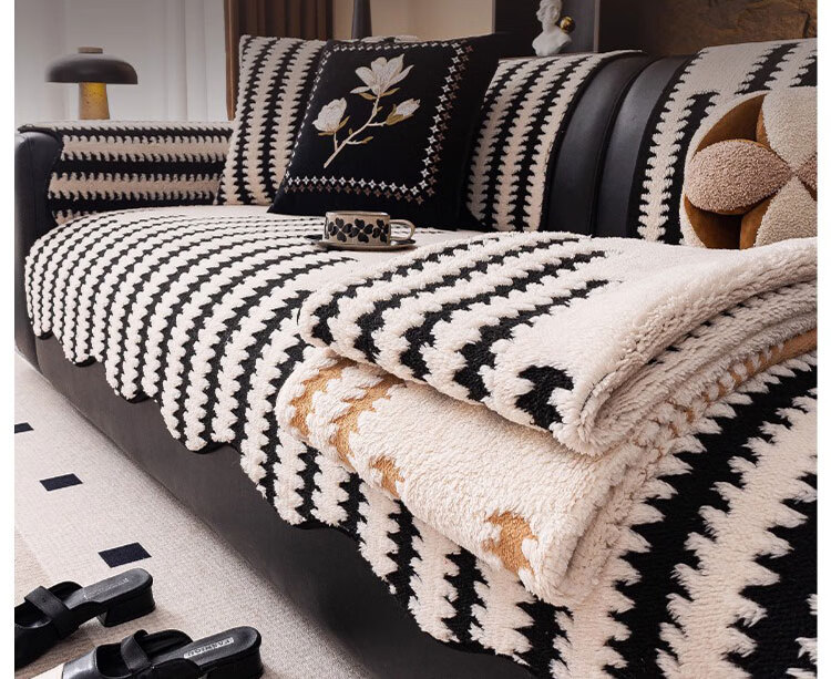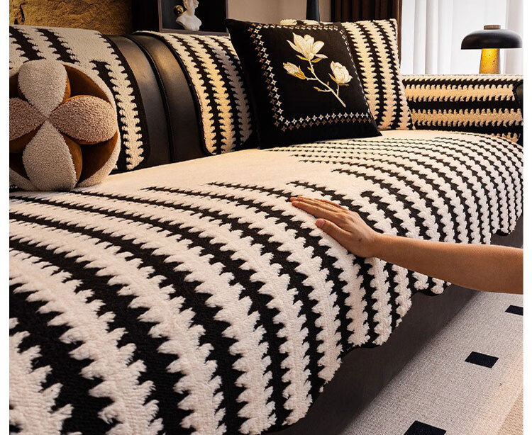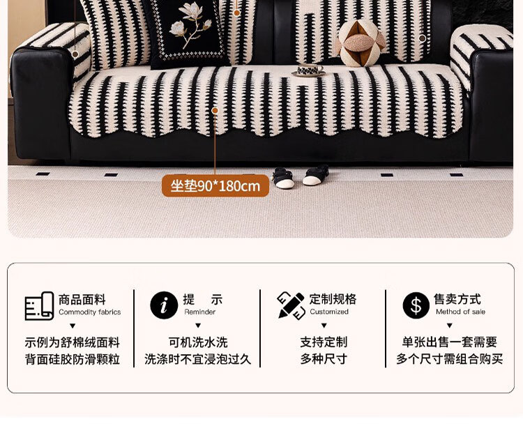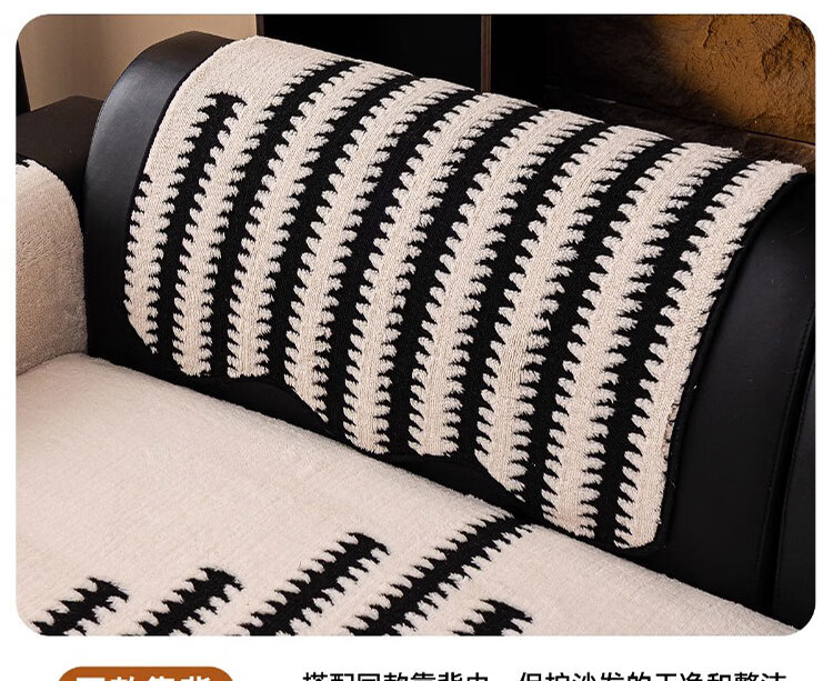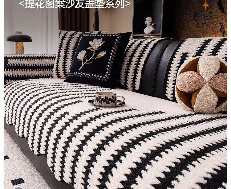金拾美月秋冬沙发全包套加厚毛绒坐垫防猫抓弹力保护套通用型坐垫盖布巾 满杉-黑色 全包五人/适用305-360cm(送抱枕套)建议拍大一码