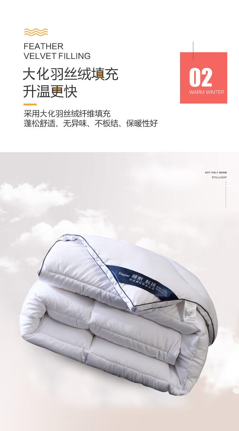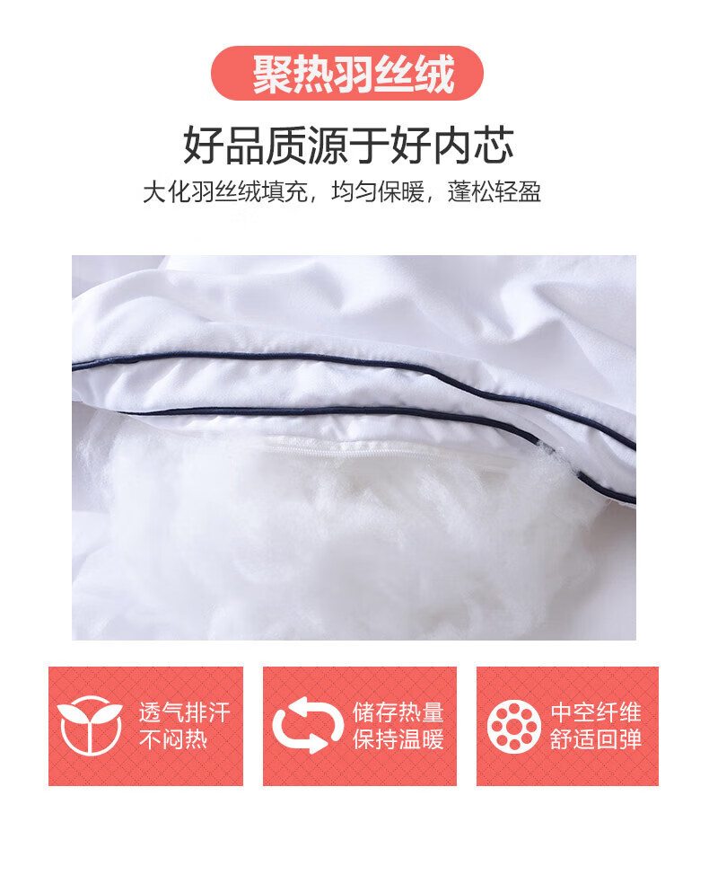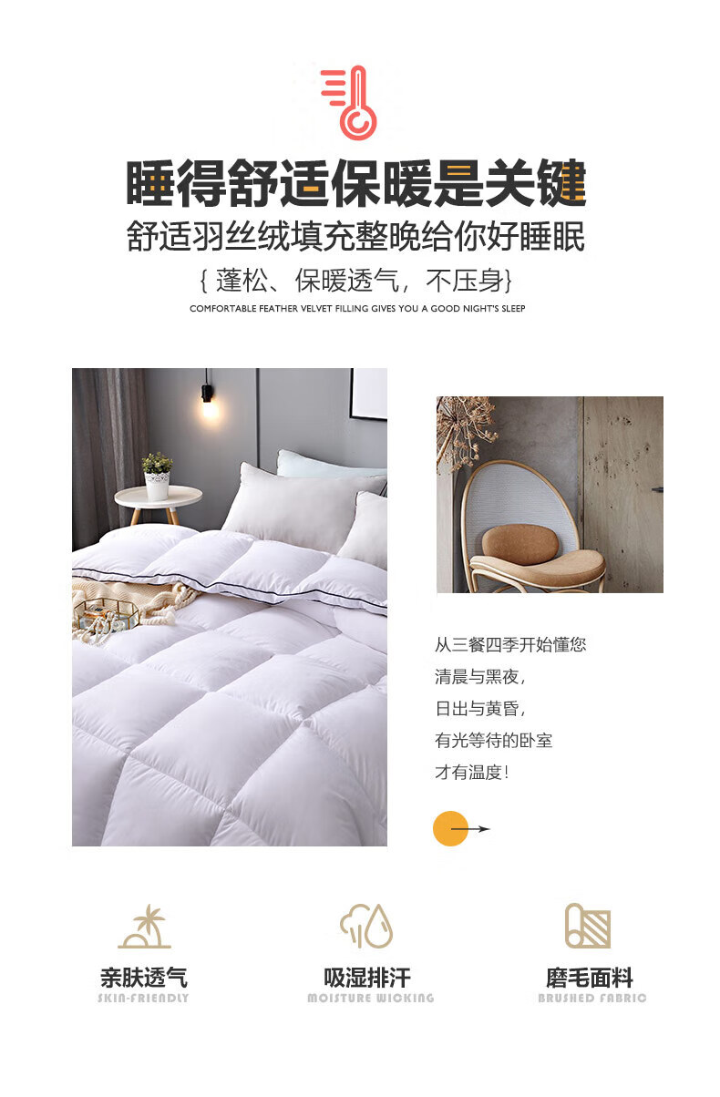 恒源祥正品进口羽丝绒被白鹅丝绒冬被静音加厚保暖单人6斤春秋子母被芯 白色 150x200cm4.【6斤春秋被】