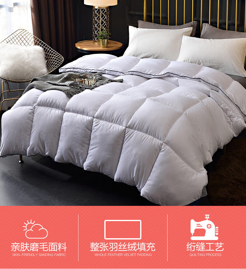 恒源祥羽丝绒被白鹅丝绒冬被子单人春秋冬天棉被芯酒店鸭绒冬季加厚保暖 白色 150*200【5斤春秋被】