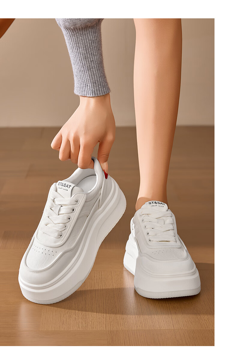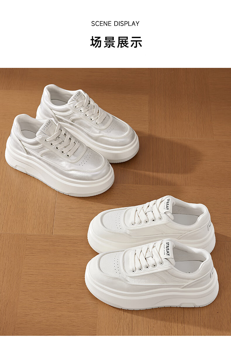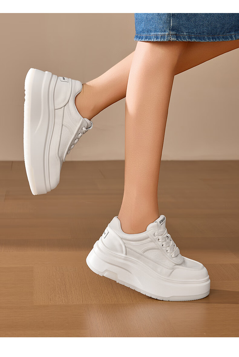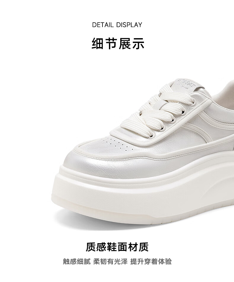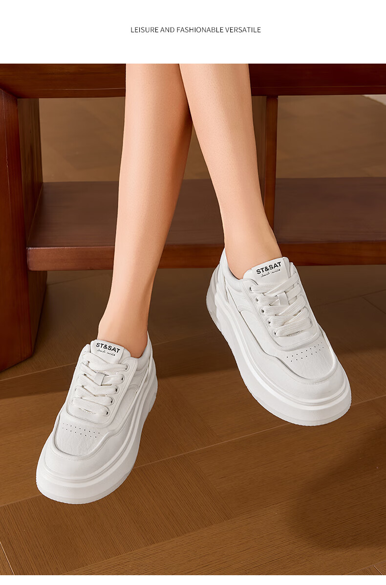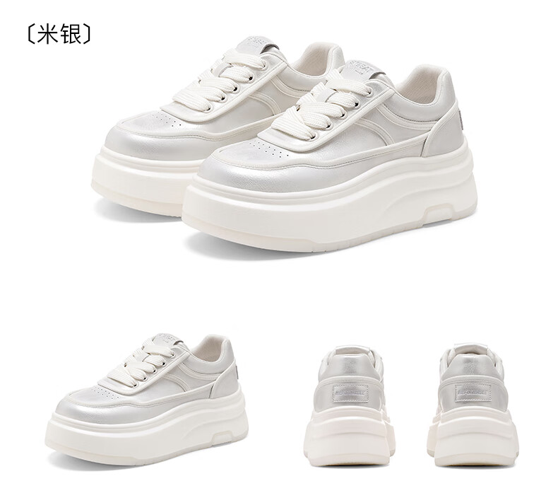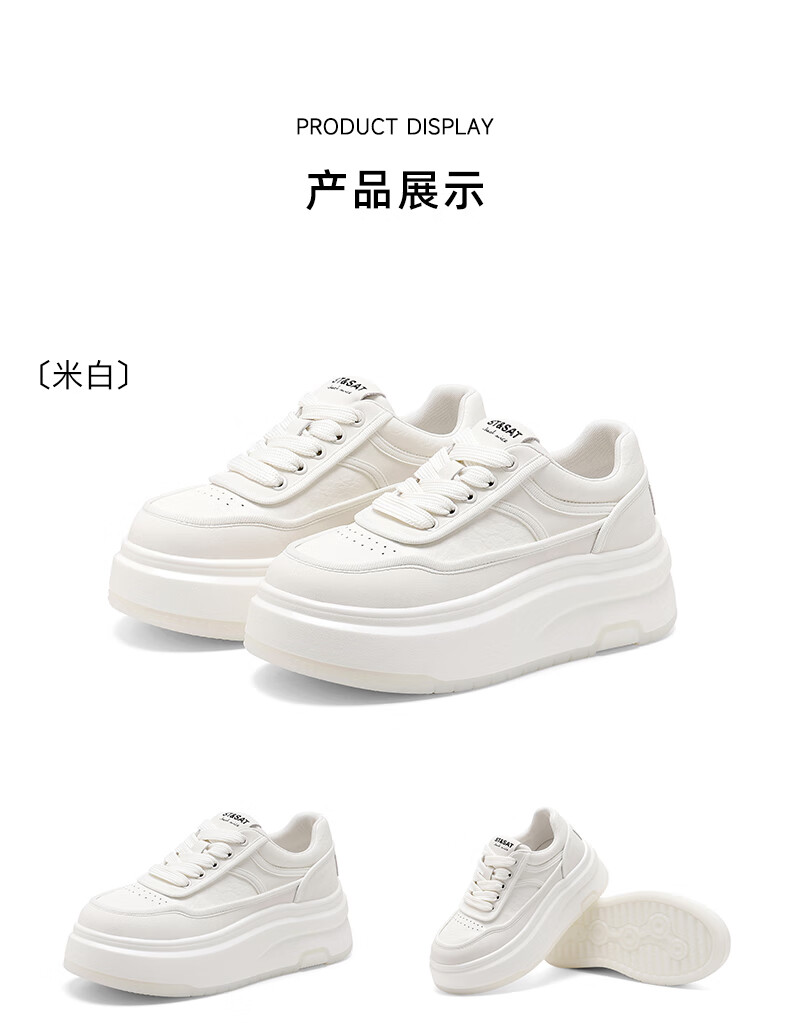 星期六厚底小白鞋女款2025新款秋季轻便百搭运动休闲板鞋增高女鞋 米白色 35