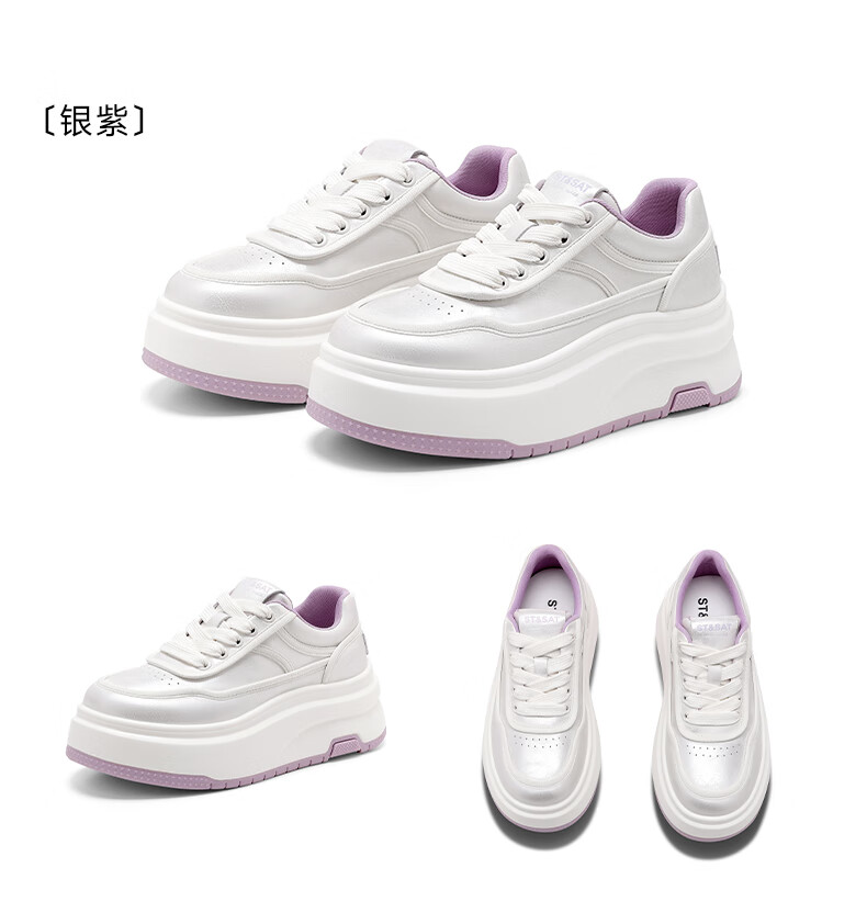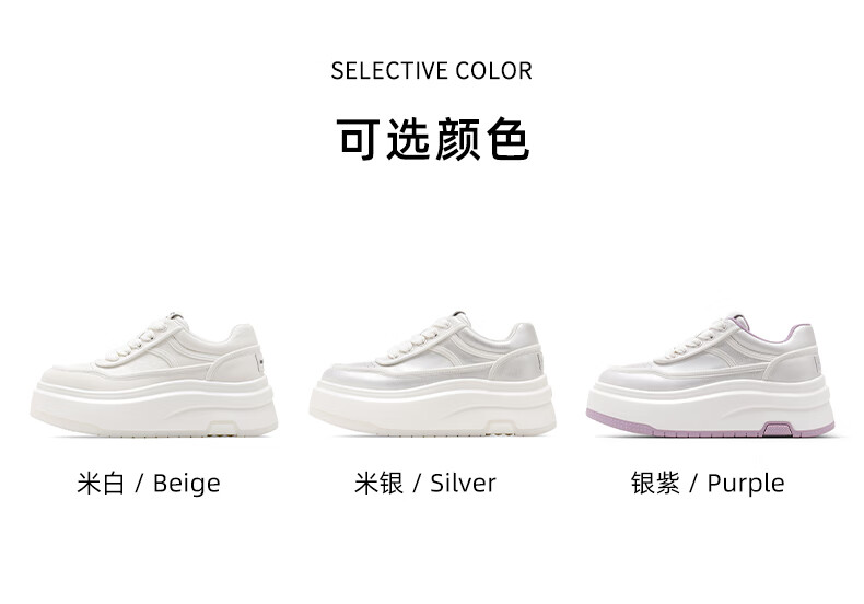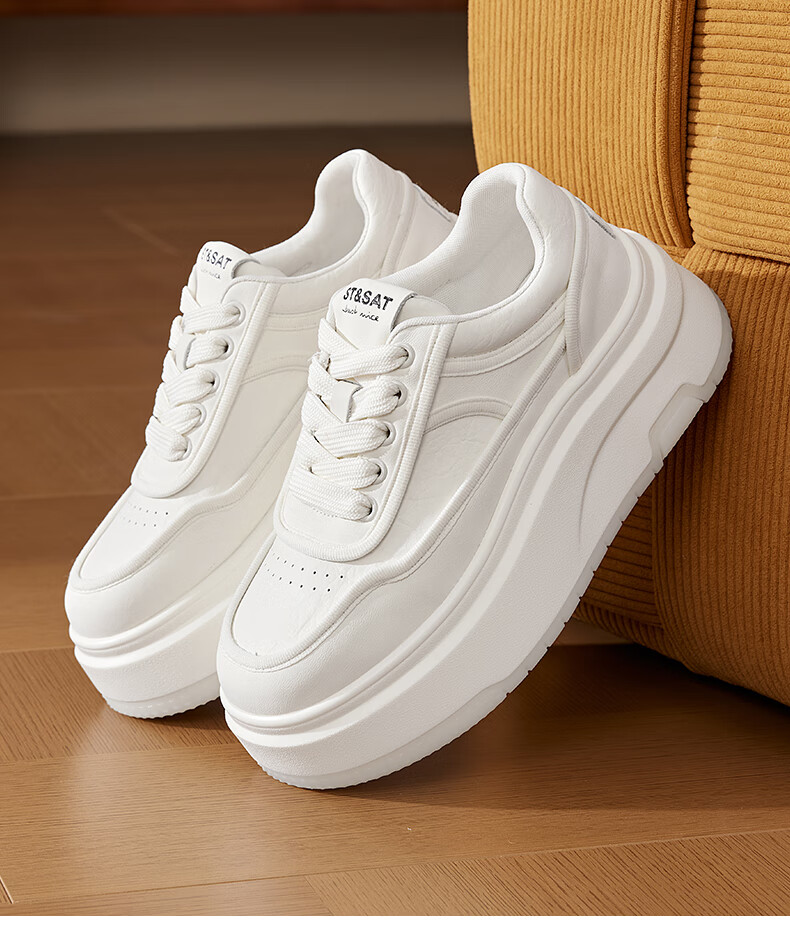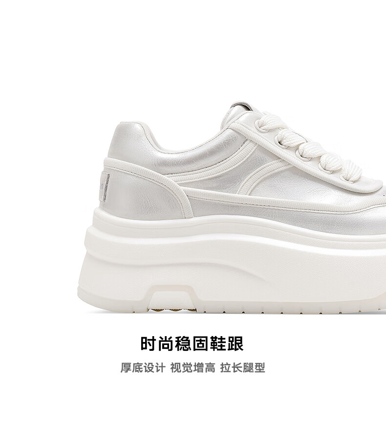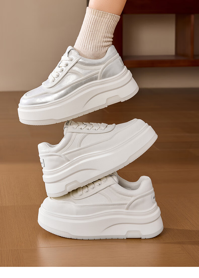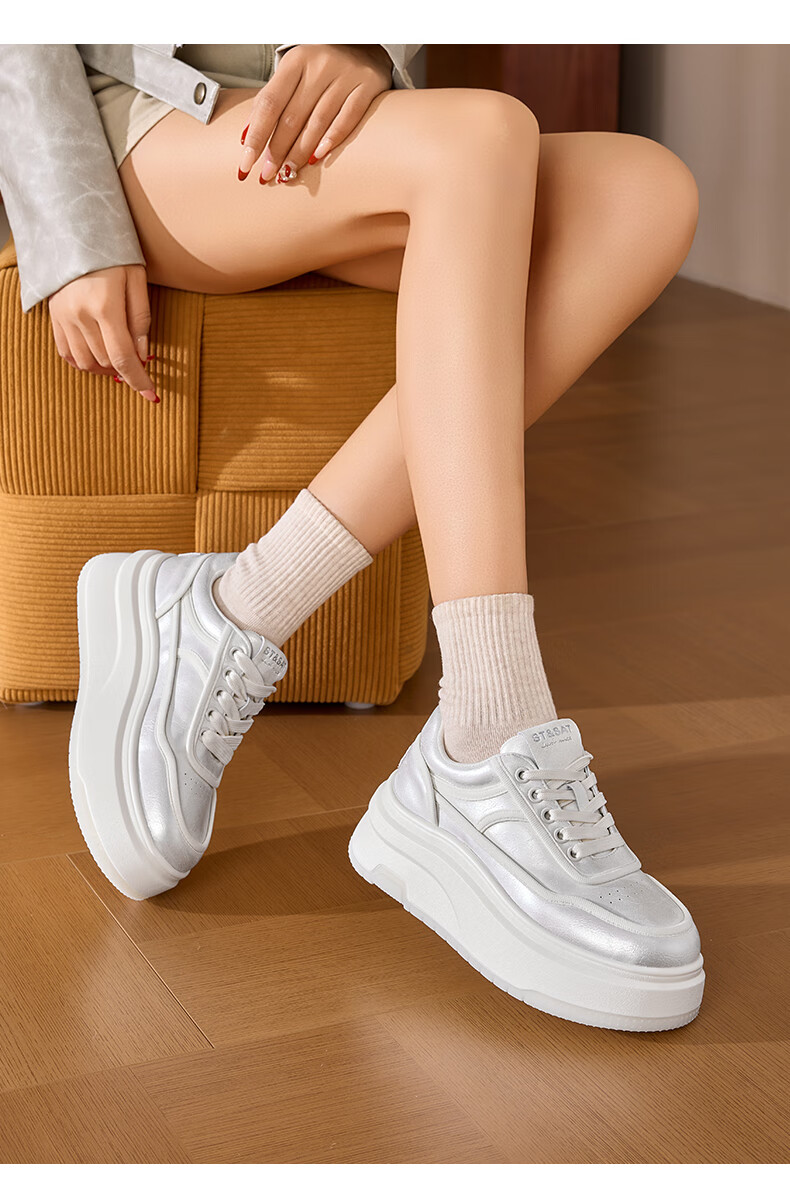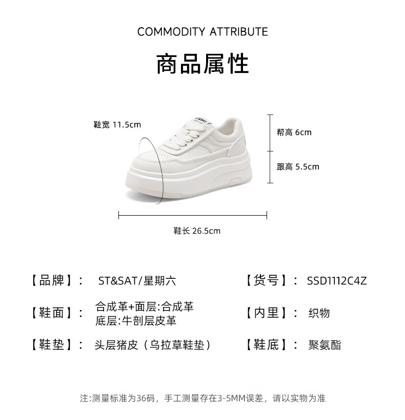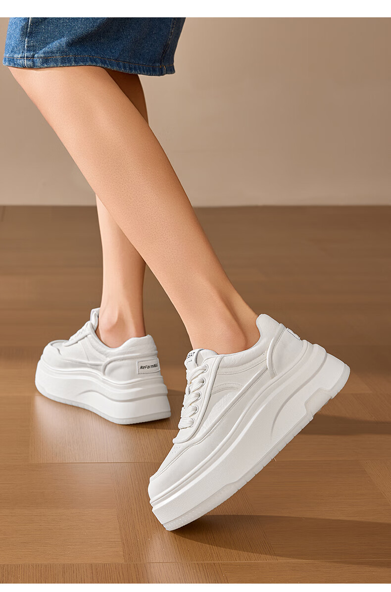 星期六厚底小白鞋女款2025新款秋季轻便百搭运动休闲板鞋增高女鞋 米白色 35