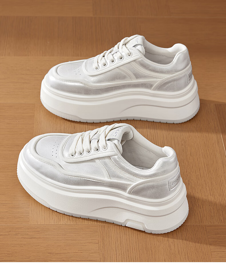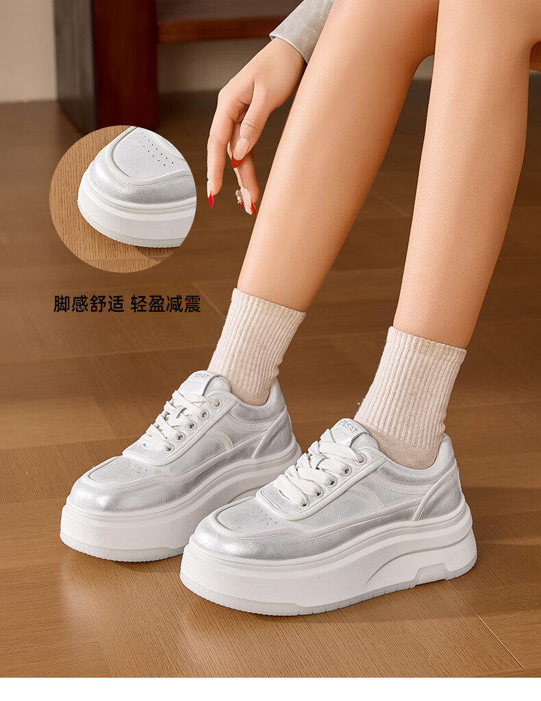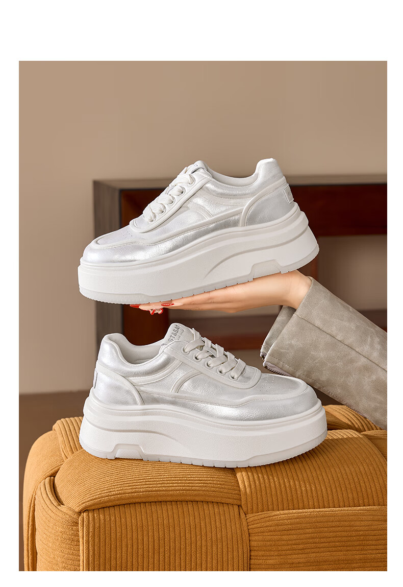 星期六百搭时尚厚底增高老爹鞋女2025秋季轻便舒适透气运动女鞋 银色 35