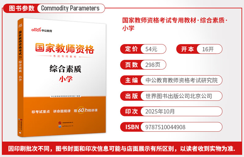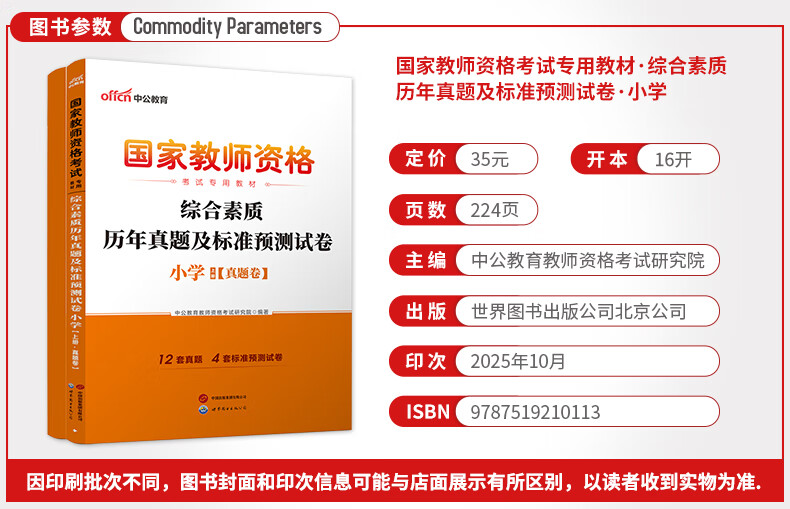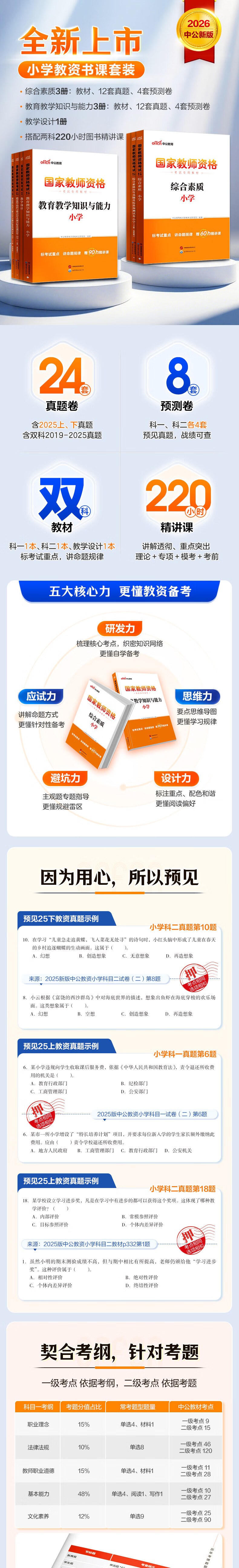 中公教育教资考试资料2026上半年小学教师资格证考试教材真题用书:教材+历年真题试卷及预测语文数学英语音乐体育美术适用 综合素质教育教学知识与能力小学教资考试资料2025 热销 小学教资【语数英】(教