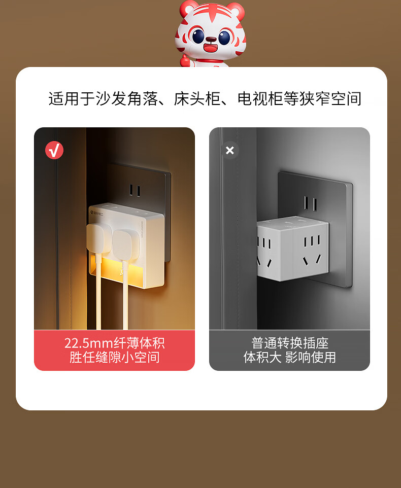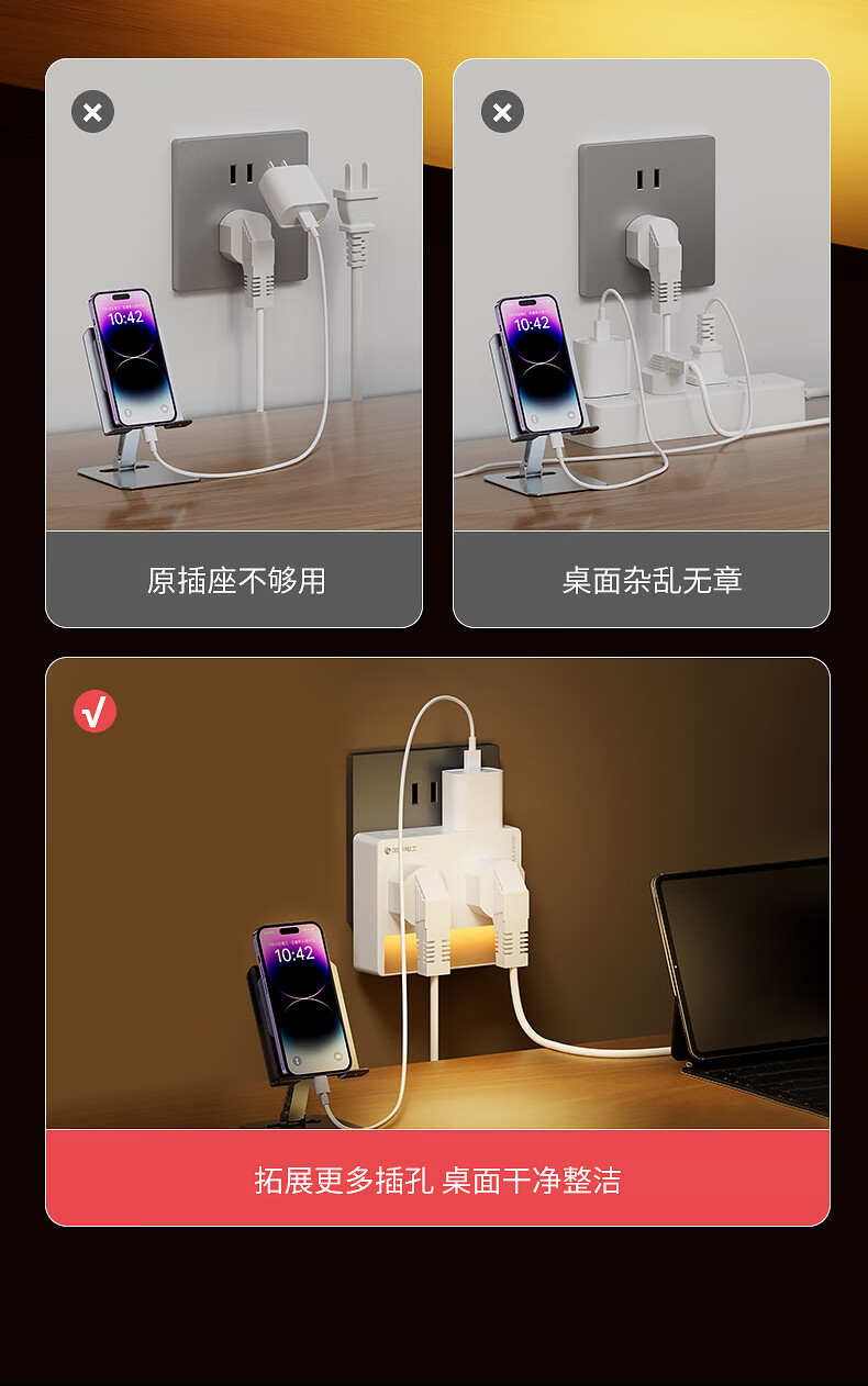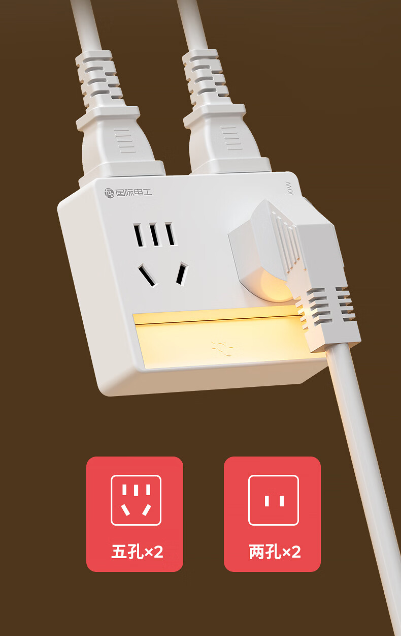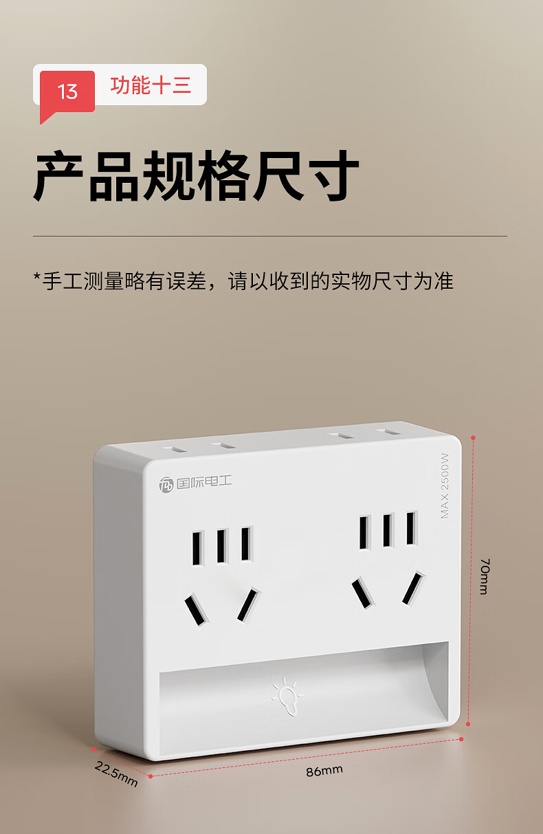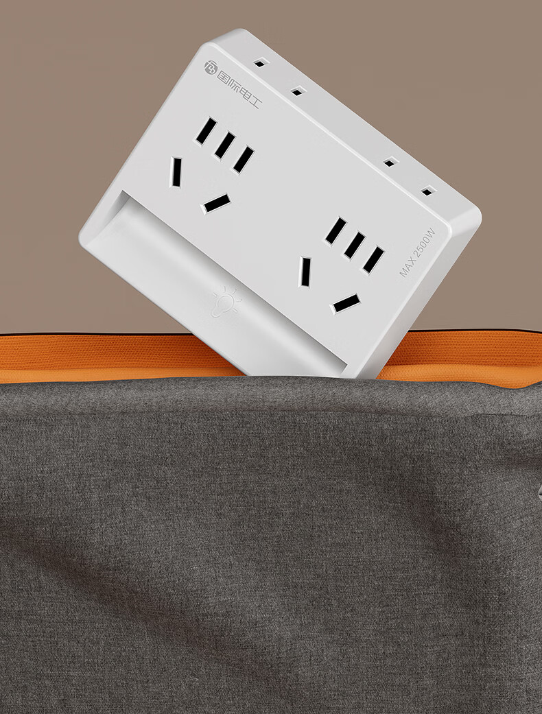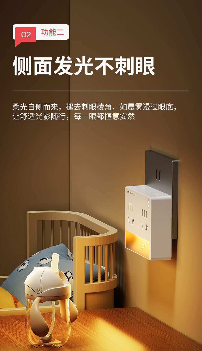 国际电工全光谱小夜灯转换插座免布线家用多功能无线扩展器触摸感应灯插座 一转四向上感应灯【白色】