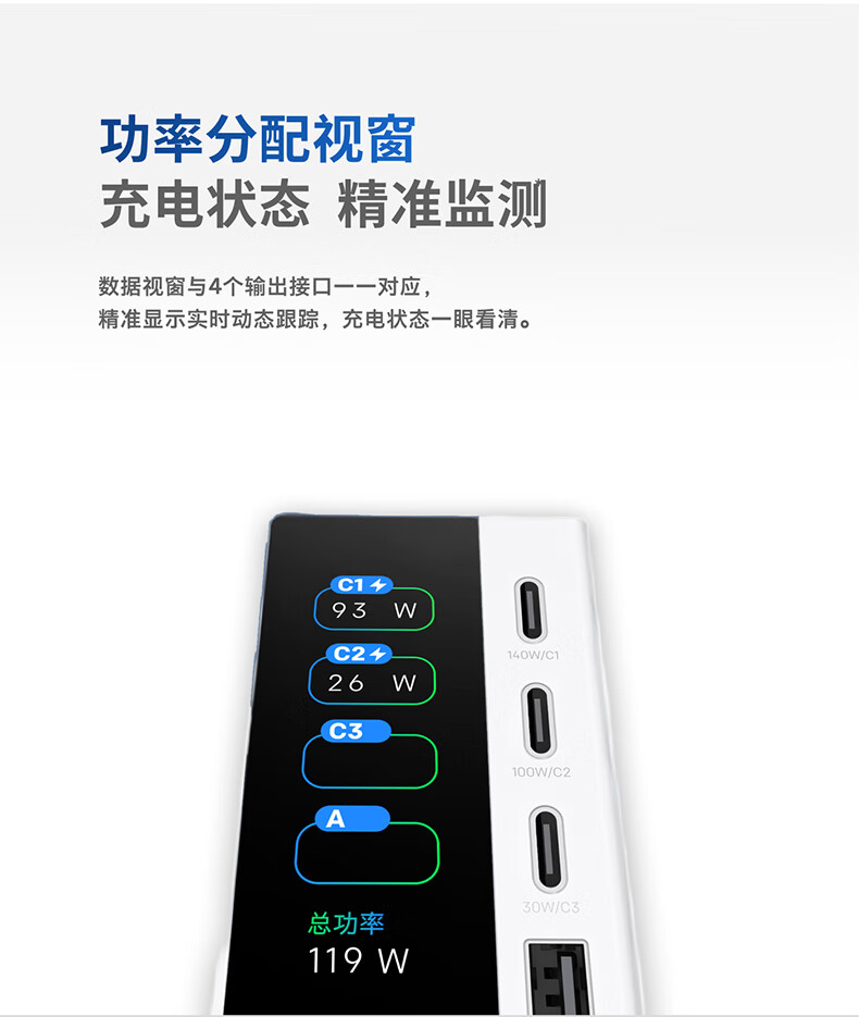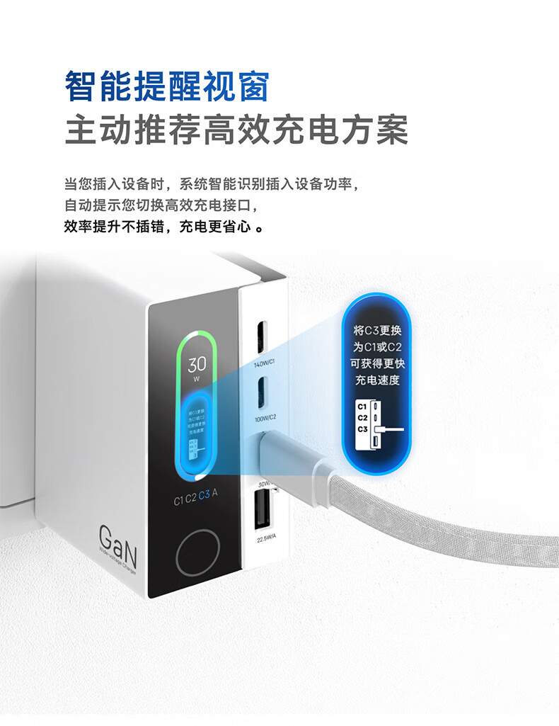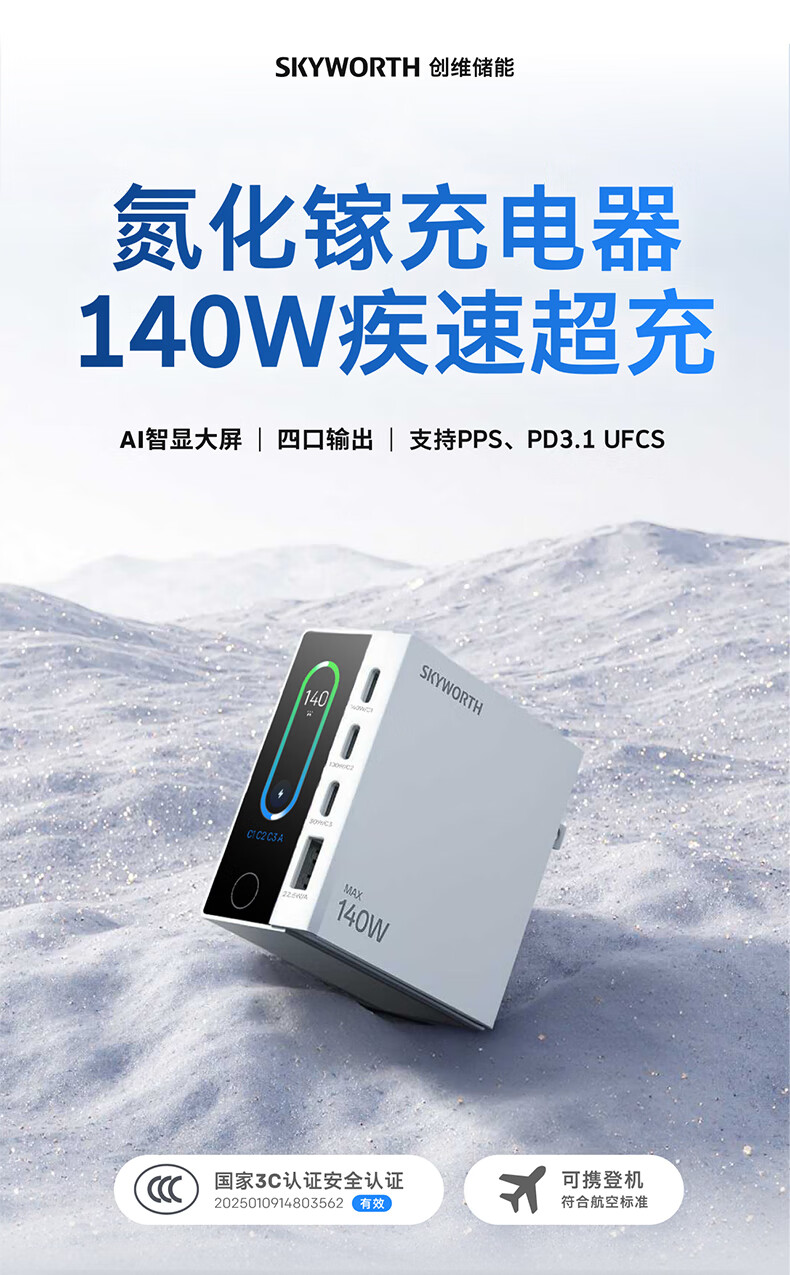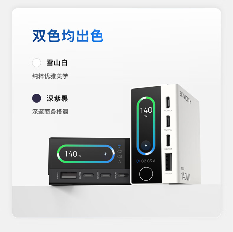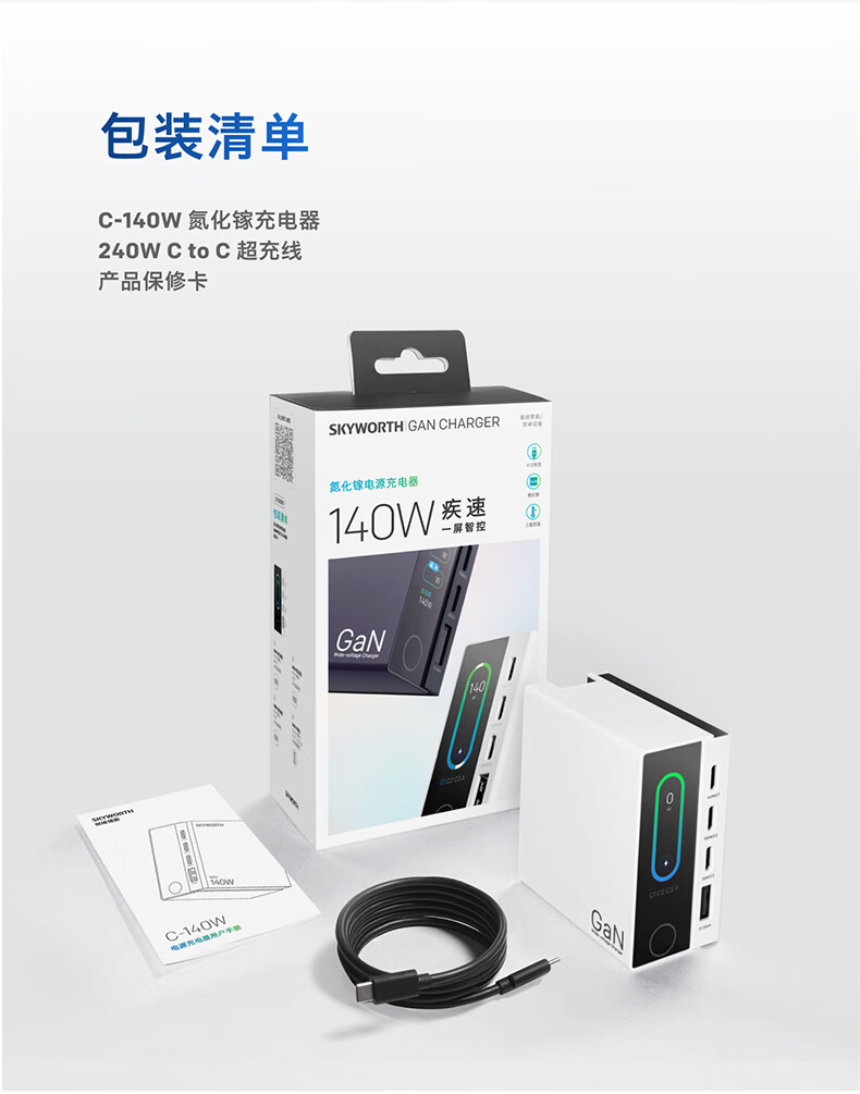 创维智显充140W大功率充电器氮化镓四口快充头适用笔记本电脑华为苹果C-140W雪山白