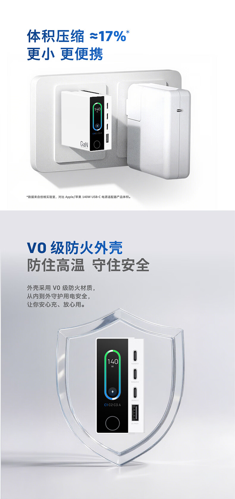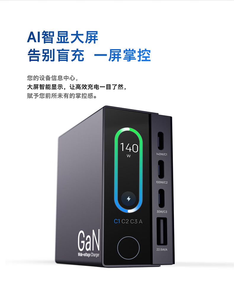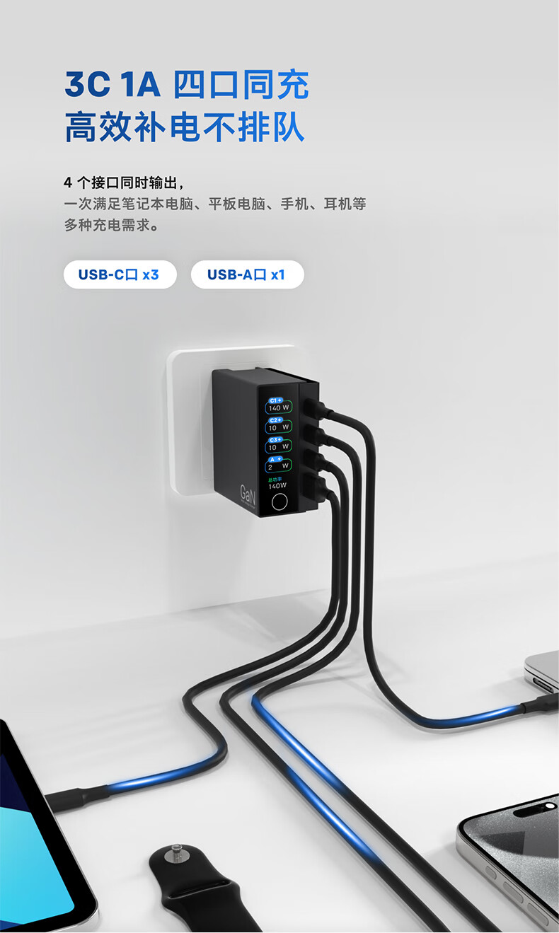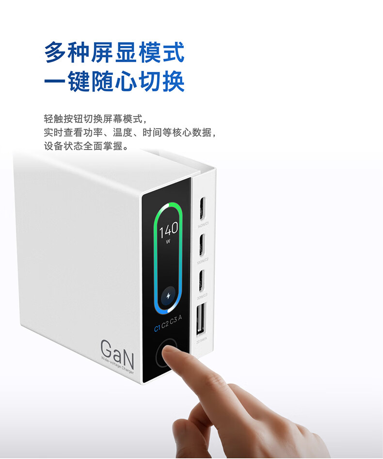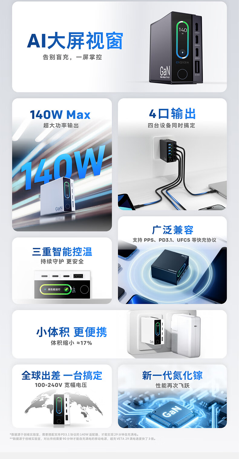 创维智显充140W大功率充电器氮化镓四口快充头适用笔记本电脑华为苹果C-140W雪山白