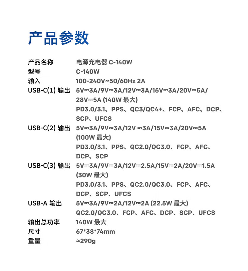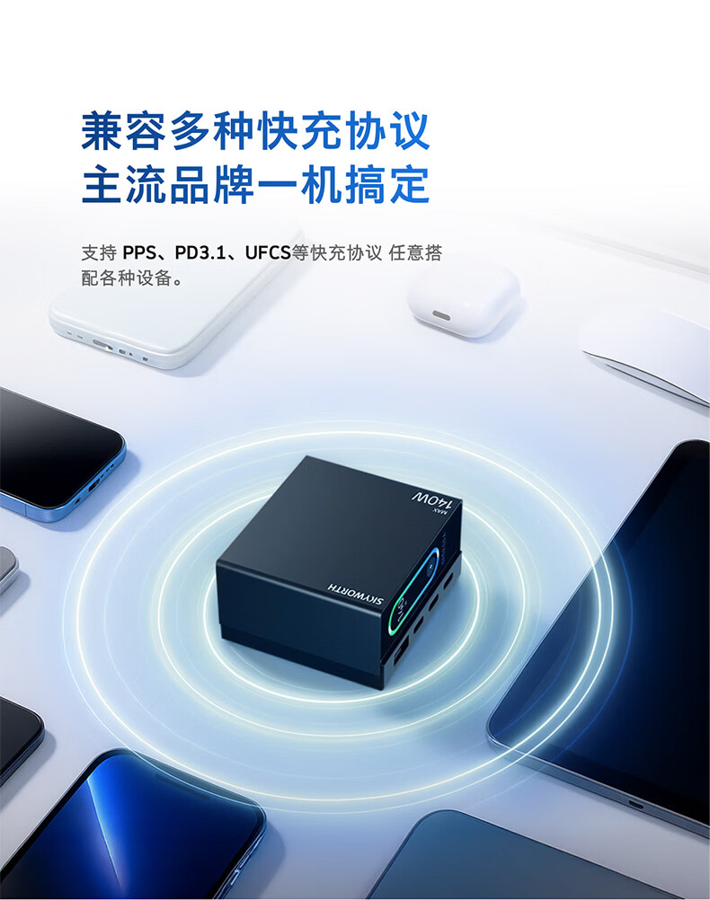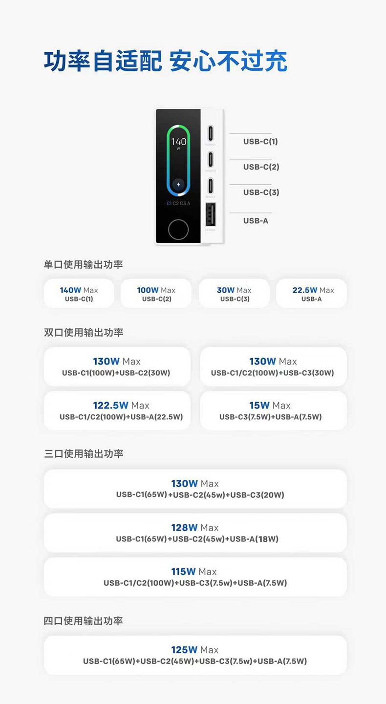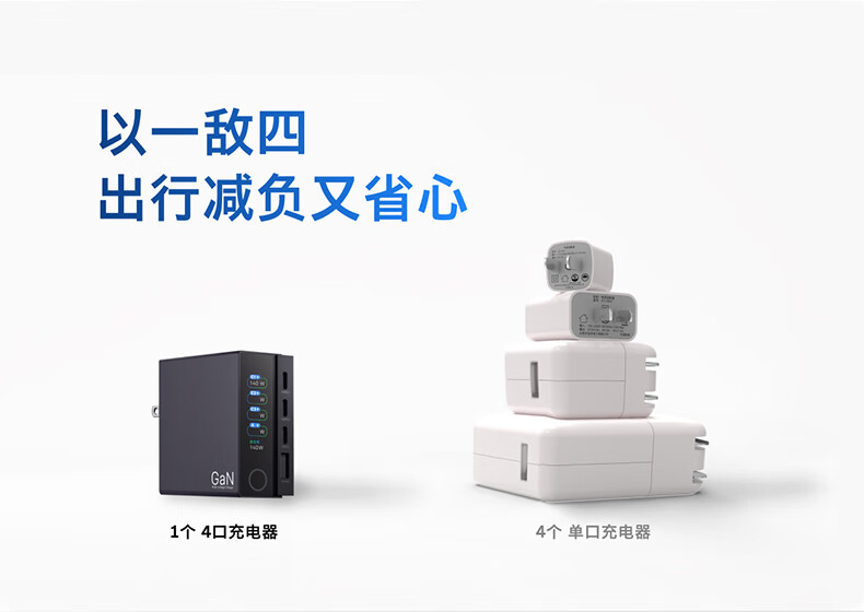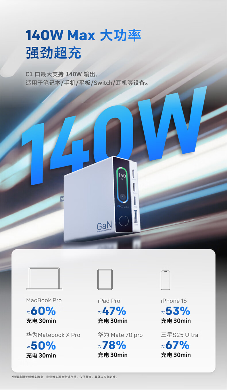 创维智显充140W大功率充电器氮化镓四口快充头适用笔记本电脑华为苹果C-140W雪山白