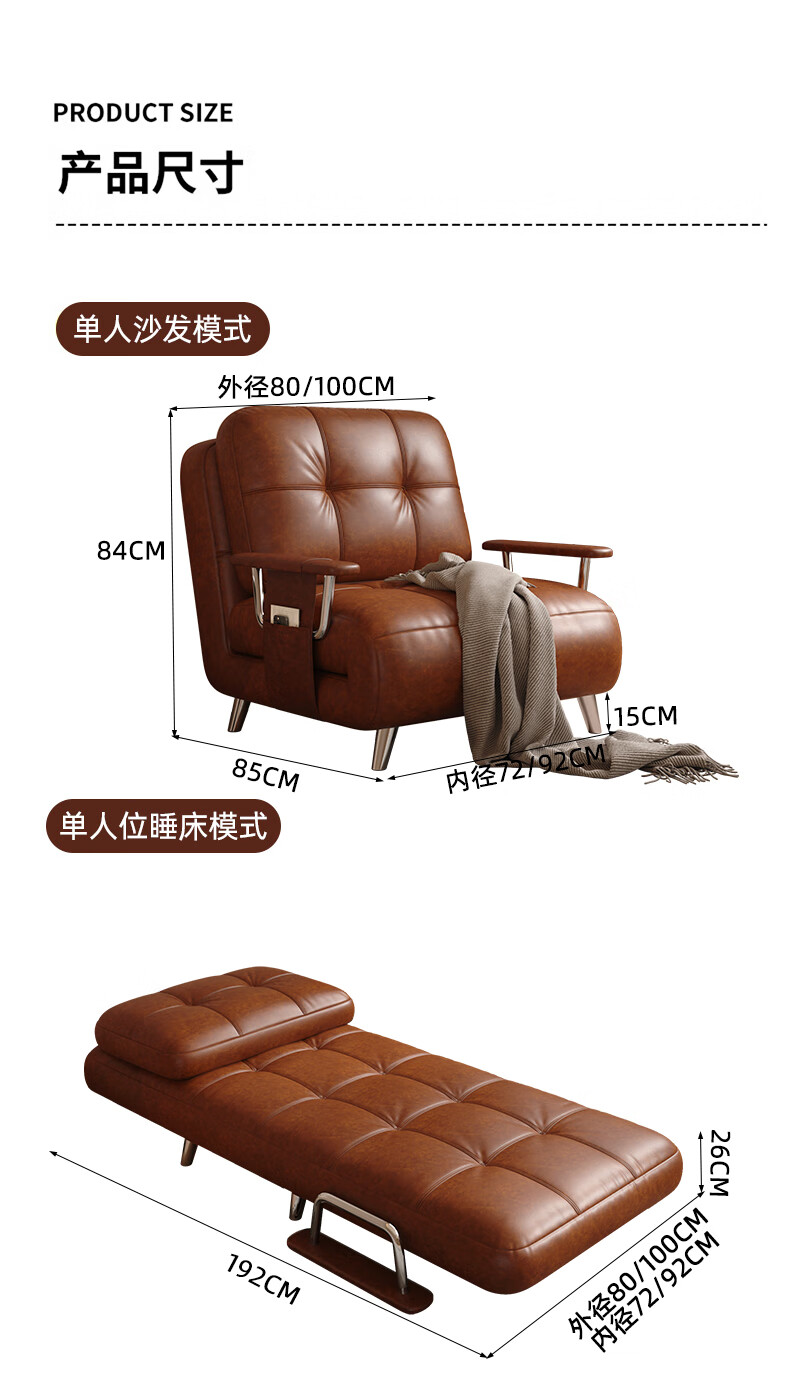葵竹冉韵折叠沙发床单双人小户型沙发床两用可折叠2025新款沙发床一体两用 【甄选白色丨护脊椰棕】0.8m沙发床