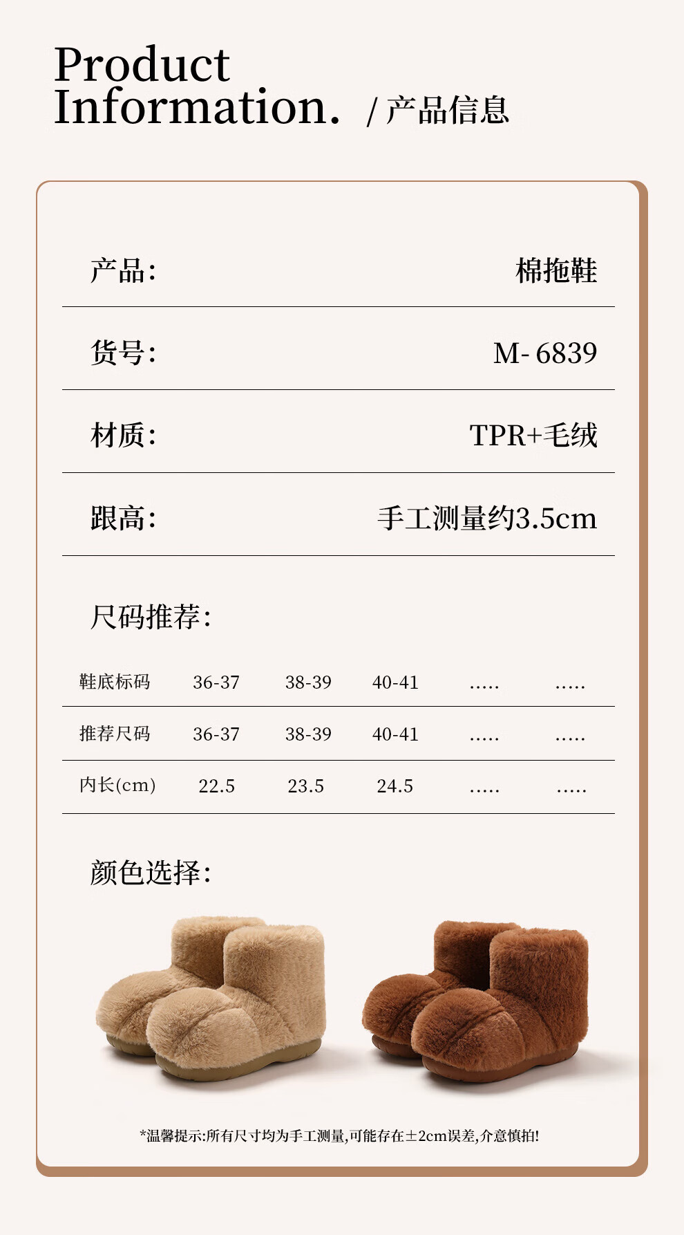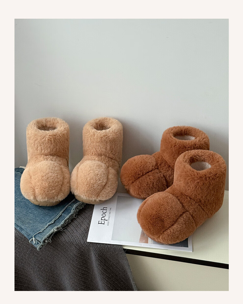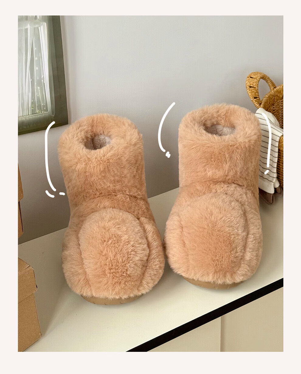 FZT厚底雪地靴女款2025秋冬新款保暖加绒加厚防滑室内外穿毛毛绒棉鞋 浅咖 36-37 标准码【225mm】