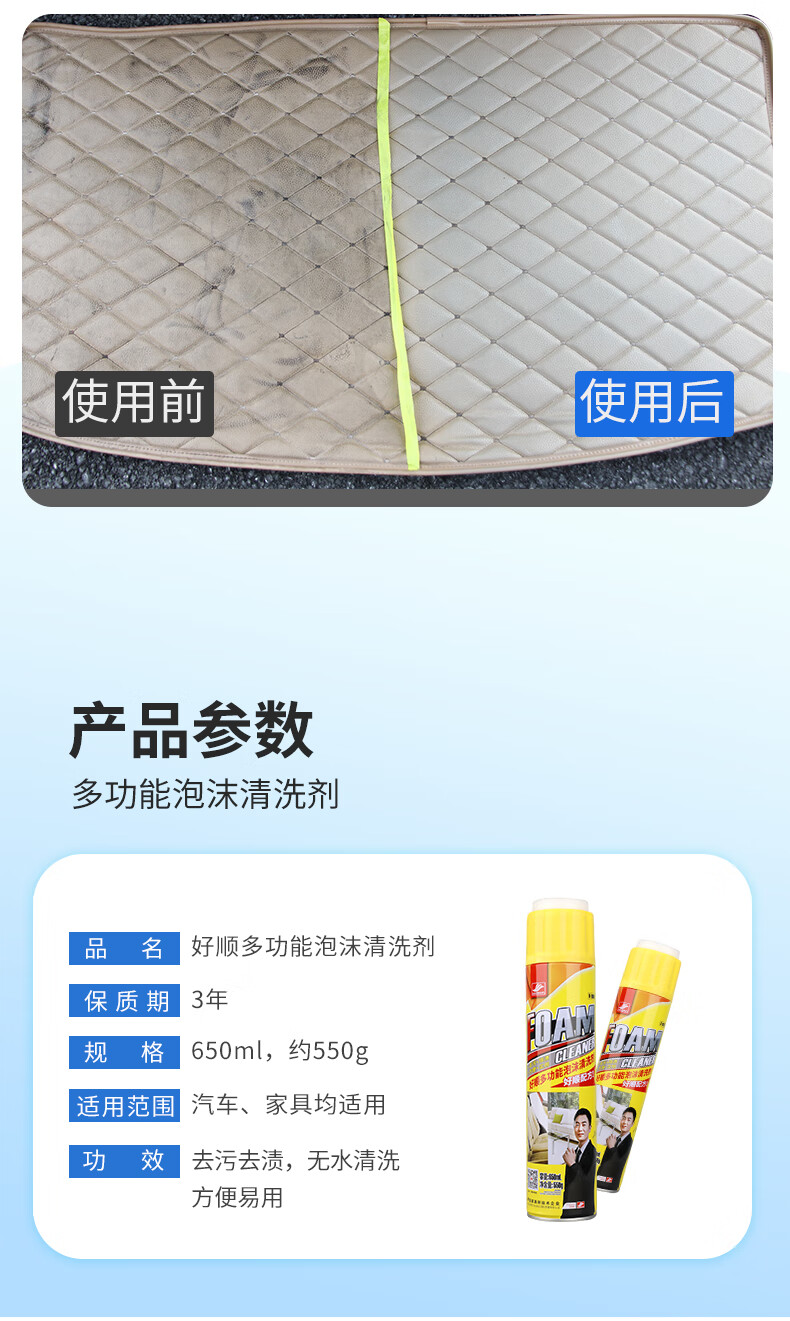 好顺多功能泡沫清洁剂 /汽车仪表台内饰皮革家具玻璃护理车居两用