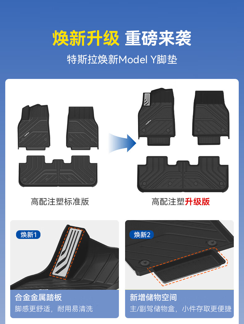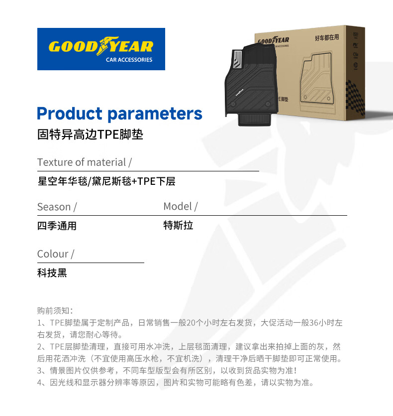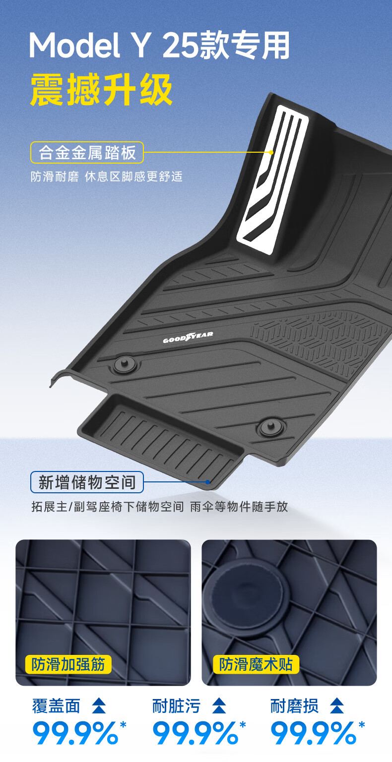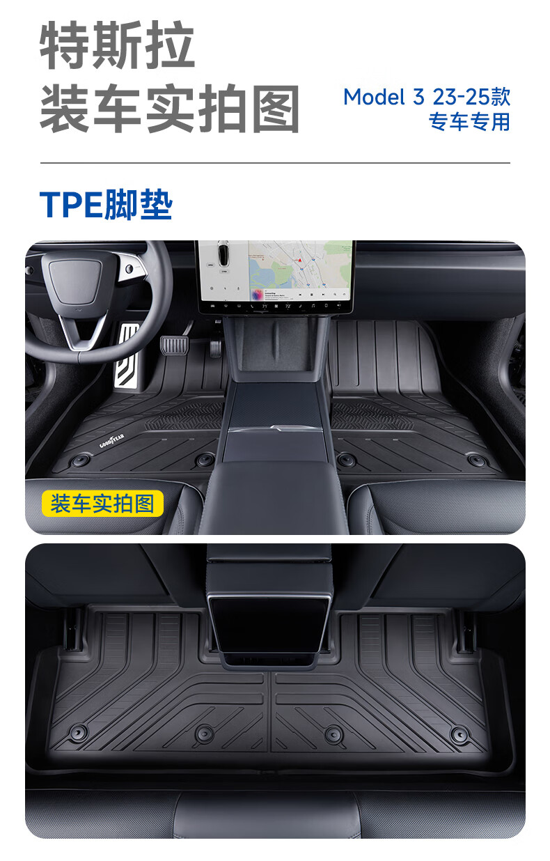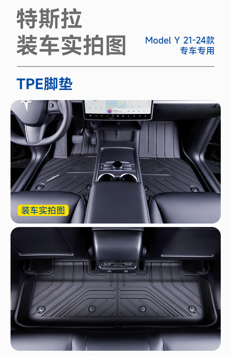 固特异(Goodyear)tpe汽车脚垫适用于特斯拉焕新ModelY换新配件TPE脚垫黛尼斯12件套