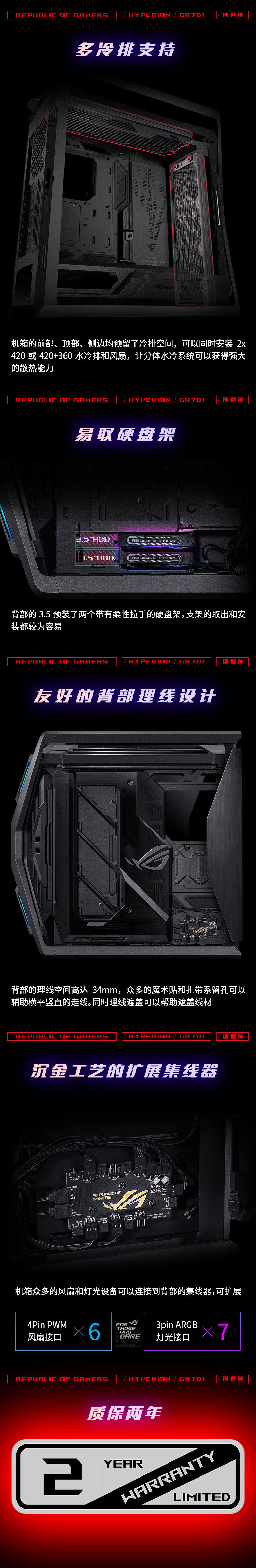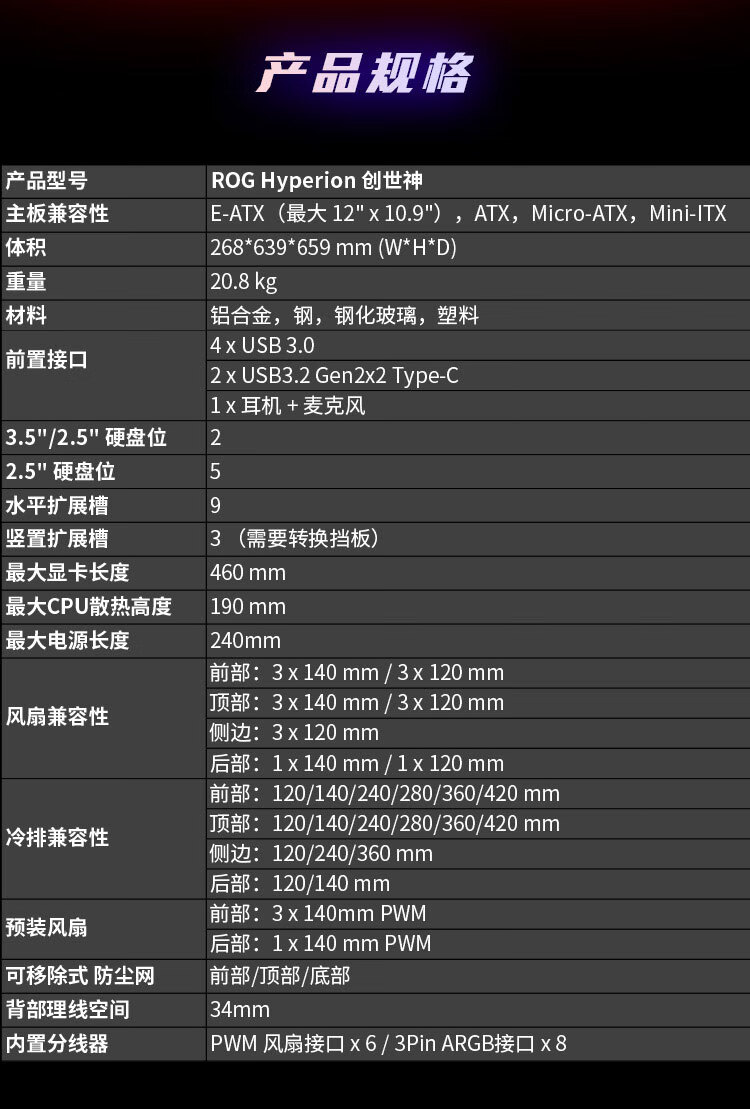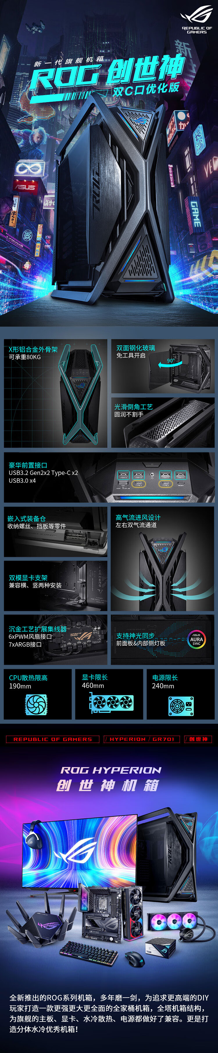 华硕ROG HYPERION GR701创世神机箱 双C口优化版 适配ROG MAXIMUS 800系列主板/支持EATX主板