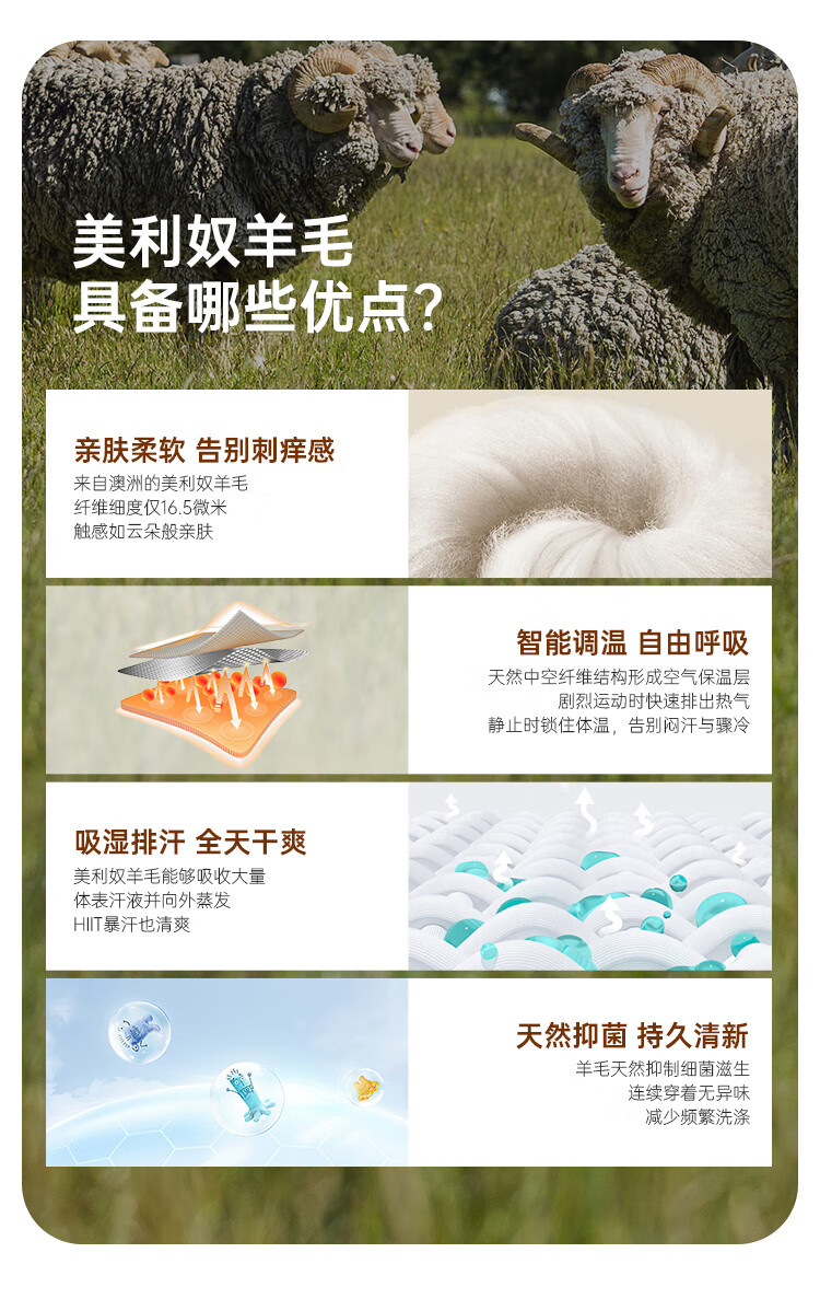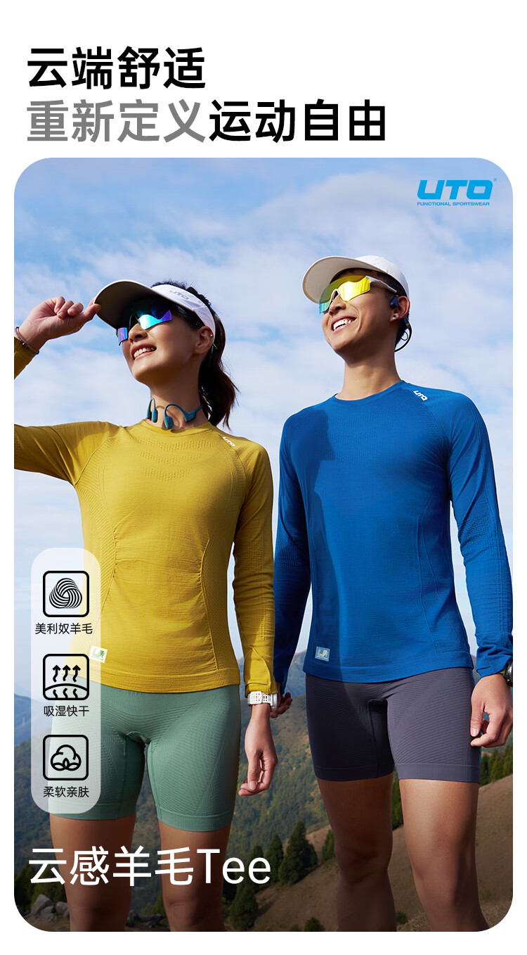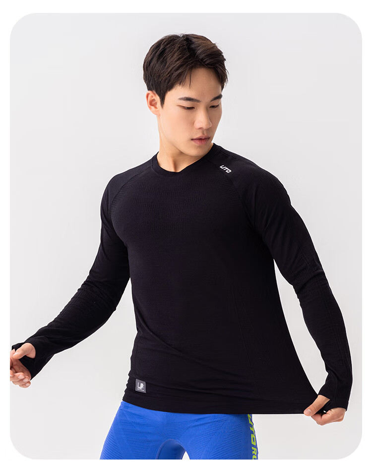 悠途(UTO)美利奴羊毛速干衣男运动长袖t恤户外跑步登山徒步 经典黑 L