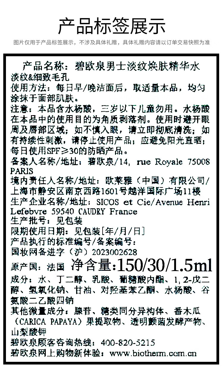 碧欧泉男士蓝钻淡纹焕肤精华水150ml保湿紧致 生日礼物圣诞节礼物送男友