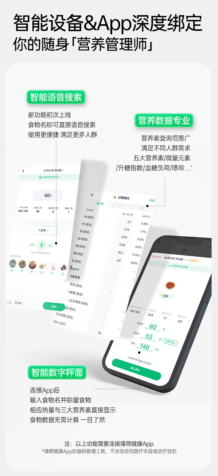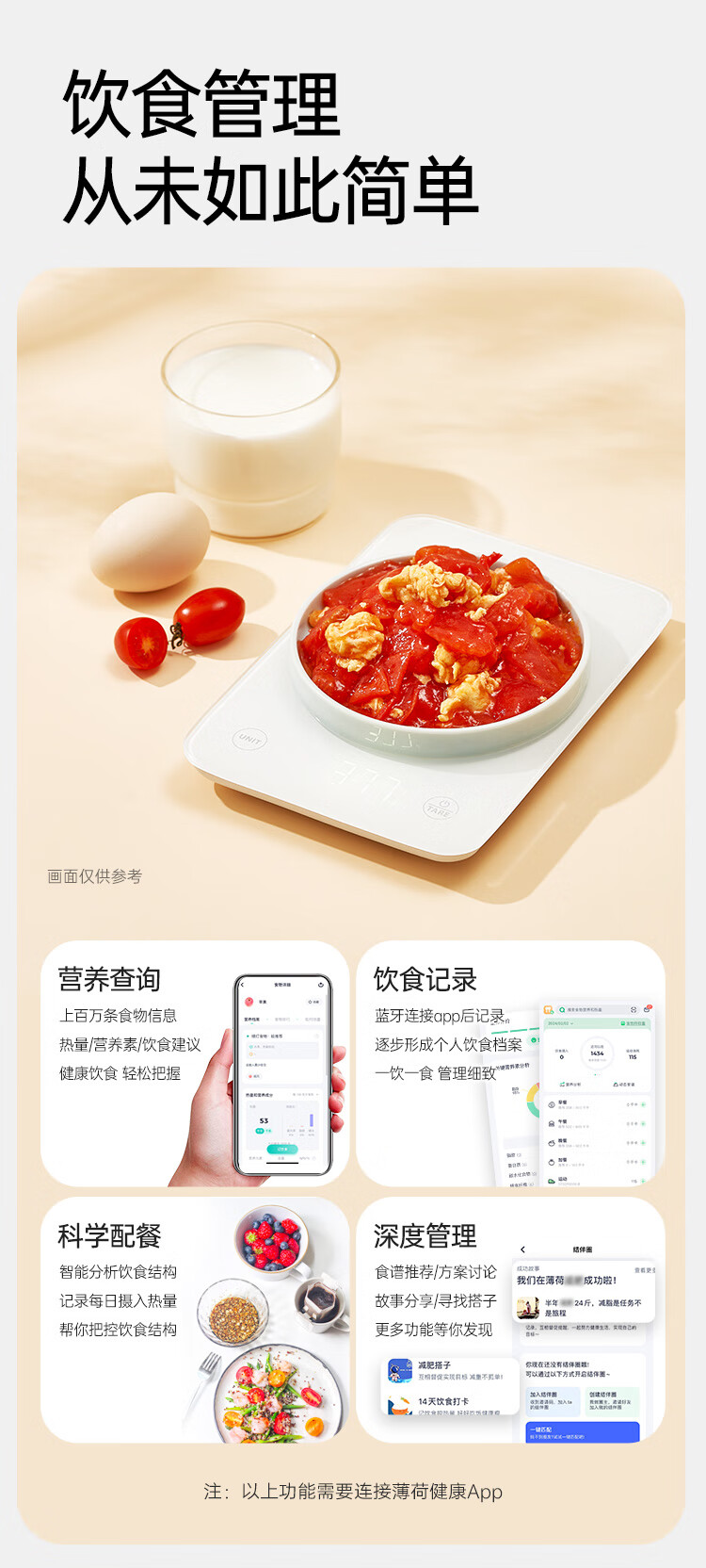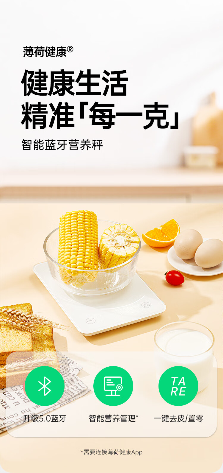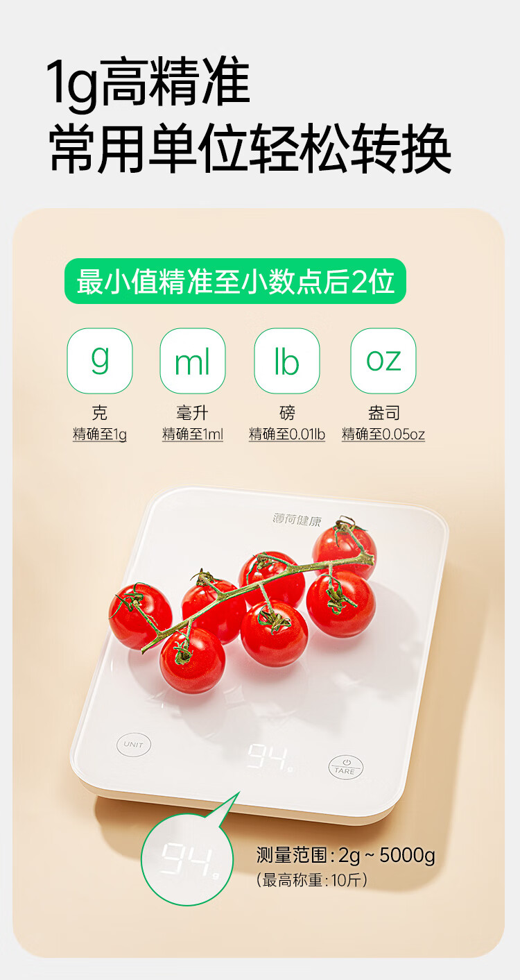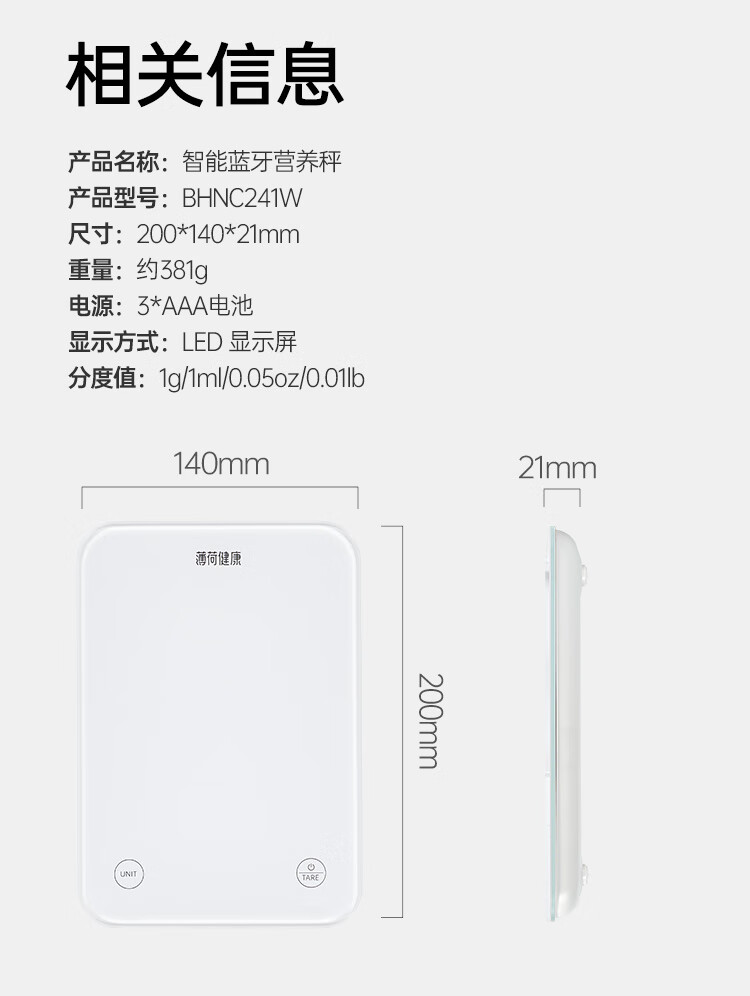 薄荷健康蓝牙营养秤食物秤克秤电子秤家用小型厨房烘焙用咖啡秤精准称重