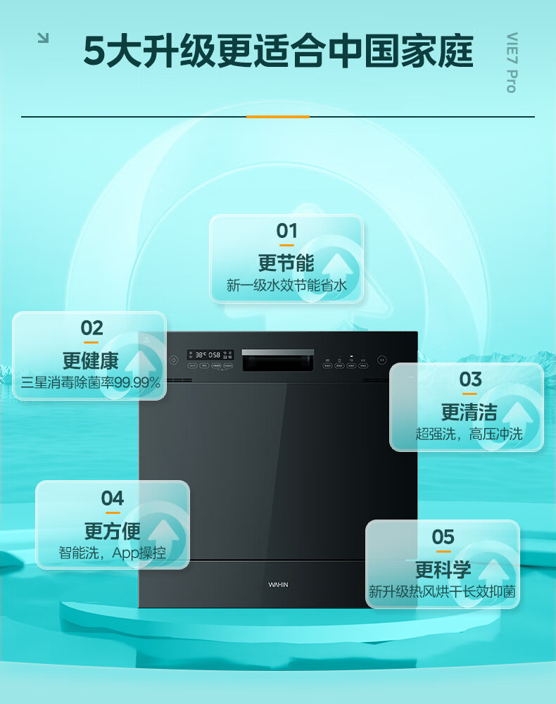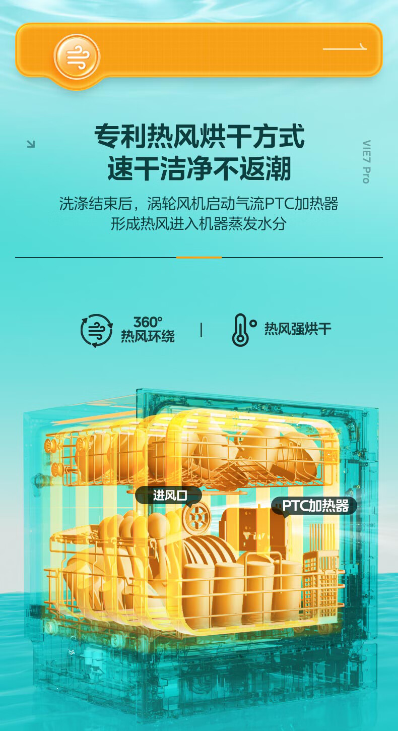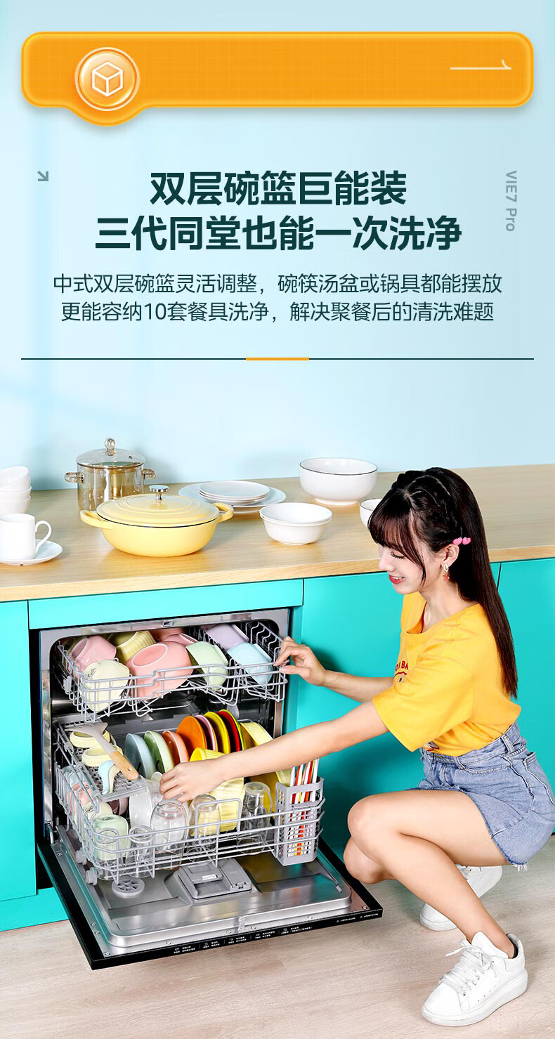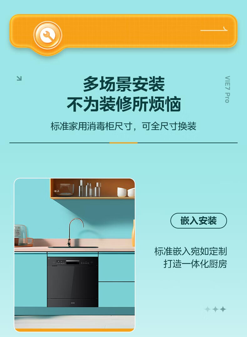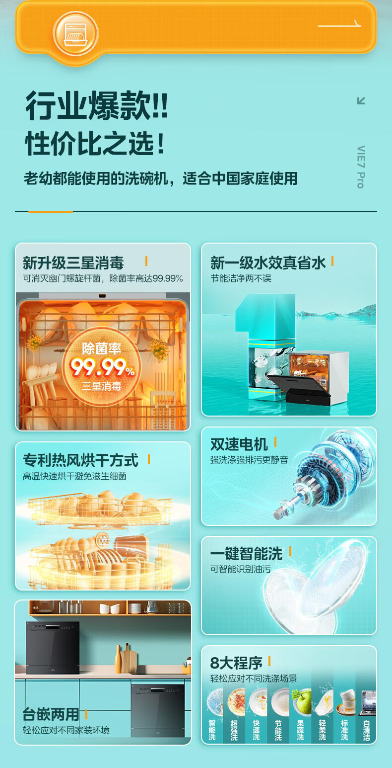 华凌【Vie7Pro】洗碗机嵌入式台式两用灶下安装 10套家用超一级水效 热风烘干消毒 洗消烘存一体机 【台嵌灶三用】vie7pro洗碗机