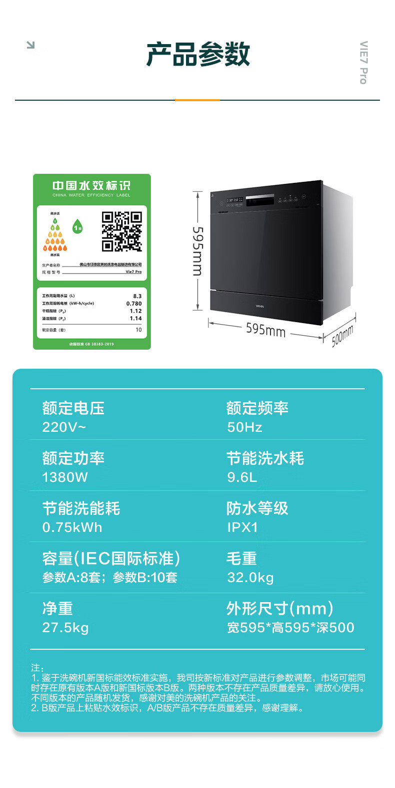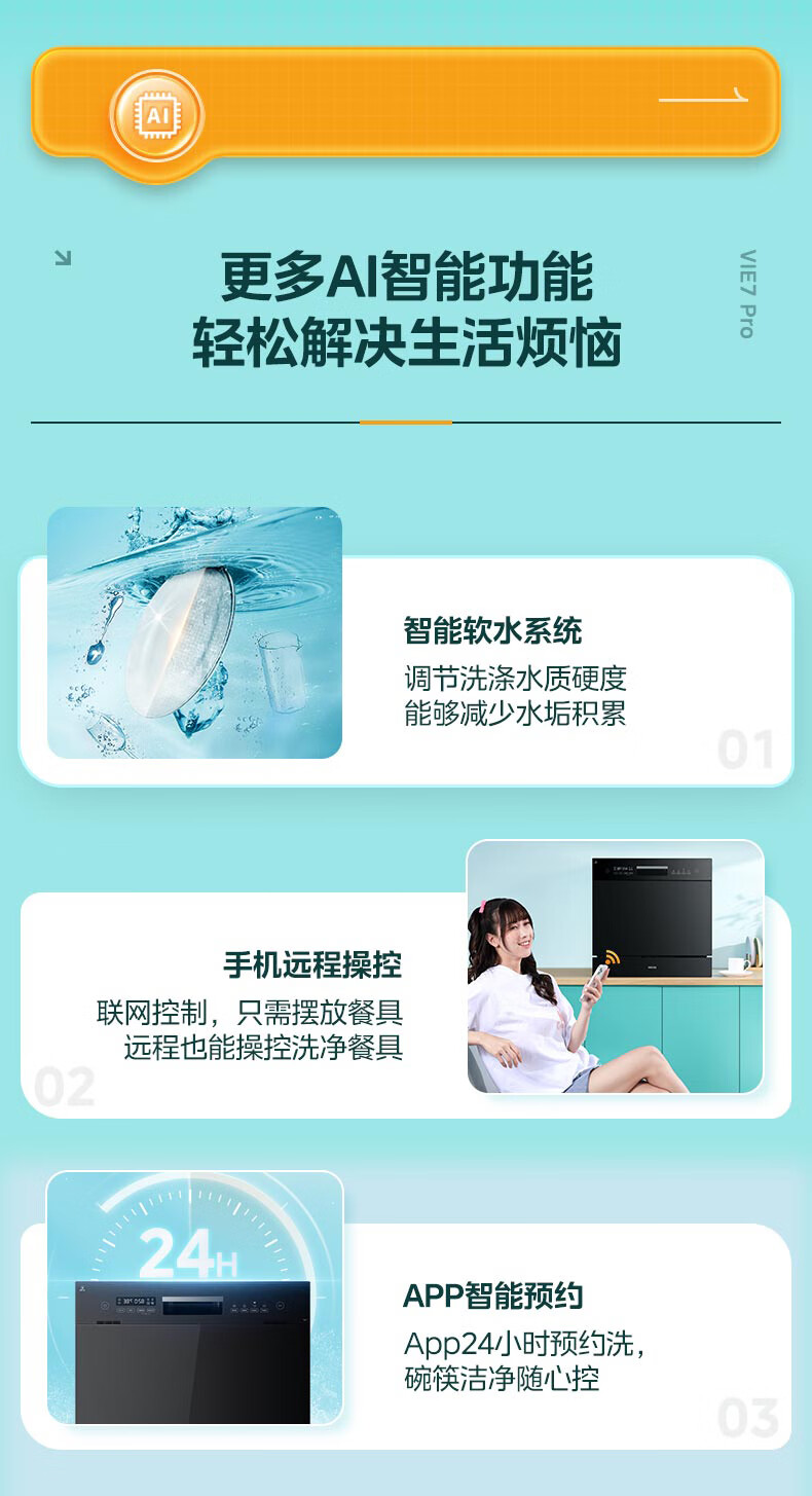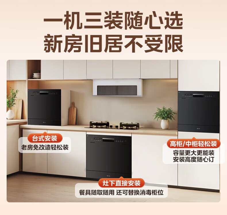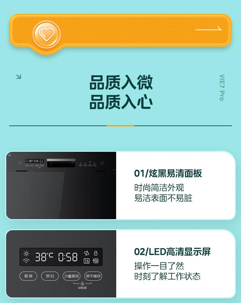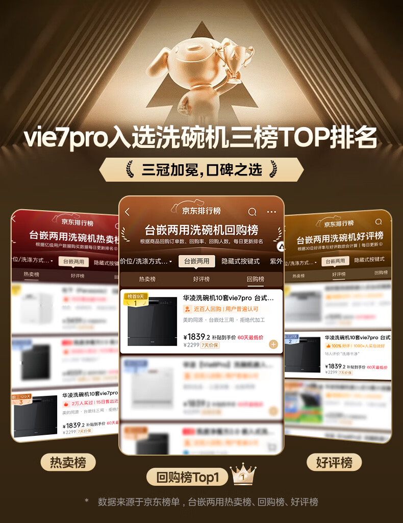 华凌【Vie7Pro】洗碗机嵌入式台式两用灶下安装 10套家用超一级水效 热风烘干消毒 洗消烘存一体机 【台嵌灶三用】vie7pro洗碗机