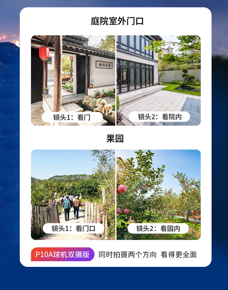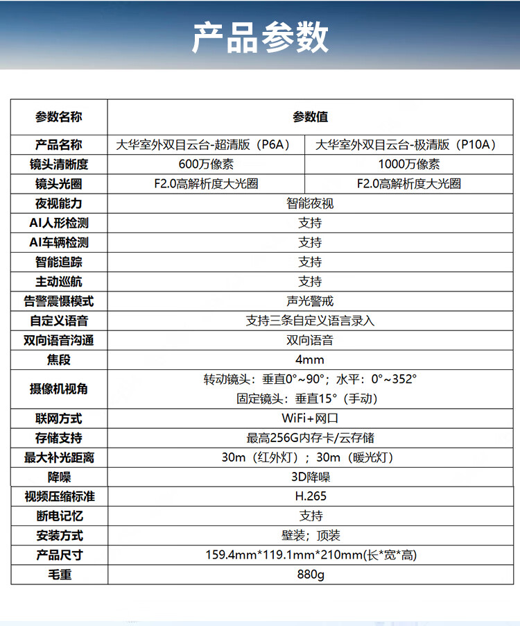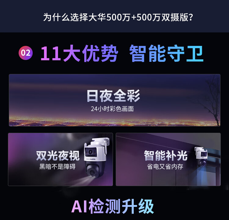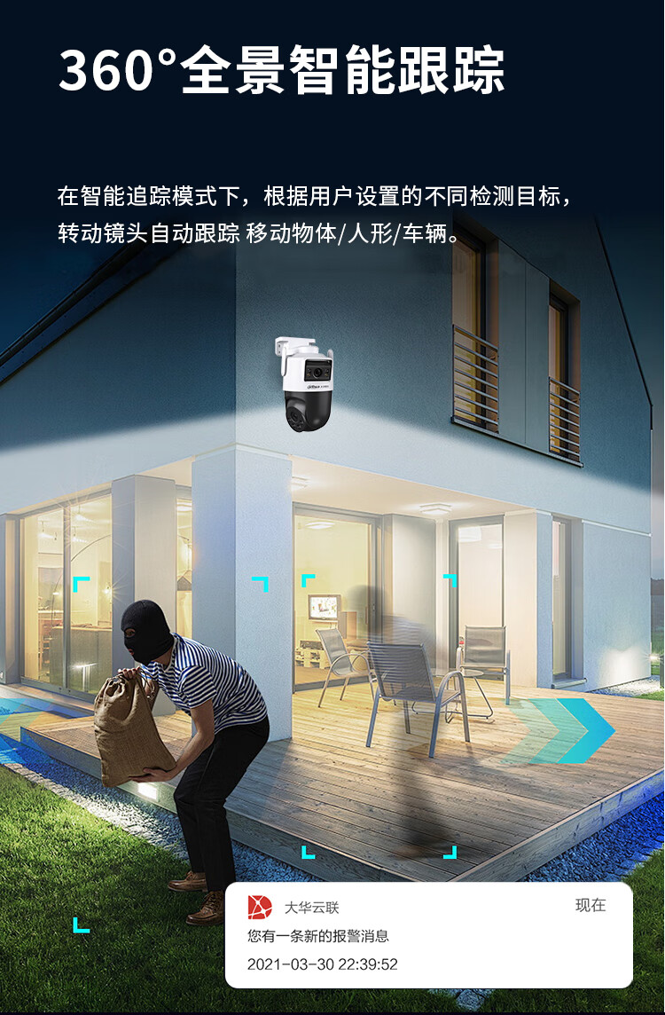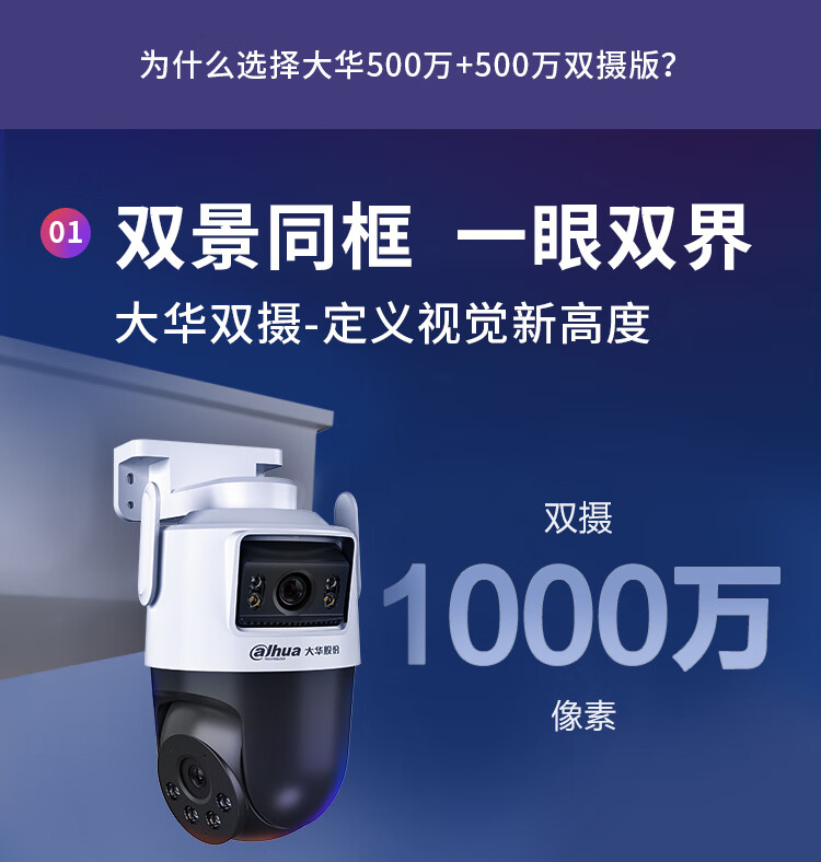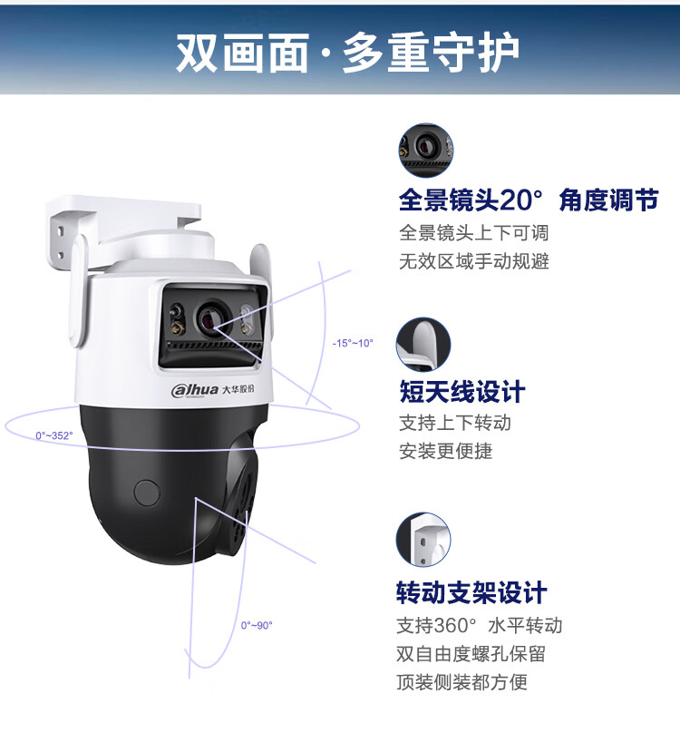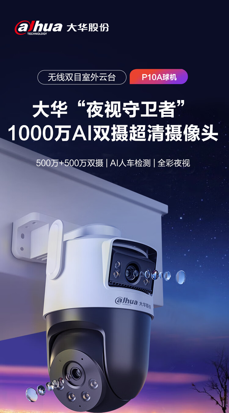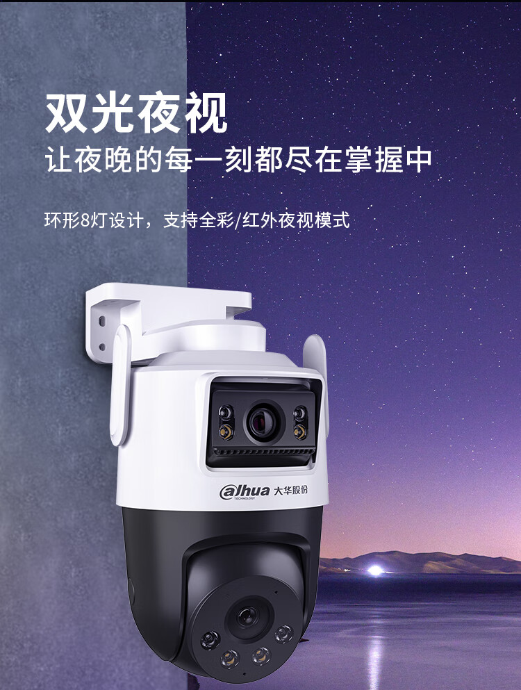 dahua大华双目监控摄像头 室外云台监控器1000万像素高清全彩夜视可对话 360度无死角 智能跟踪巡航警戒