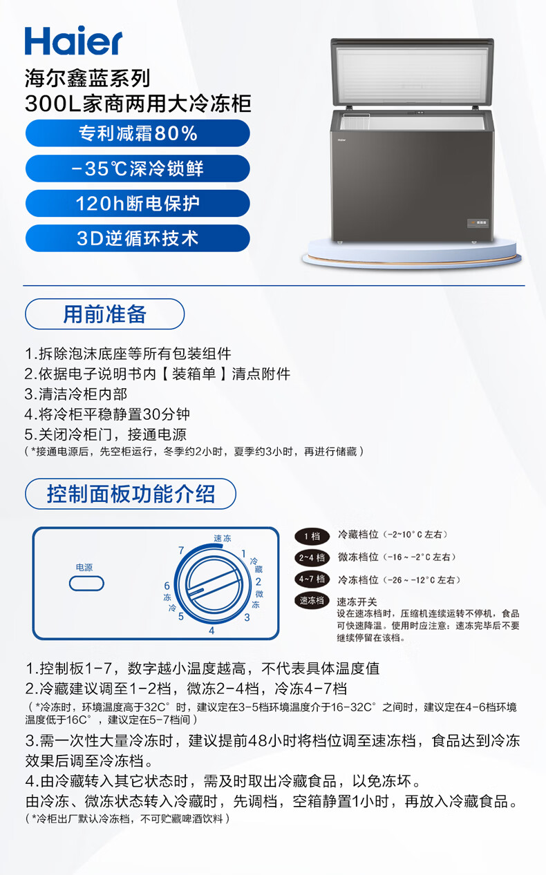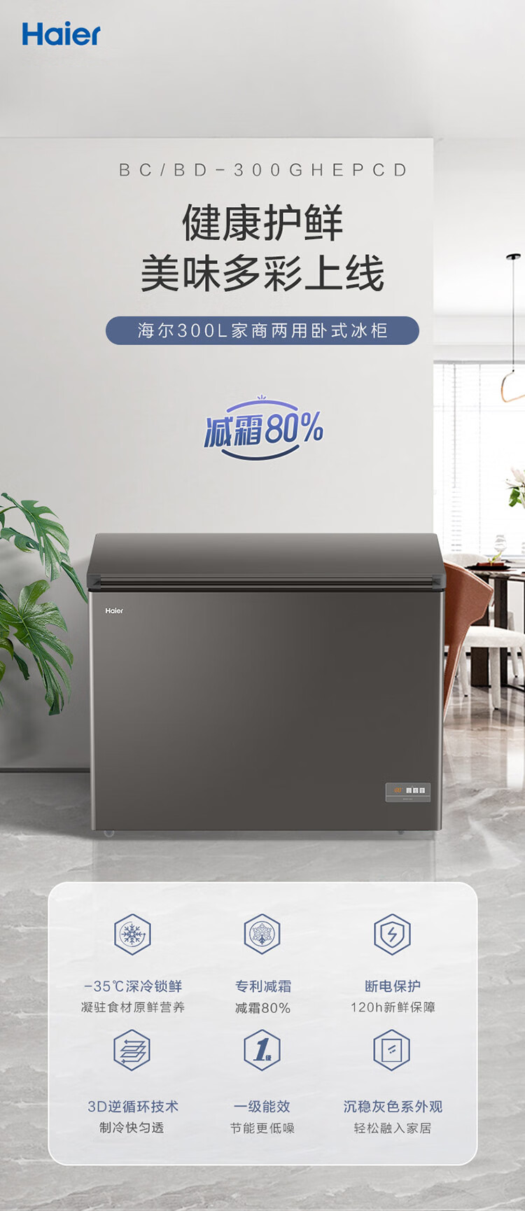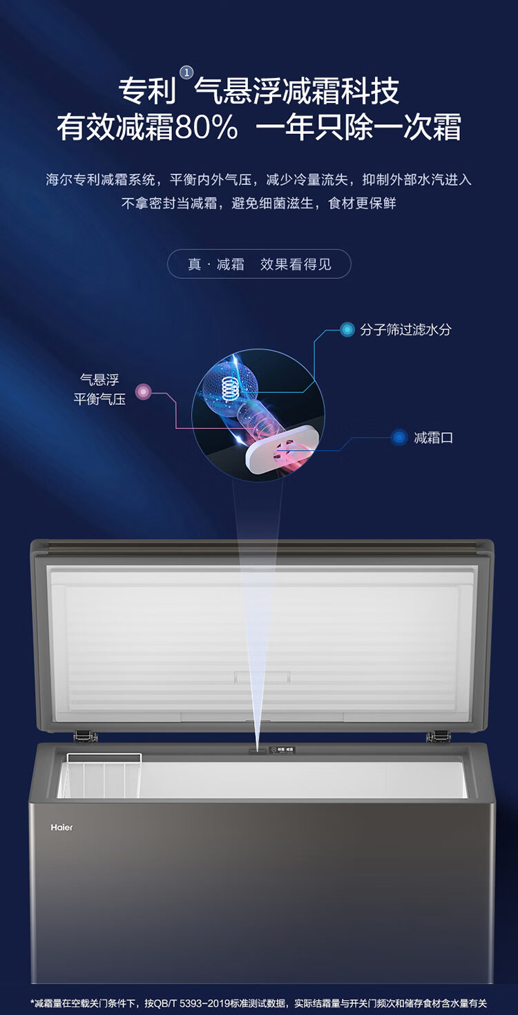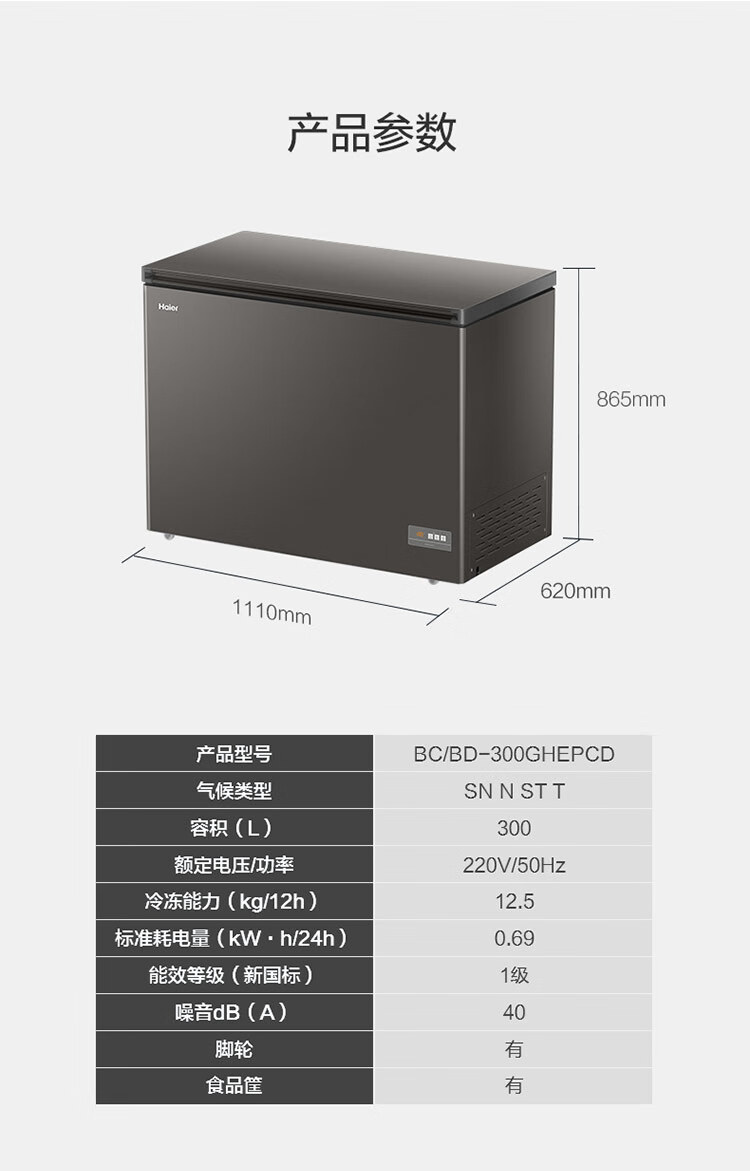 海尔(Haier)300L单温低霜大容量小冰柜家用商用冷藏冷冻柜冰柜京东自营小型冰箱冷柜BC/BD-300GHEPCD