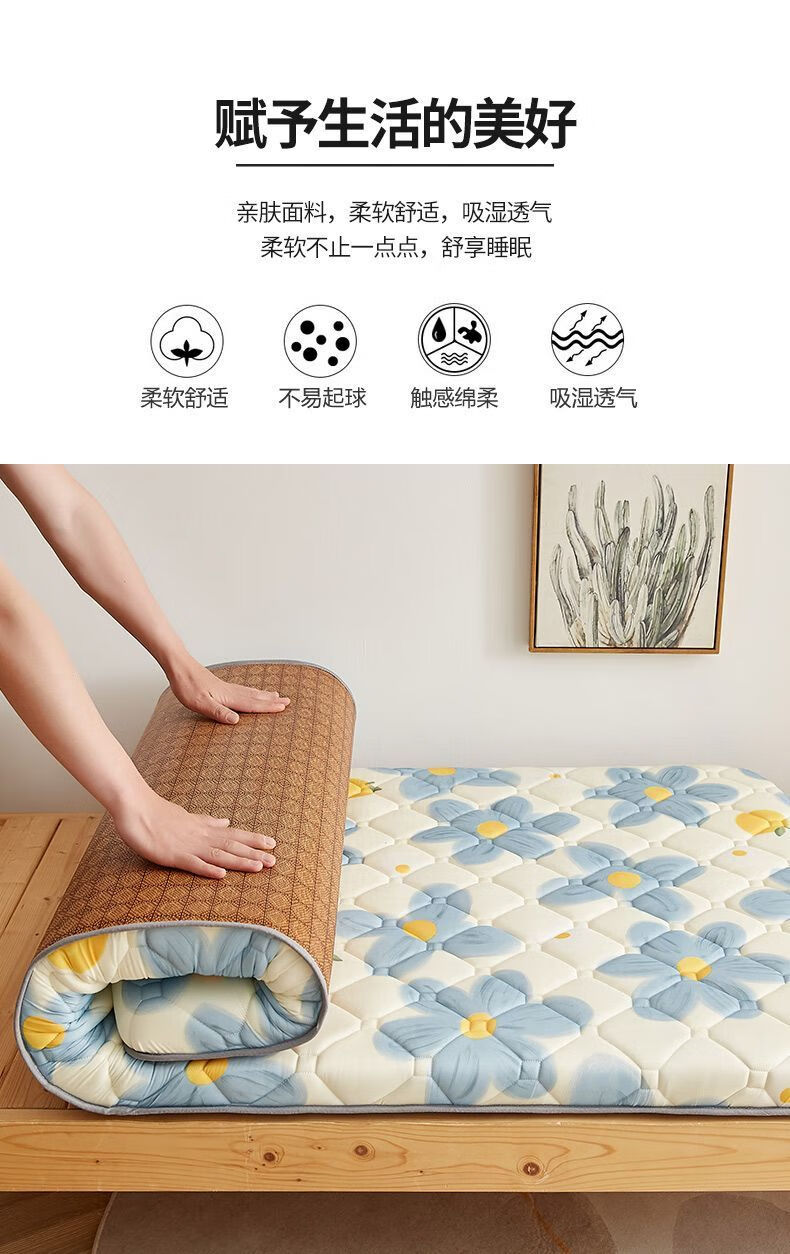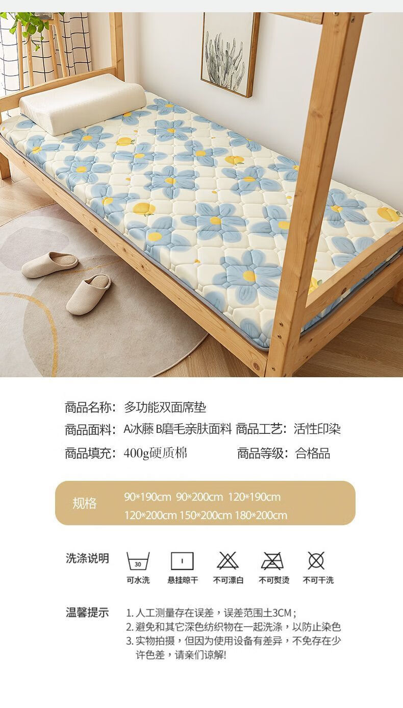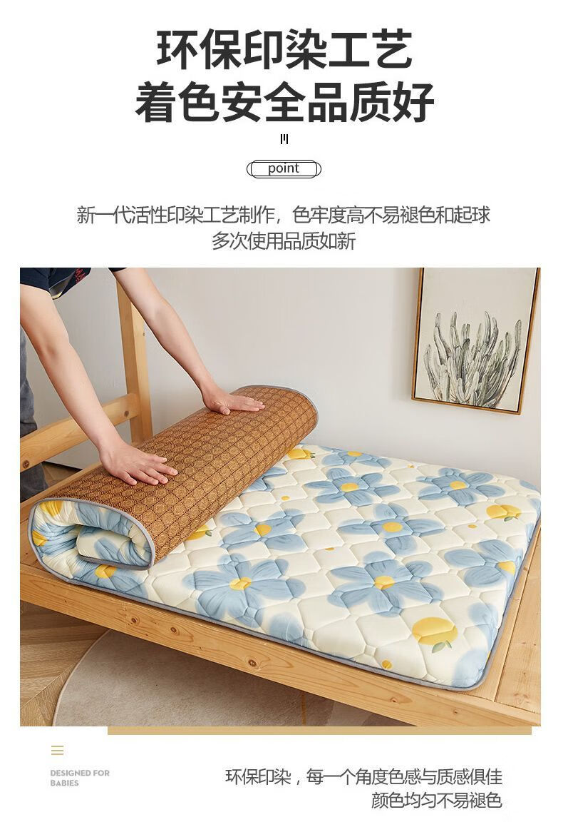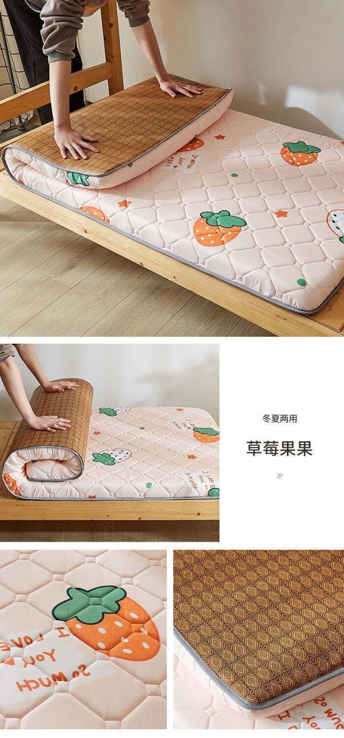接运猫学生宿舍专用凉席双面床垫藤席上下铺单人席子冬夏两用可折叠夏季 草莓果凉席床垫双面可用 90CMX190CMB面床垫